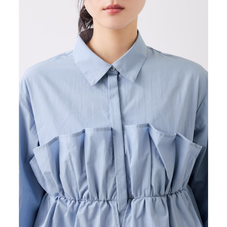 ベーシックなシャツシルエットに立体的なビスチェをレイヤードしているようなデザインです。