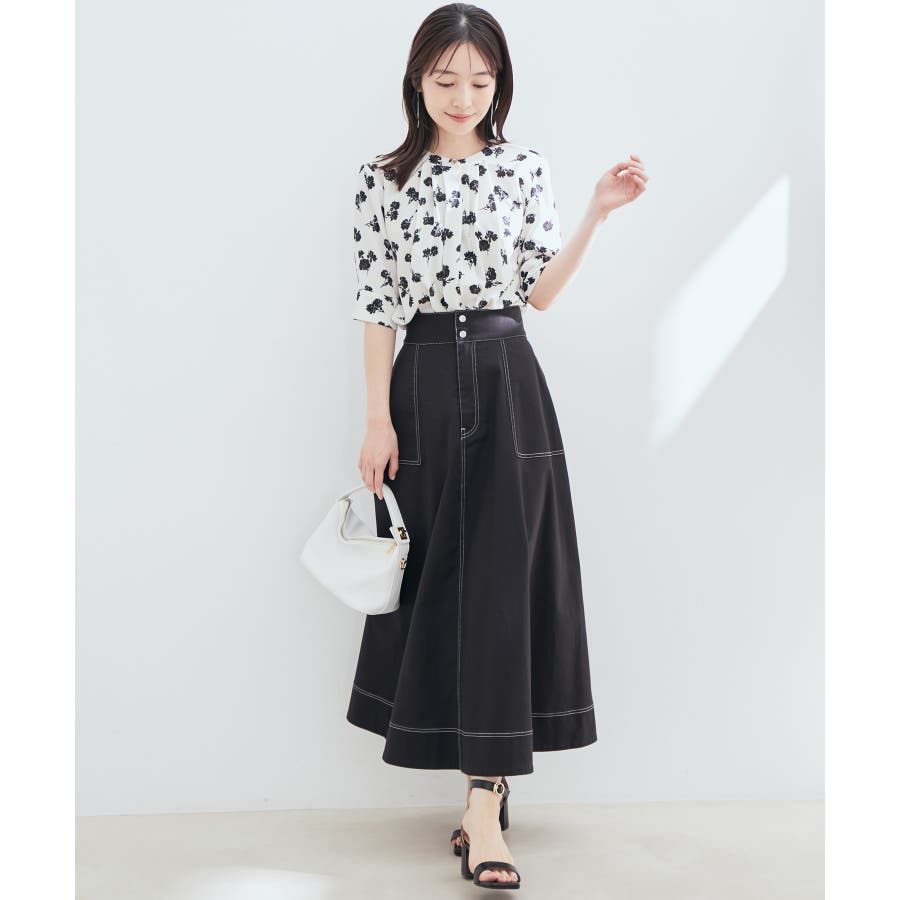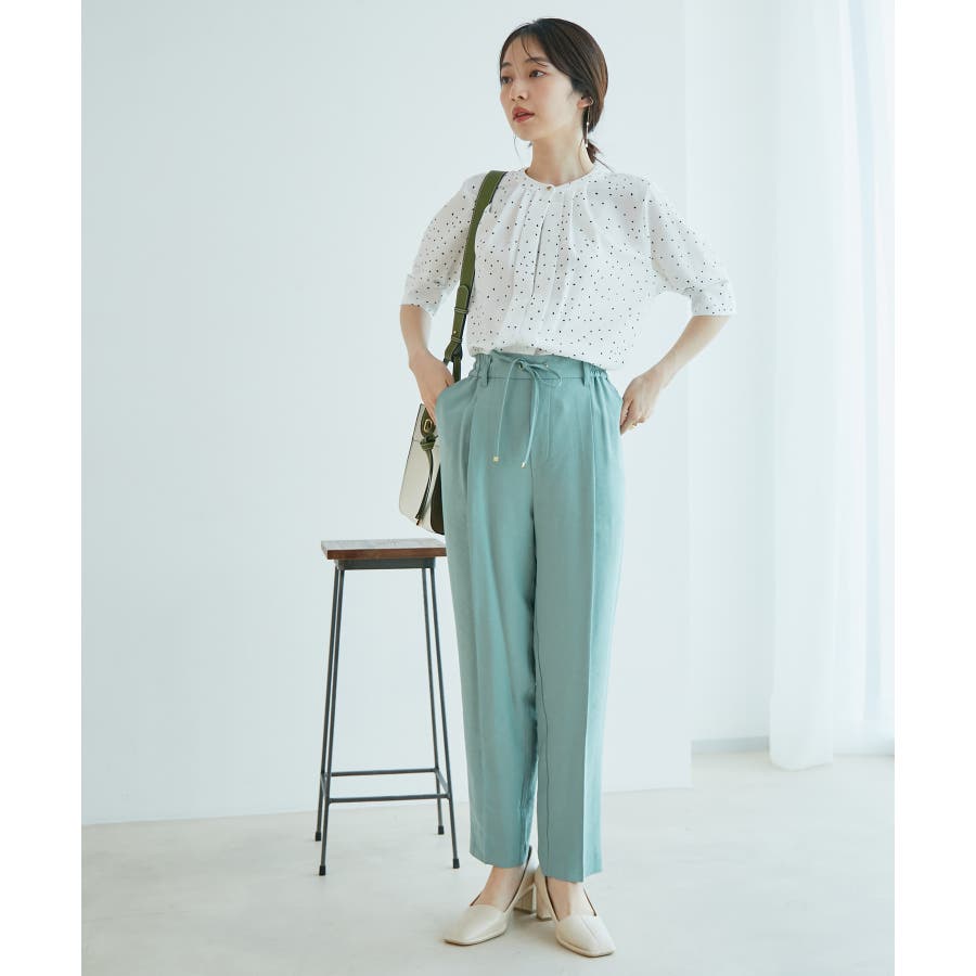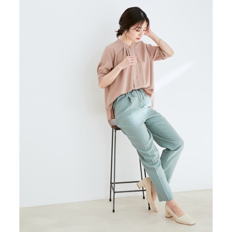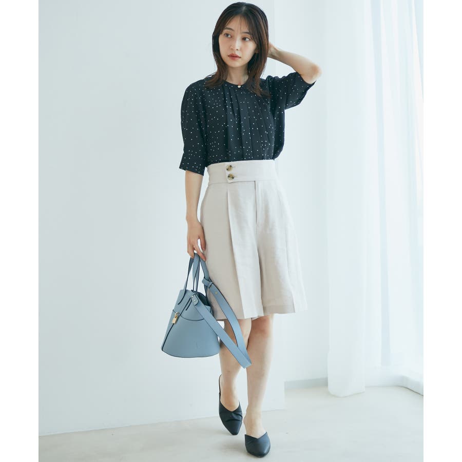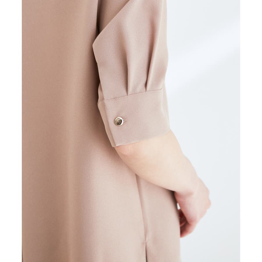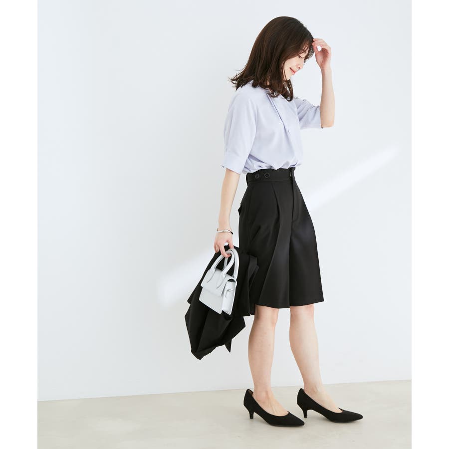 【デザイン・シルエット】 フロントタックで立体感を出したシンプルデザインのブラウス。 安心感のある5分袖は、同時に上品さも持ち合わせていてどんなシーンにも活躍するアイテム。 ゆったりとした身頃でボディラインを拾いにくく、幅広い体型の方に着用いただけるアイテムです。 フロントのメタルボタンを外して、すっきりとしたスキッパータイプにもなる2WAY仕様。 胸元にはあて布があるので、インナーを気にせず着用できます。 ■同シリーズの長袖バージョンもございます! 品番:BVH23010・BVH42010 ■5分袖の他カラーもチェック! 品番:BVH23020 【素材】 再生ポリエステルを使用たサステナブルな素材です。 軽く、濃いカラーは透け感もないので一枚でも着られて快適な着心地です。 またイージーケア機能付きでお手入れが簡単なのも嬉しいポイントです。 【カラー】 オフィススタイルも決まるベーシックで色鮮やかなカラー展開。 花柄、ラベンダーは今シーズンの新色です! ※col,40(ネイビー)はジャドール限定カラー、col,33(ミントグリーン)はWEB限定カラーとなります。 ※在庫なしのカラーは完売しており再入荷の予定はありません。 【おすすめのスタイリング】 一枚でも華やかで着映えしますが、ジャケットやカーディガンのインナーとしてもロングシーズン着まわせるのでおすすめです◎ ---------- 透け:白地のみややあり 裏地:なし 伸縮性:なし 光沢感:なし 生地の厚さ:やや薄い ポケット:なし ---------- 【モデル着用サイズ】 メイン画像全色モデル身長:160cm、着用サイズ:M ※画像の商品はサンプルです。 実際の商品と仕様、加工、サイズが若干異なる場合がございます。