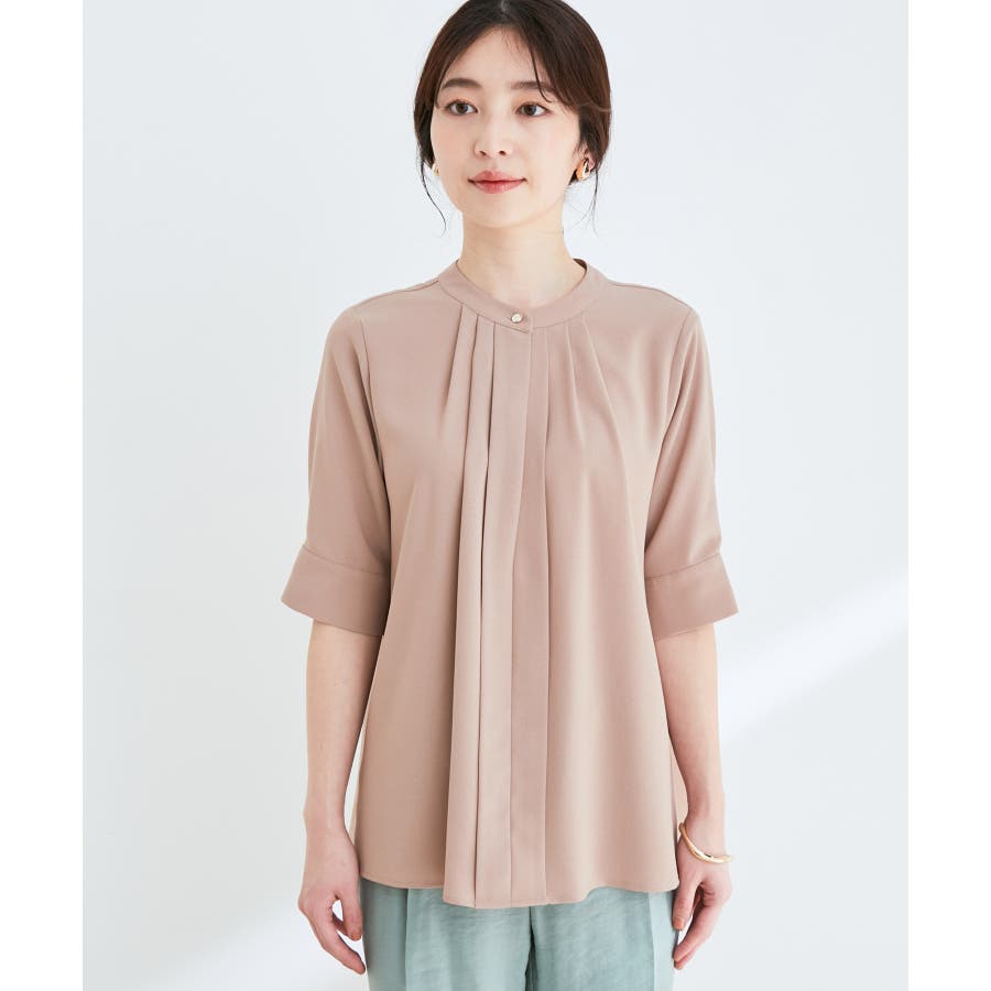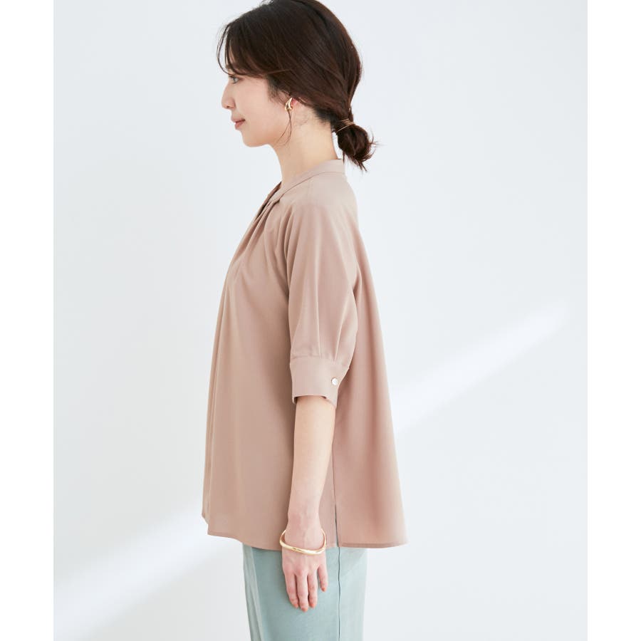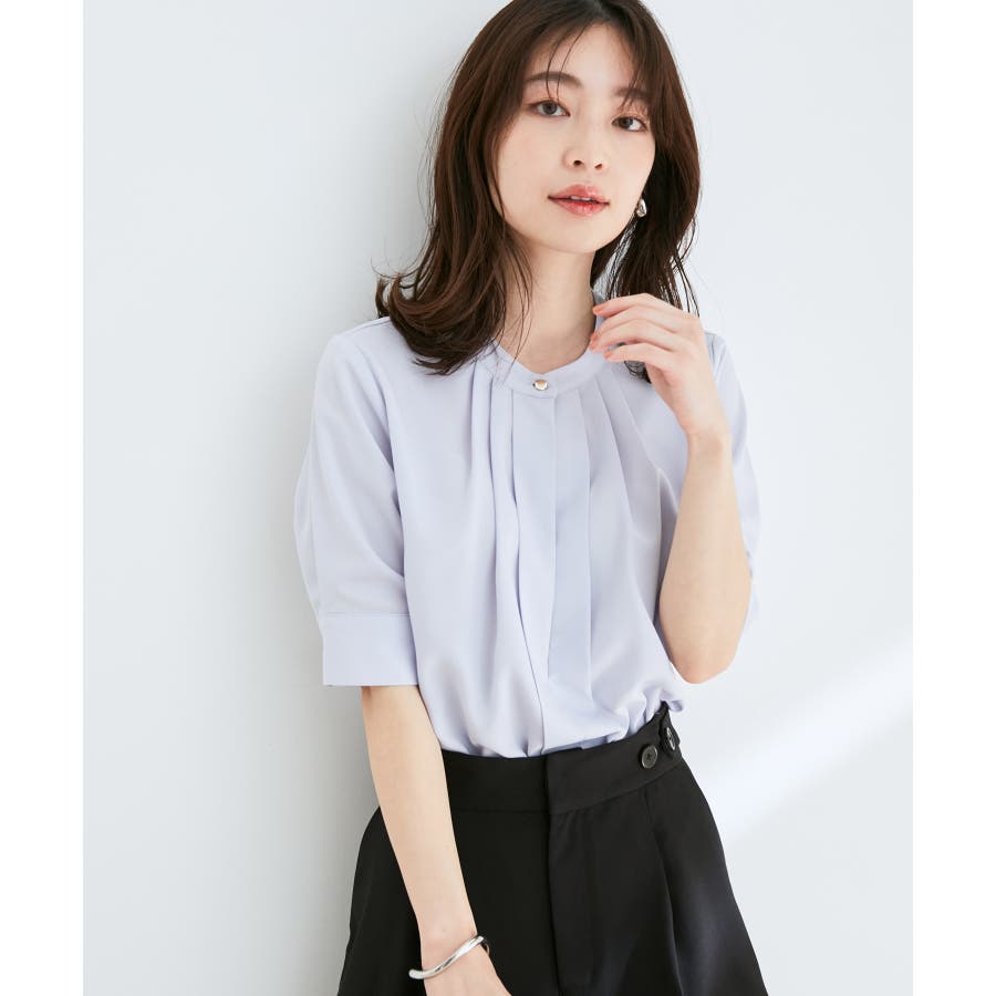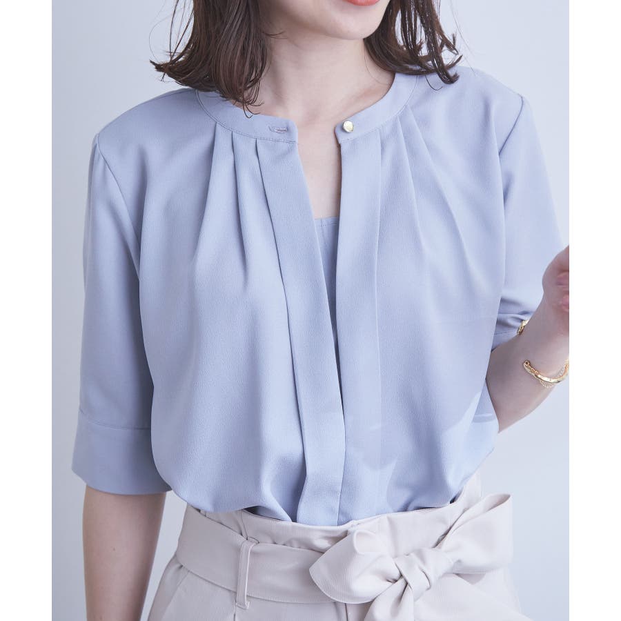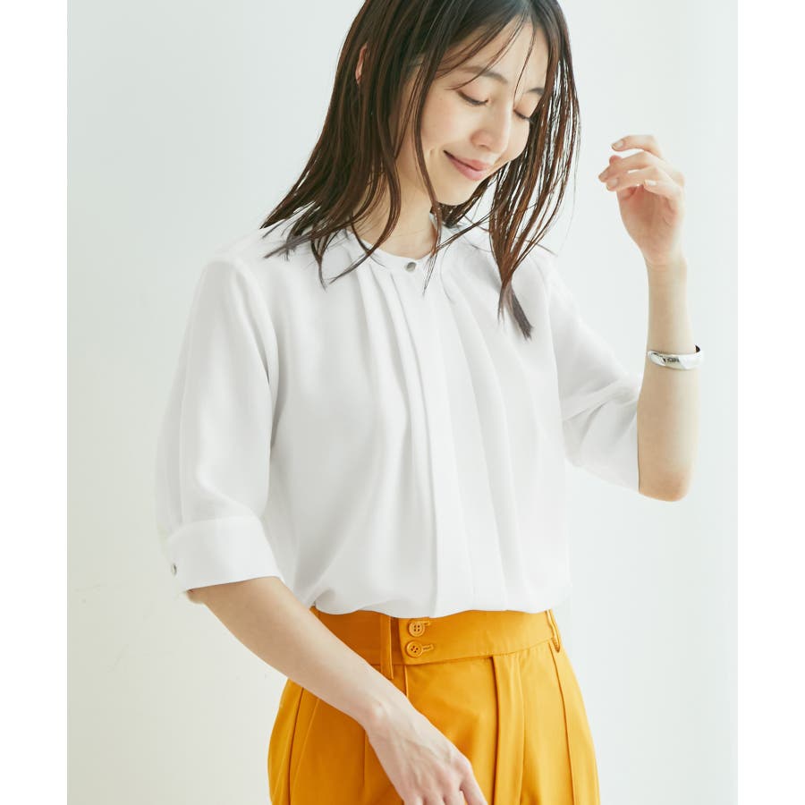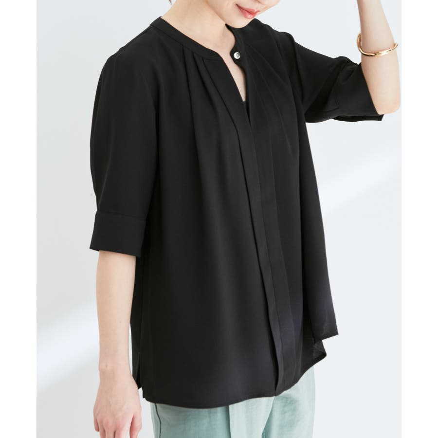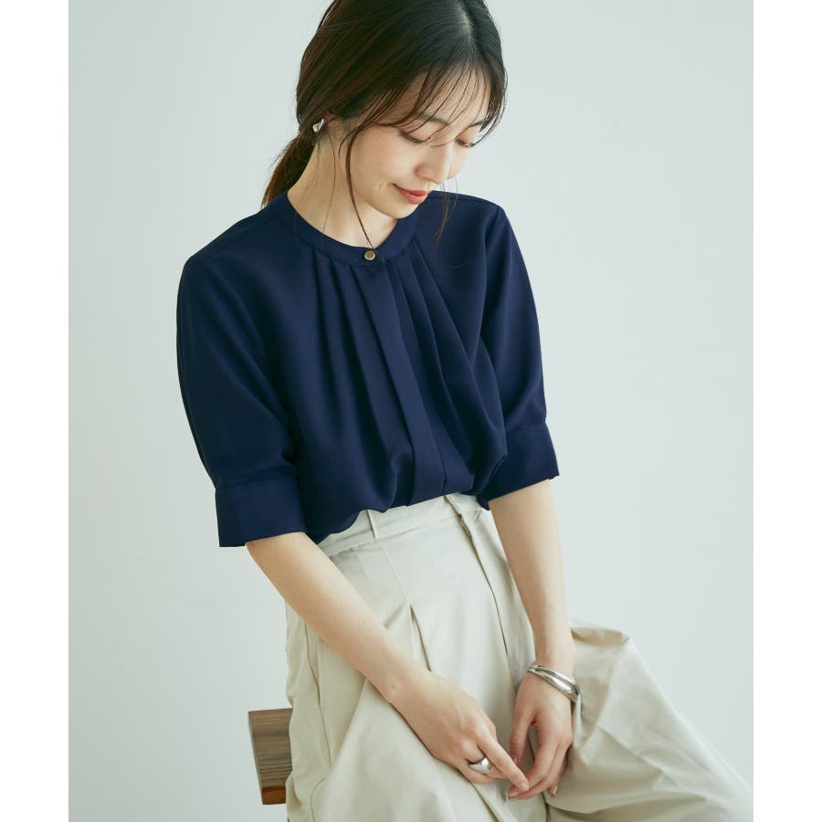 【防シワ】【2WAY】フロントタック5分袖ブラウス