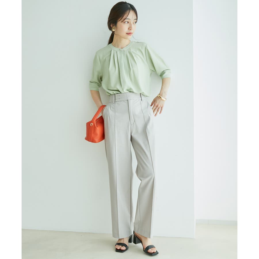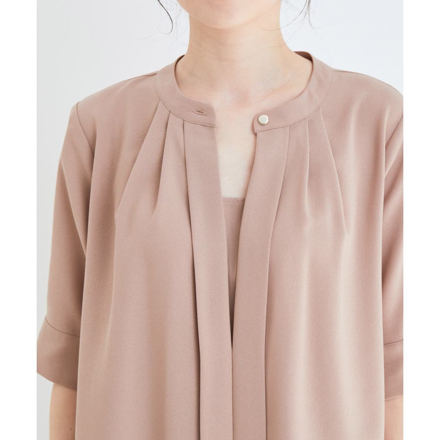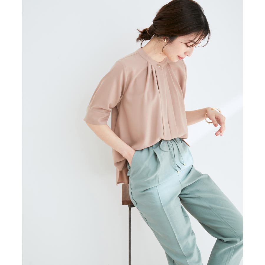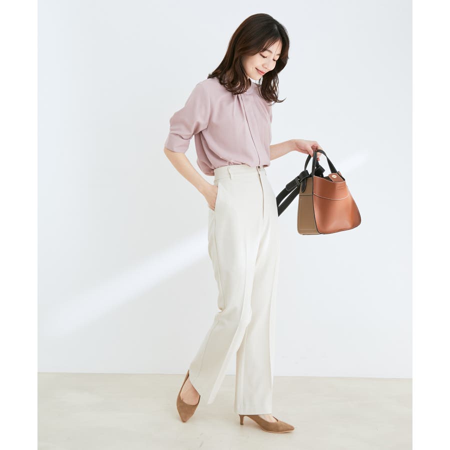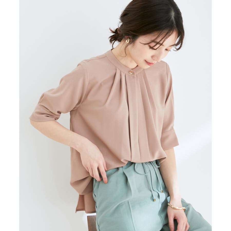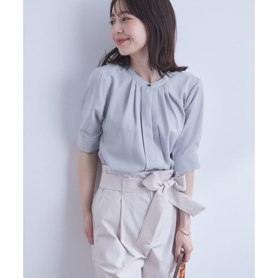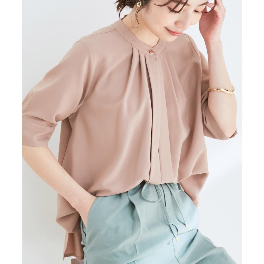 【防シワ】【2WAY】フロントタック5分袖ブラウス