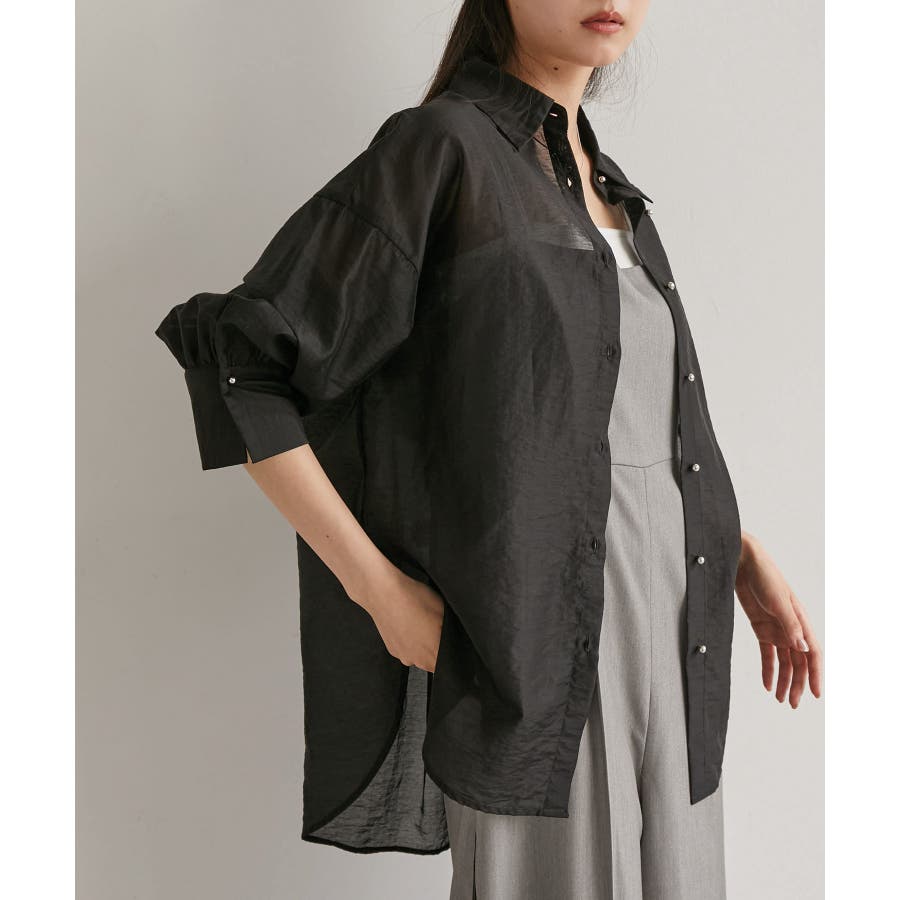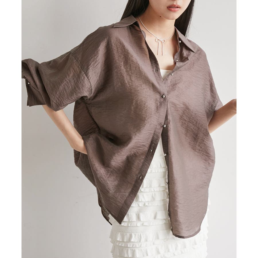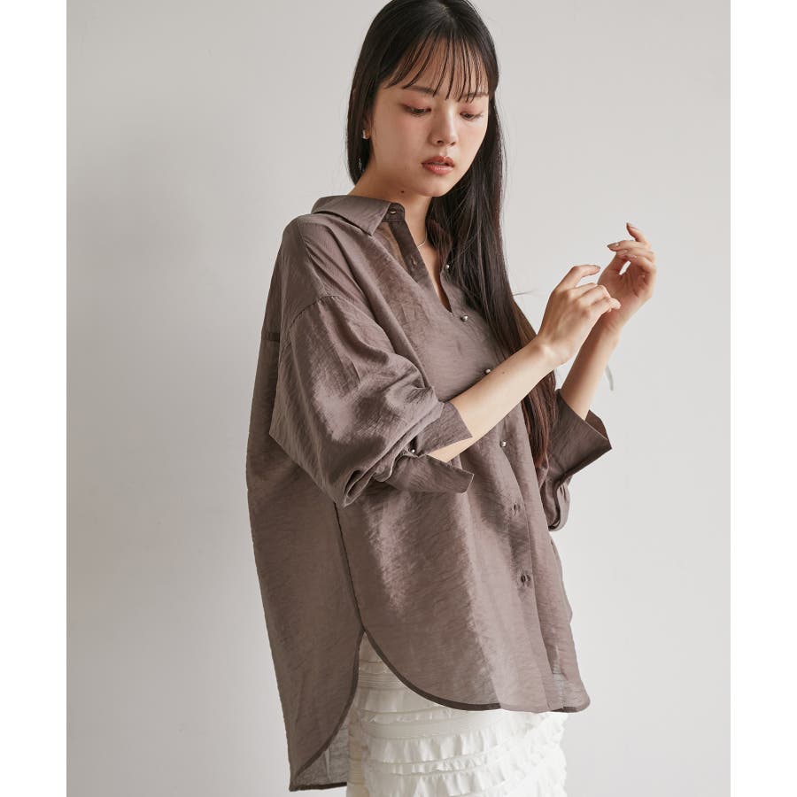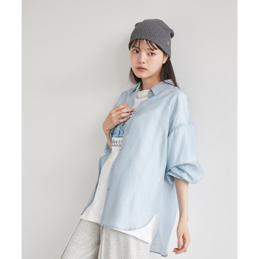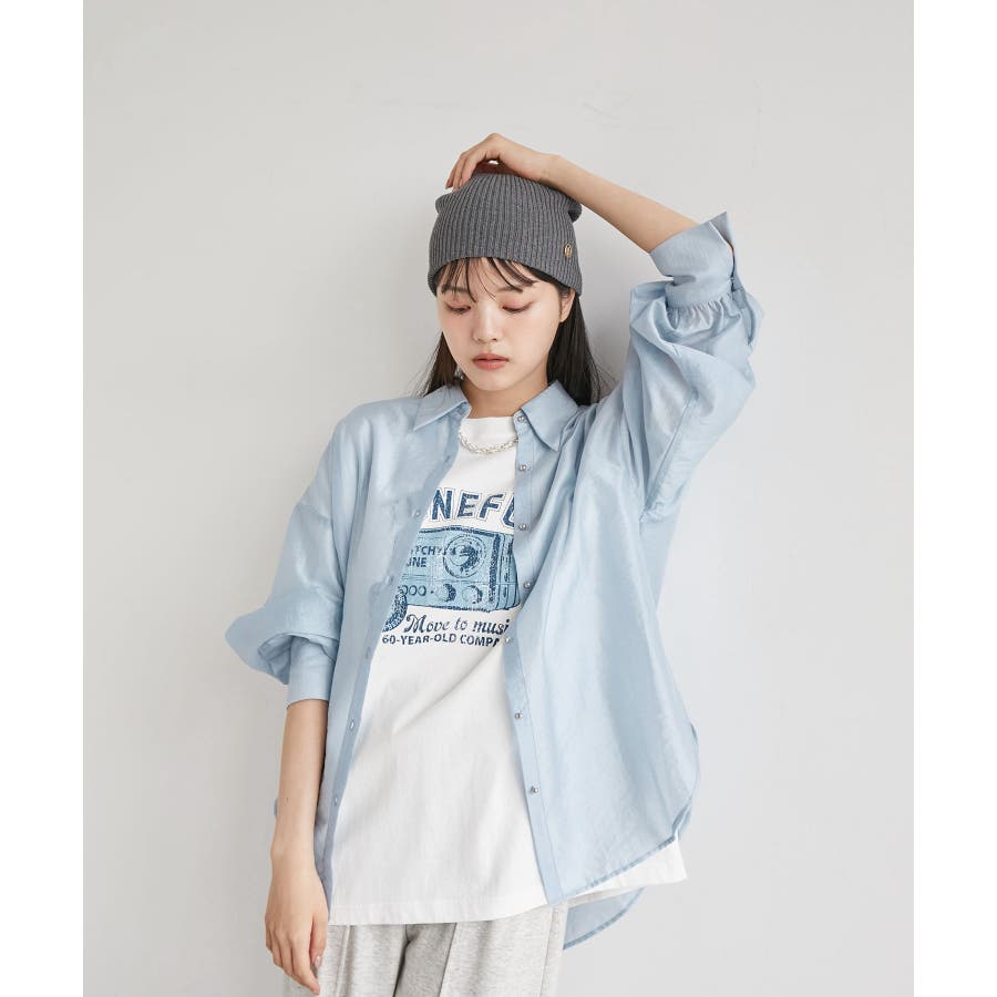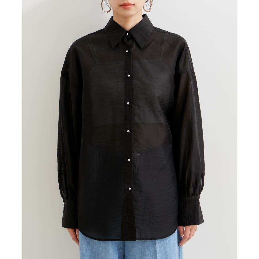 メタル釦シンプルシアーシャツ