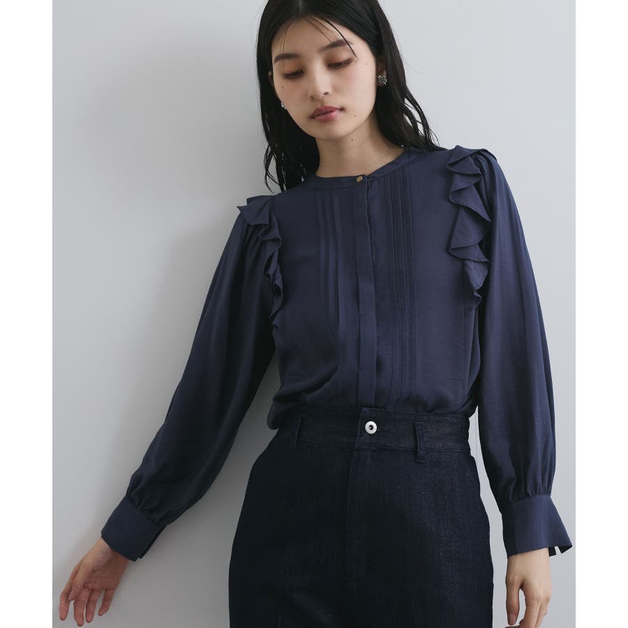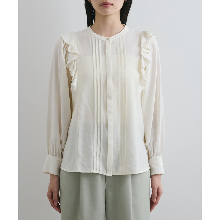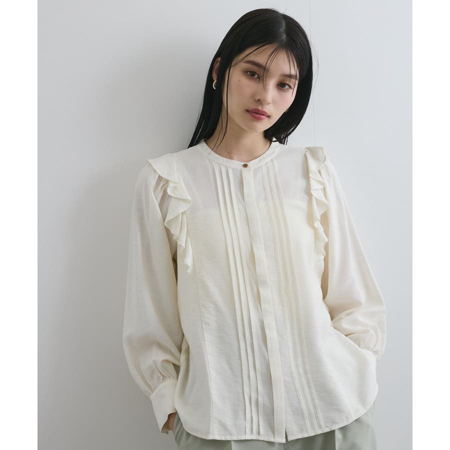 【洗える】フロントピンタックフリルブラウス