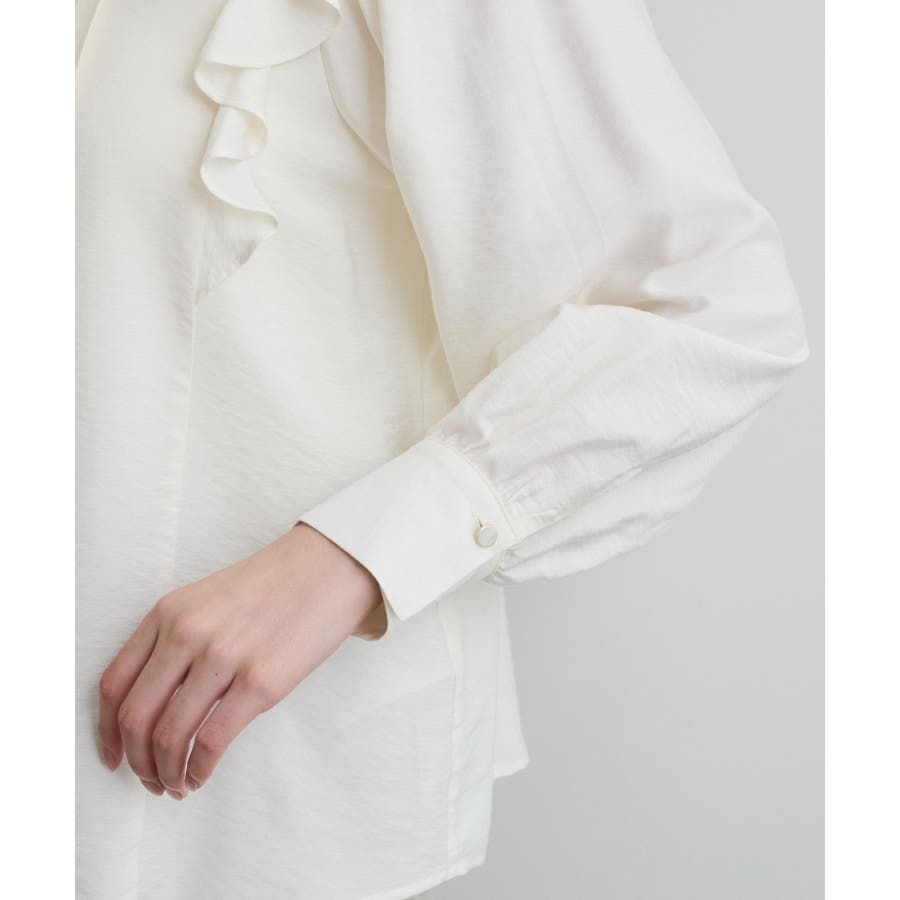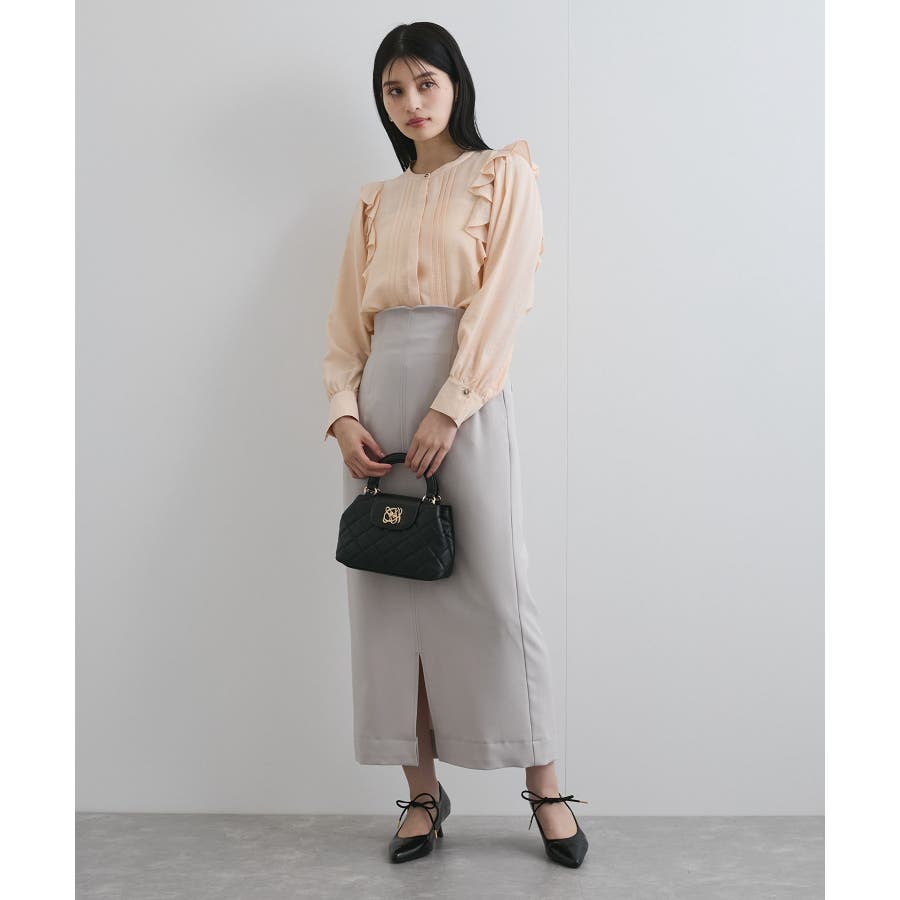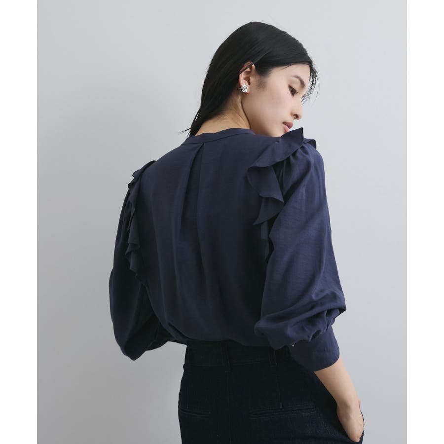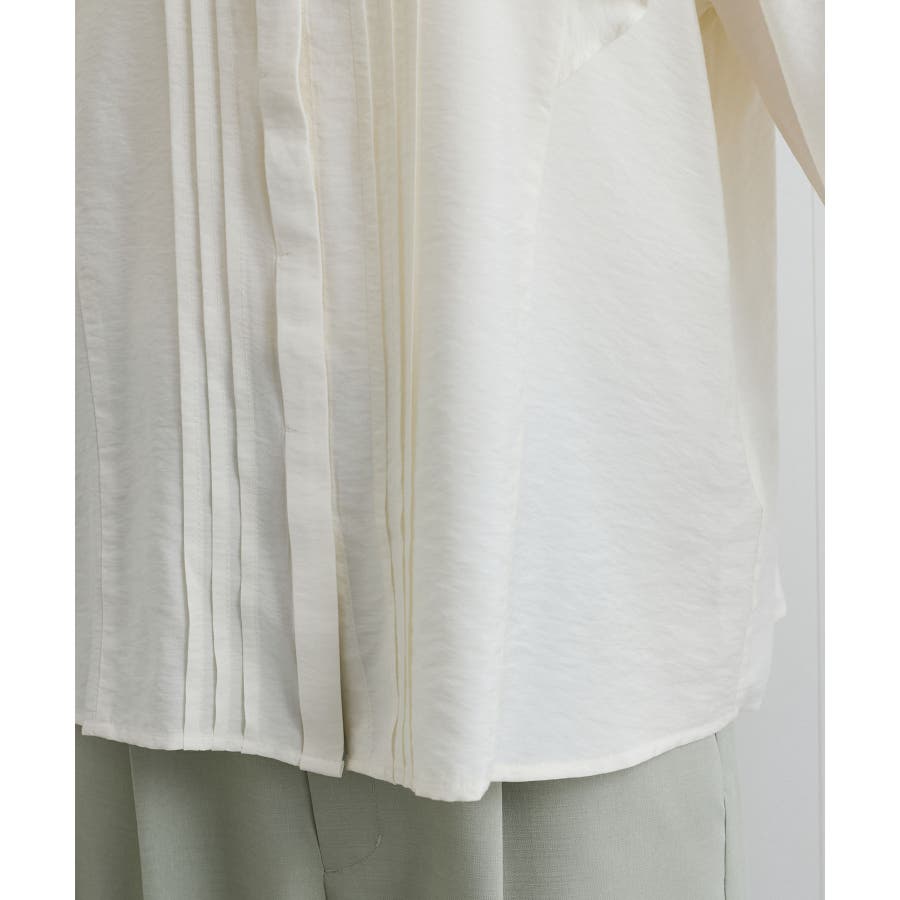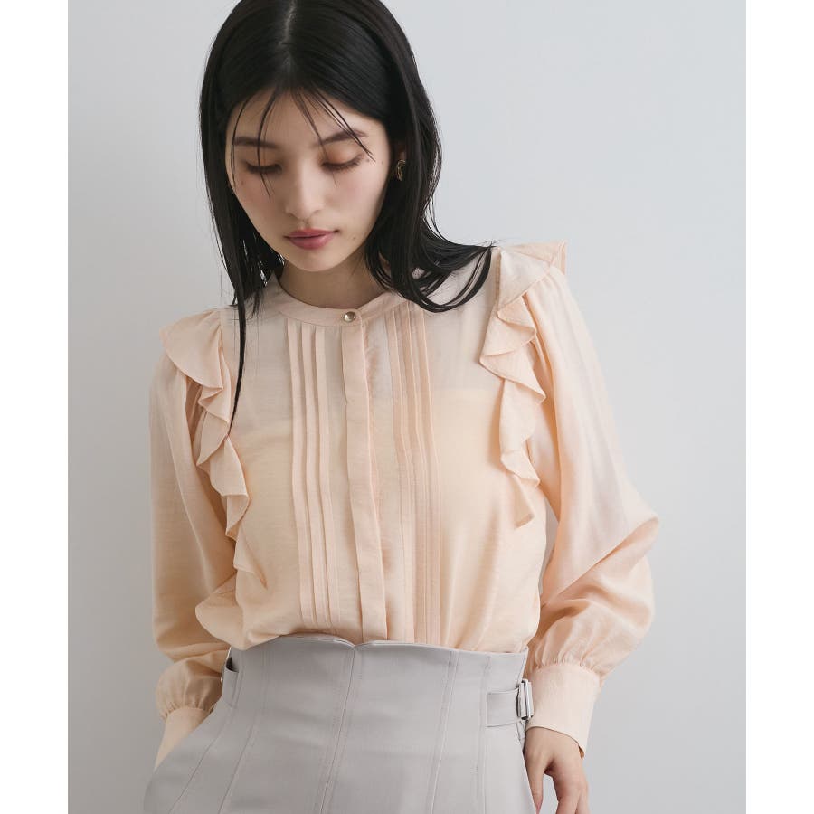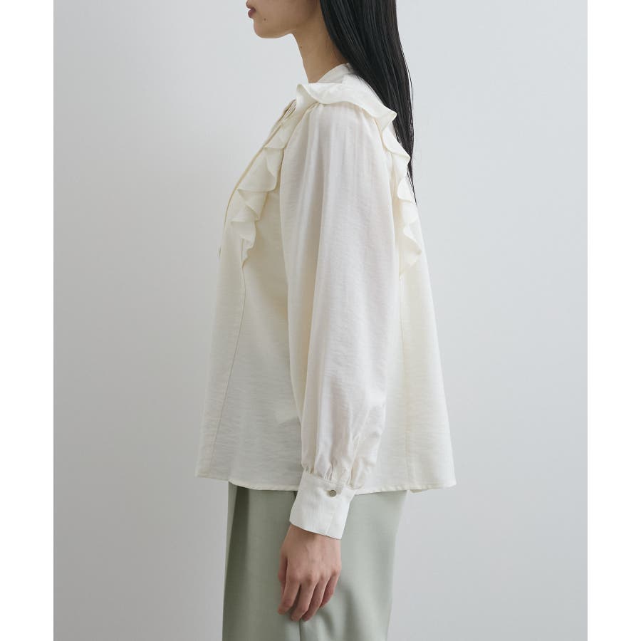 大きすぎないすっきりとしたシルエットで、フロントのピンタックとフリルがポイント。
