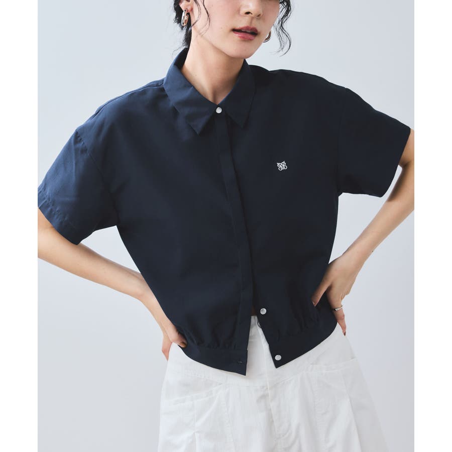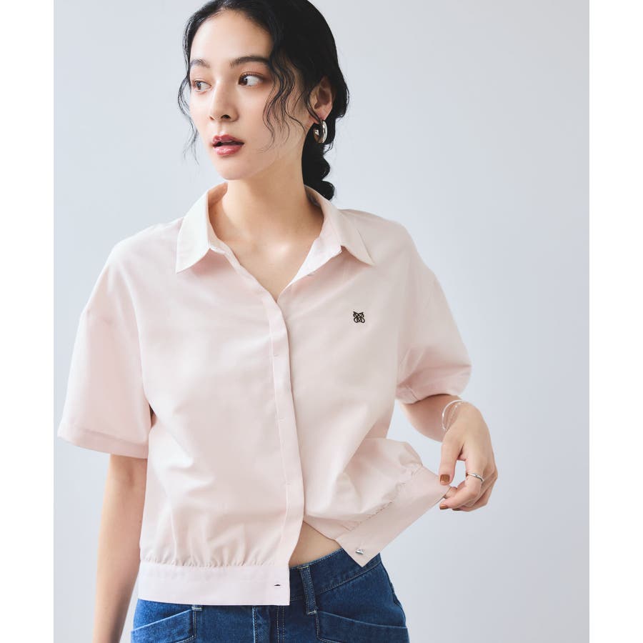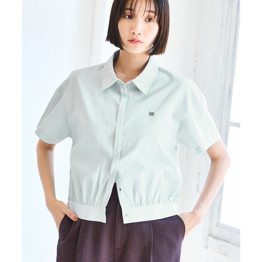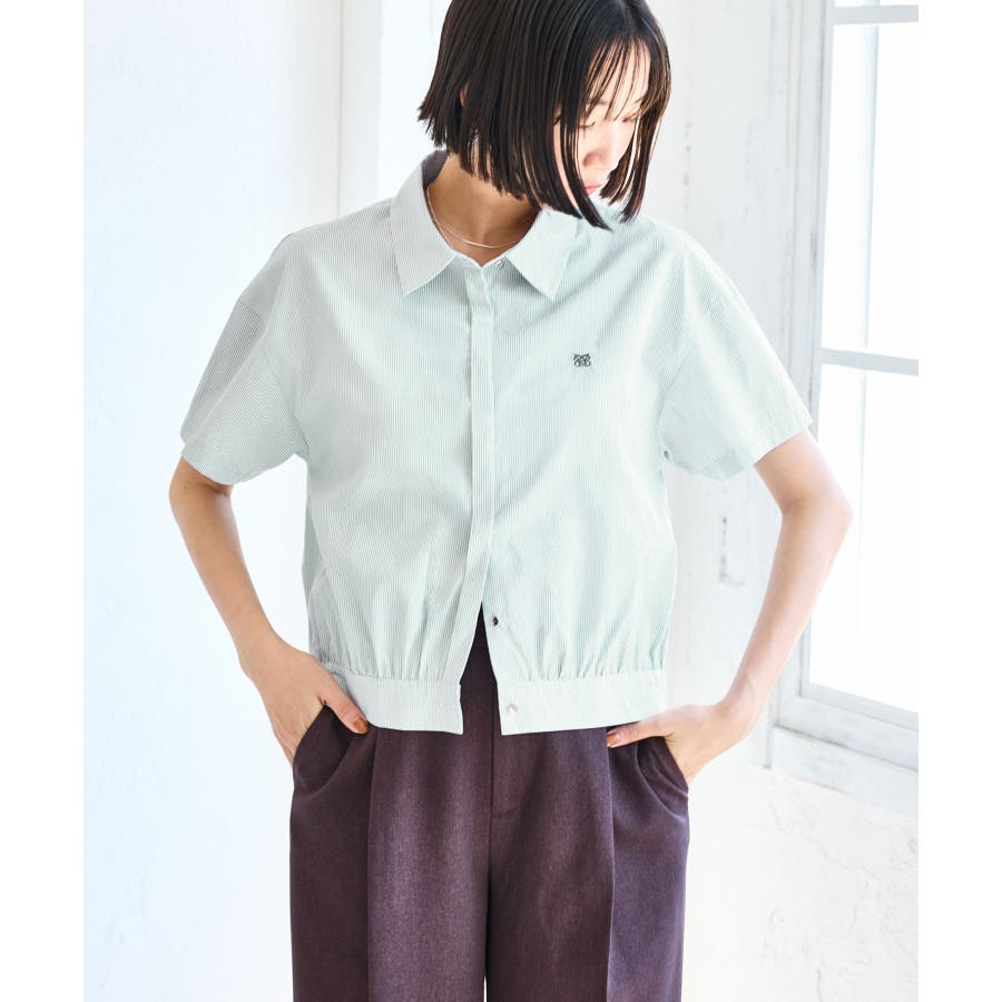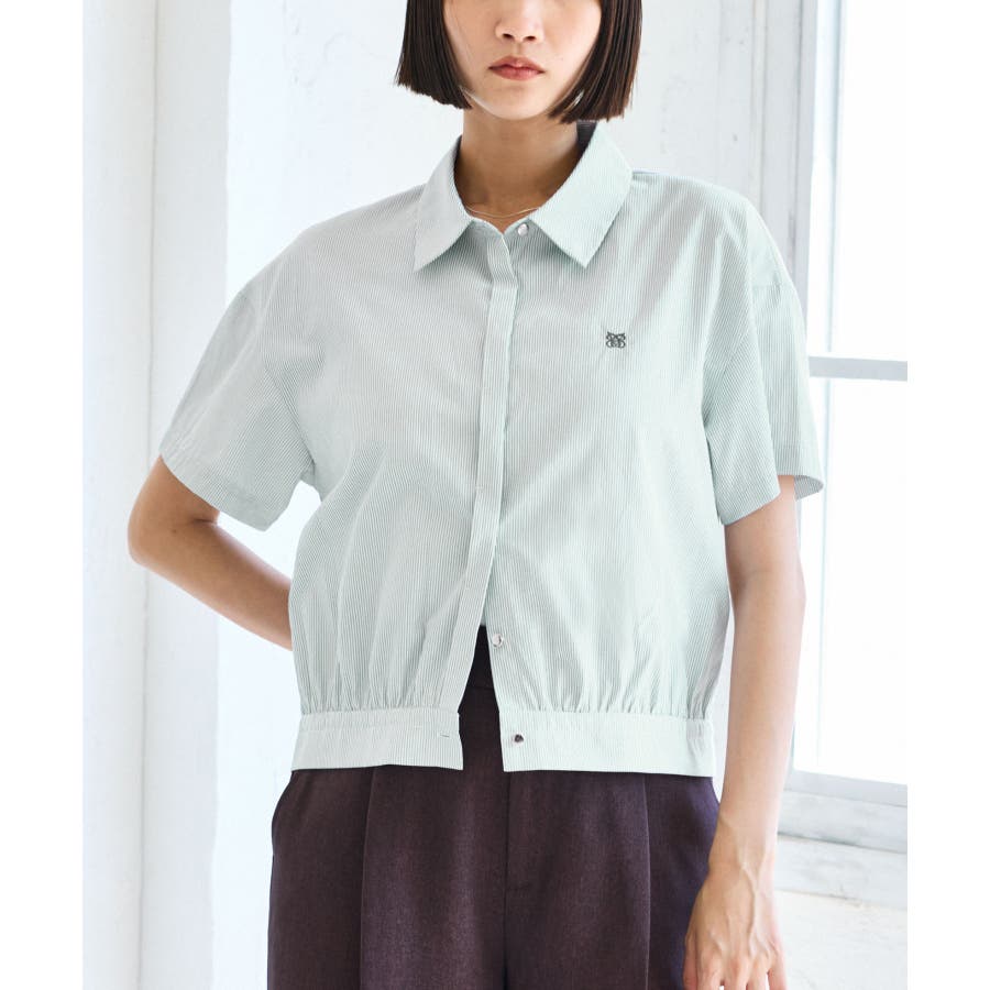 コンパクトなウエストで女性らしいシルエットを表現しています。腕回りをカバーしてくれる半袖シャツデザインは安心感も。