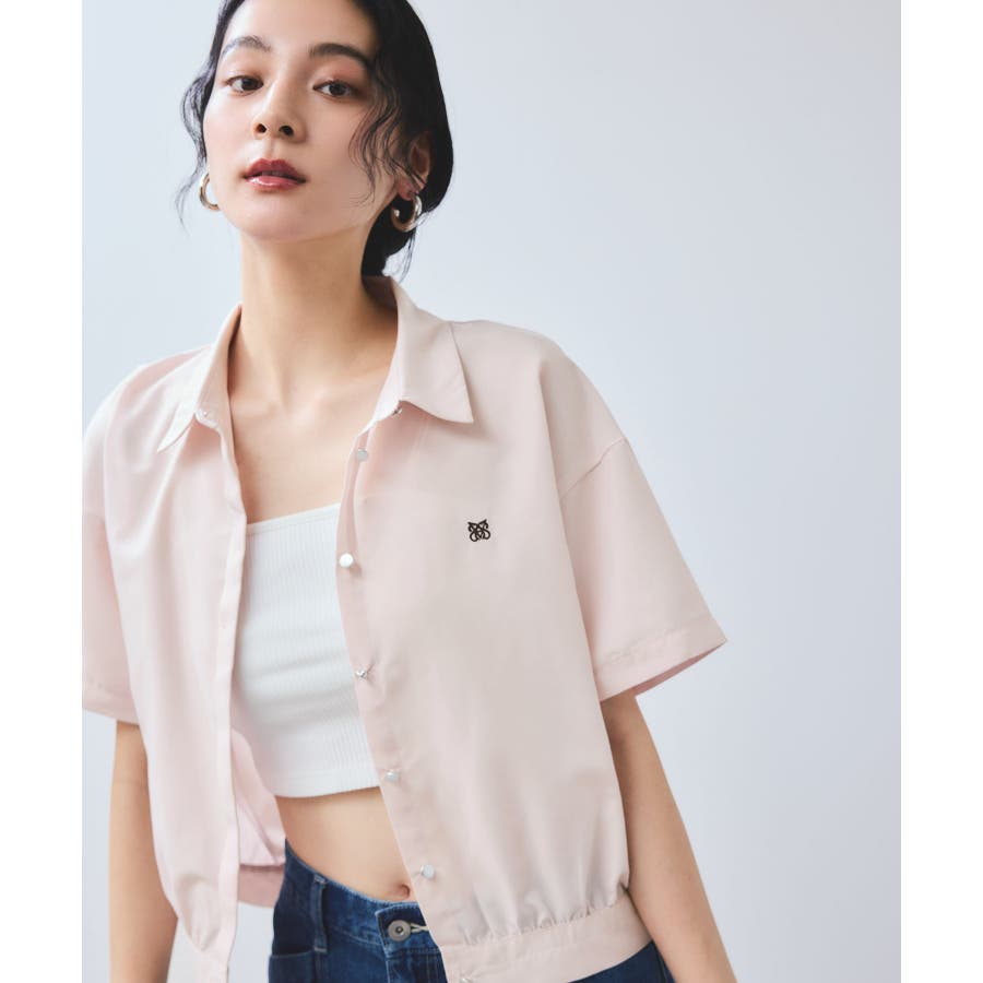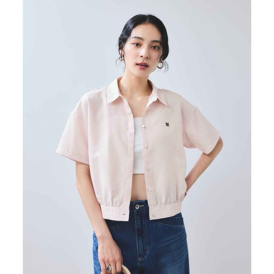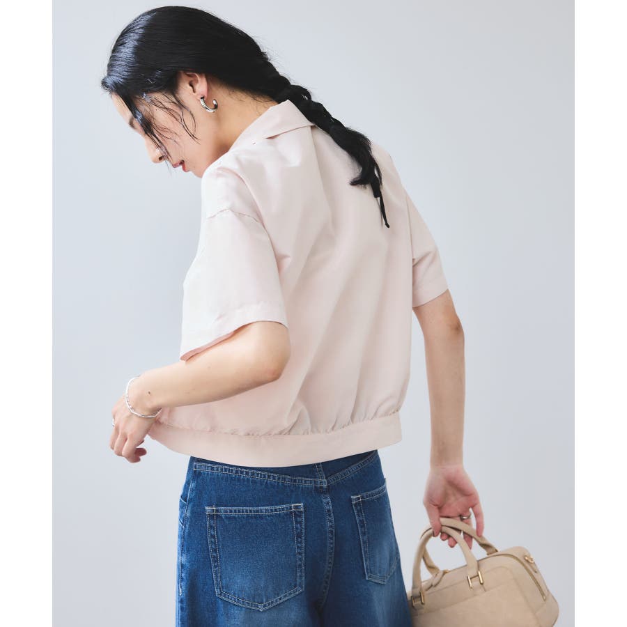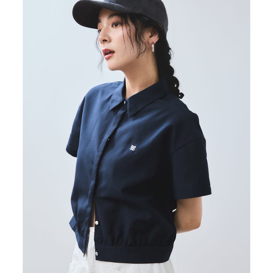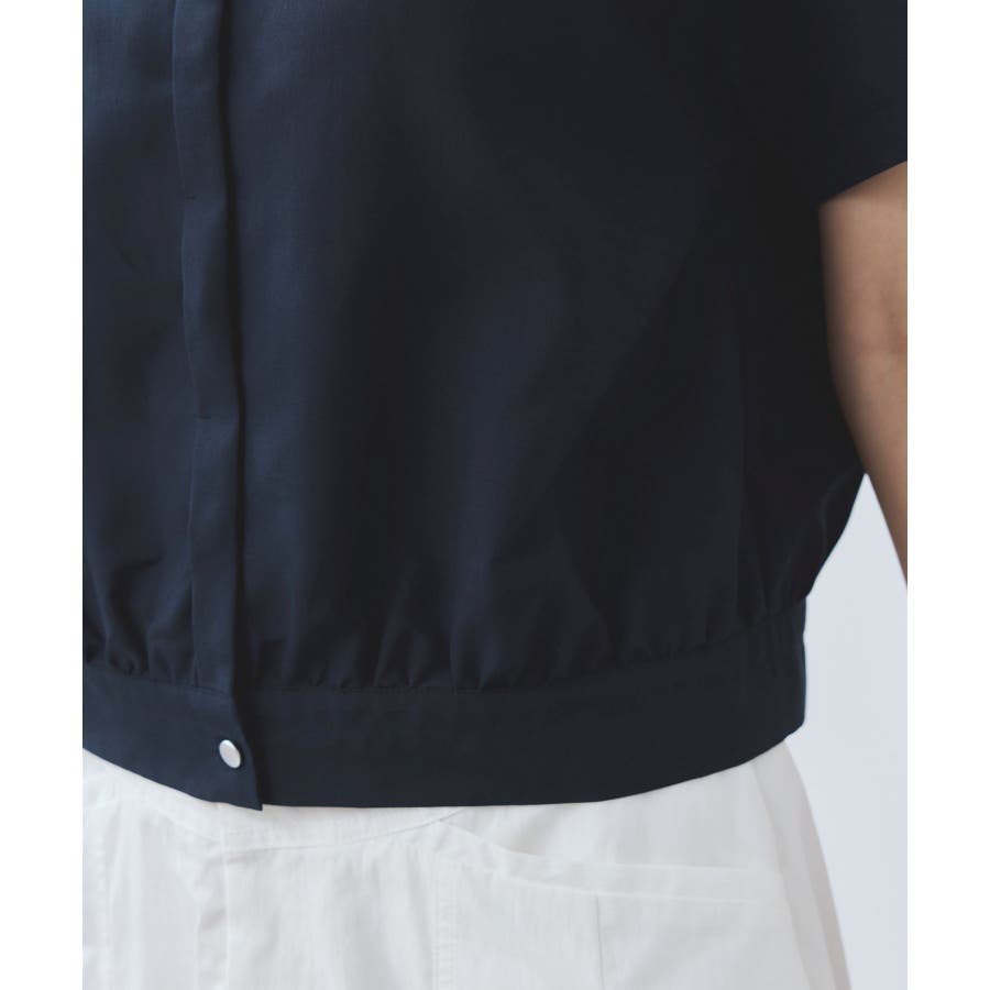 コンパクトなウエストで女性らしいシルエットを表現しています。腕回りをカバーしてくれる半袖シャツデザインは安心感も。