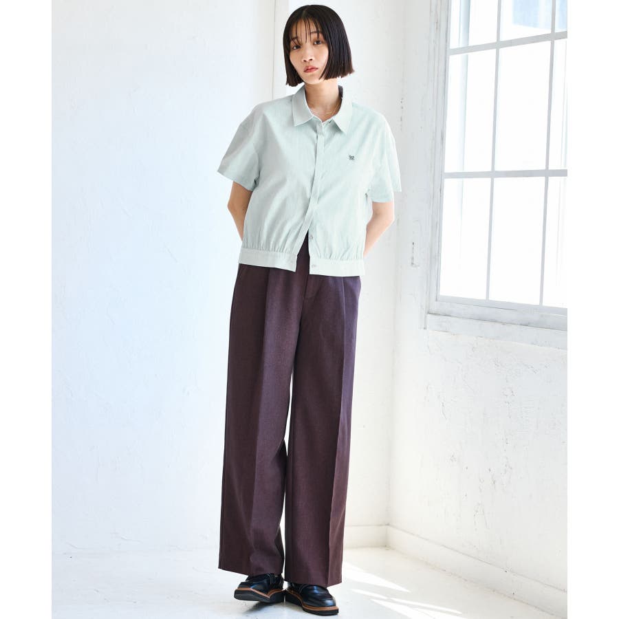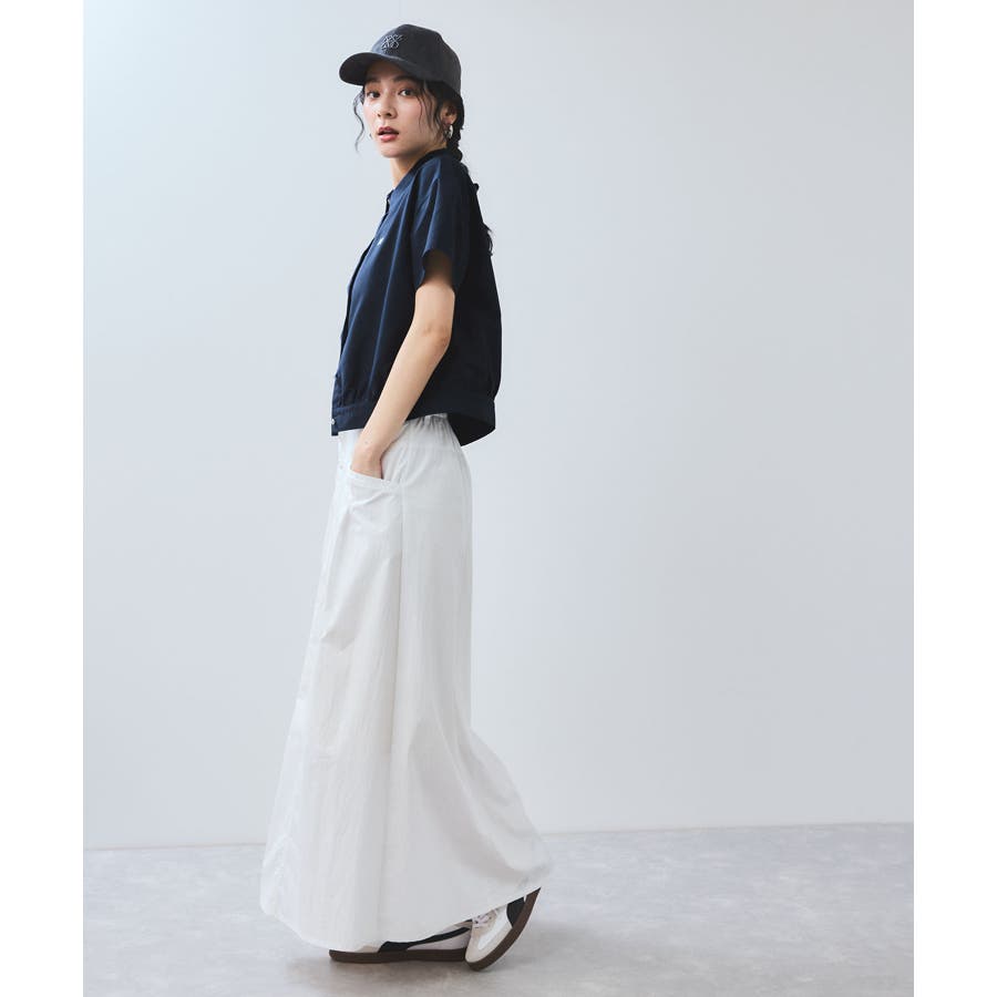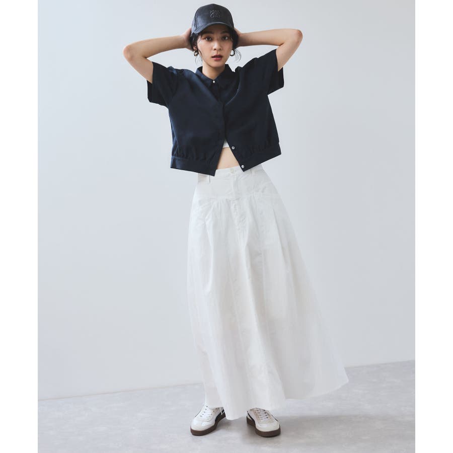 ウエストマークされているのでワイドパンツやフレアスカートで、抜け感のある大人カジュアルがおすすめ。一番下のボタンを開けて抜け感を出したり、前開きでインナーにクロップド丈のキャミソールやタンクトップを合わせたヘルシーな肌見せスタイルもベスト。白やベージュ系のボトムと合わせると、清潔感ある夏コーデが完成します。