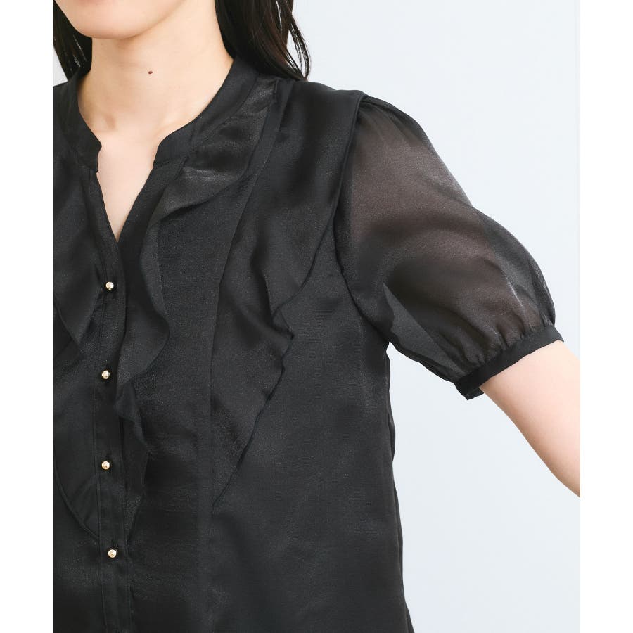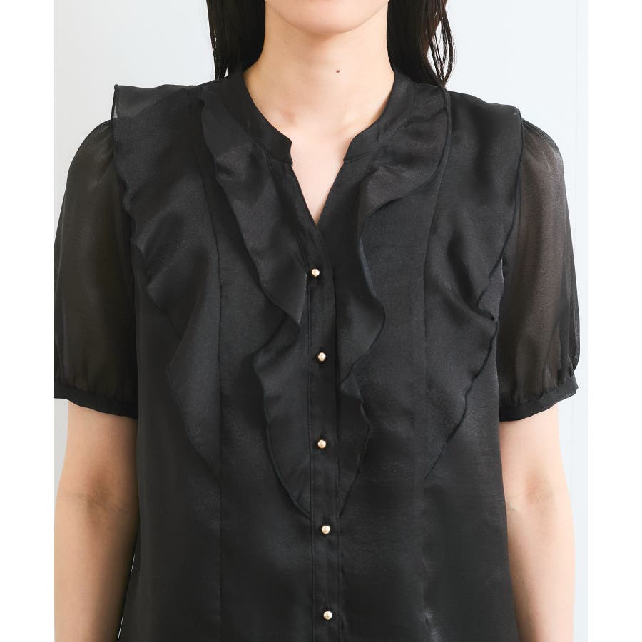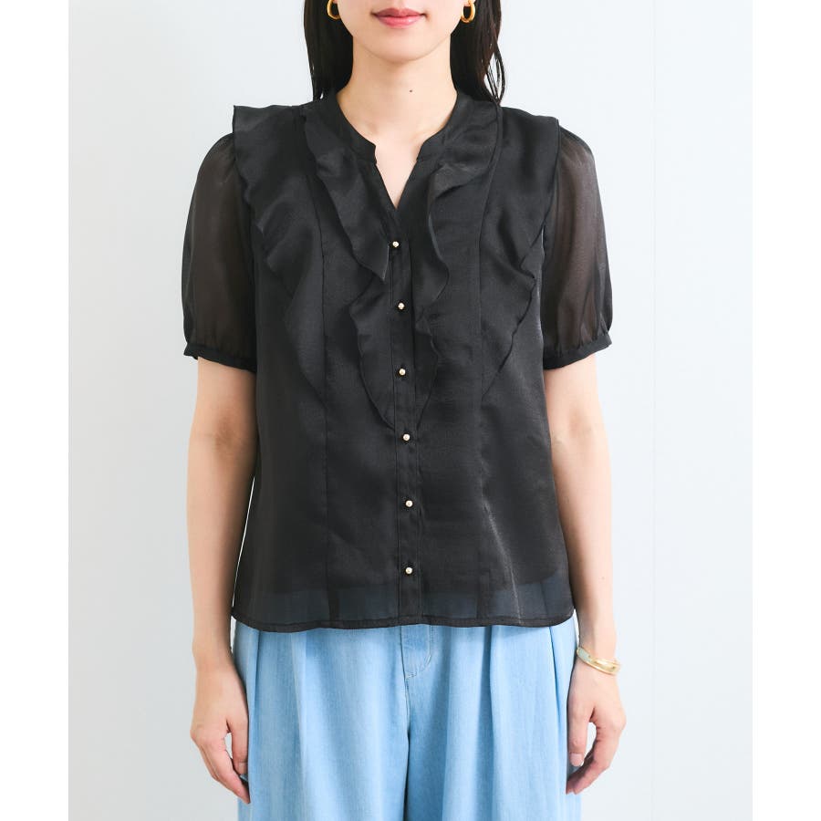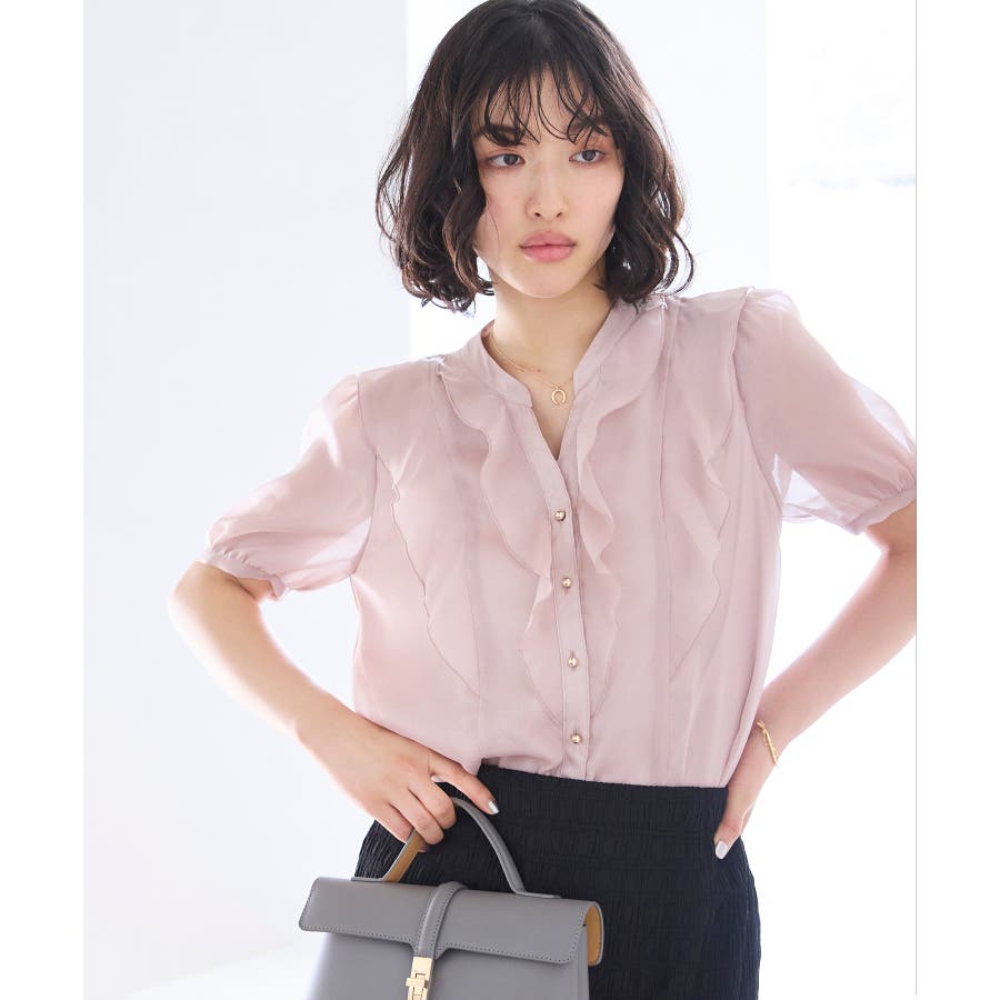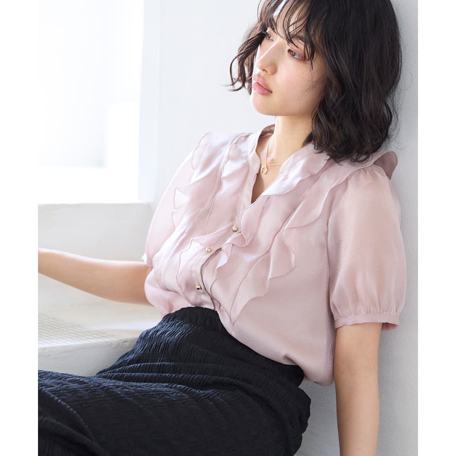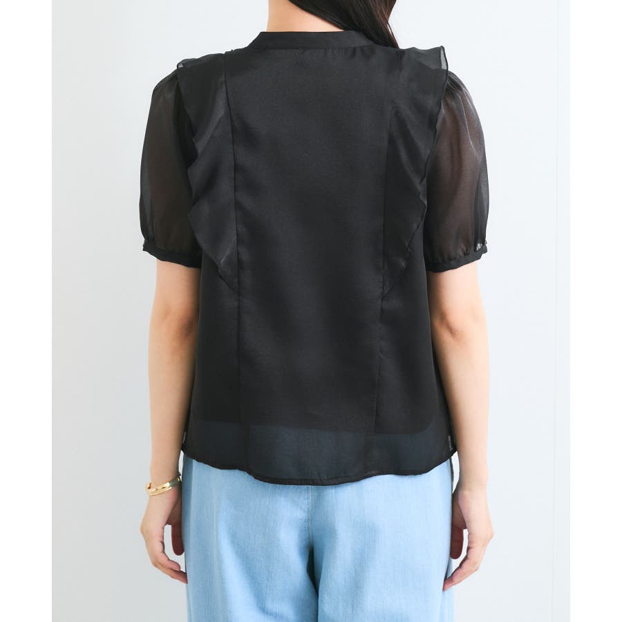 ・ひらりとしたシアーフリルがフェミニンな雰囲気を引き立たせるブラウス。