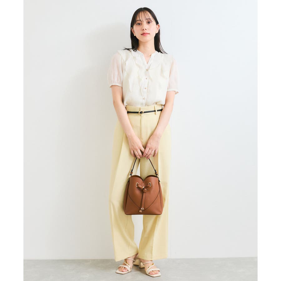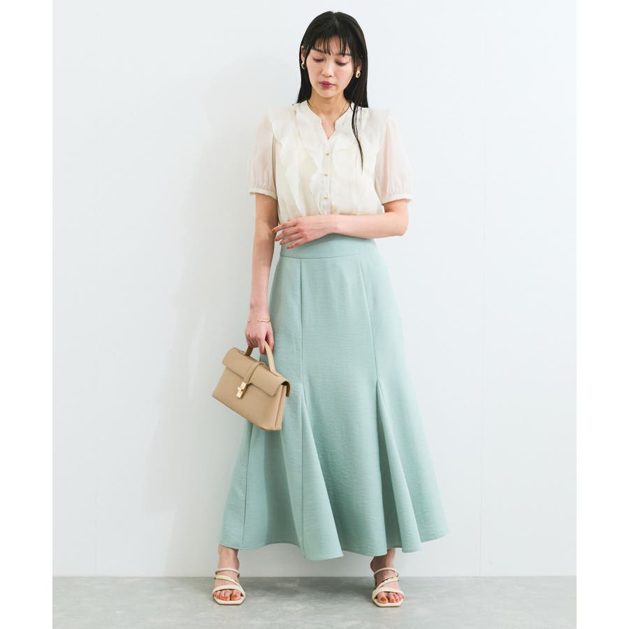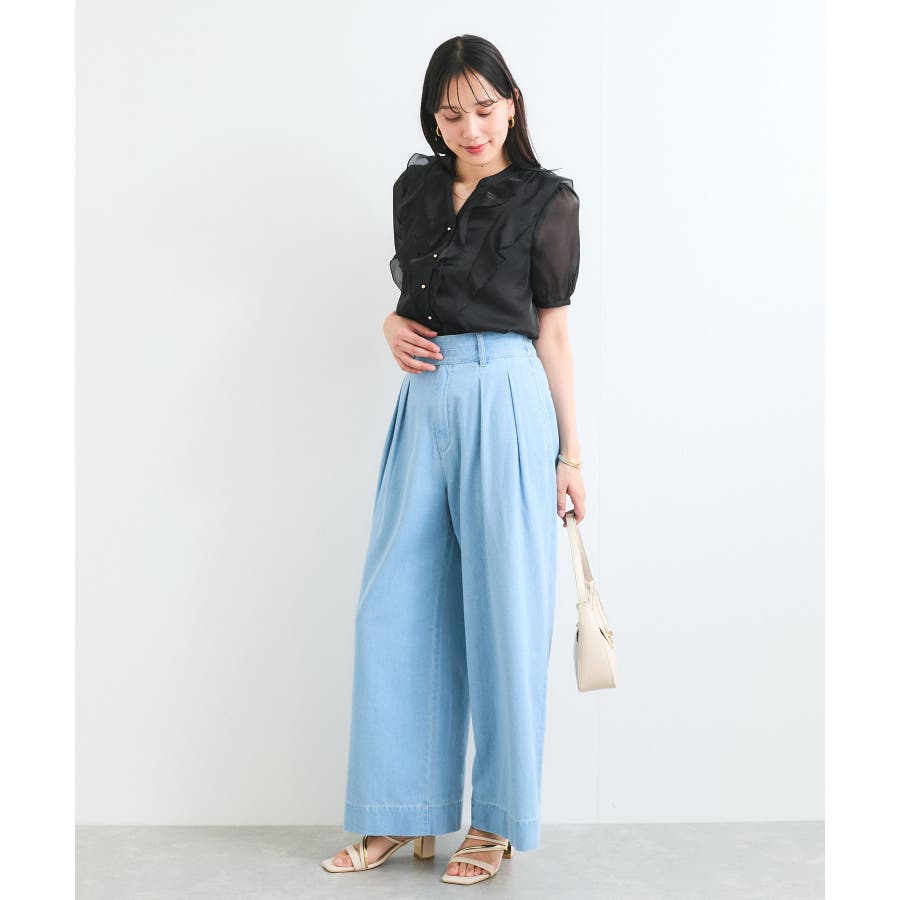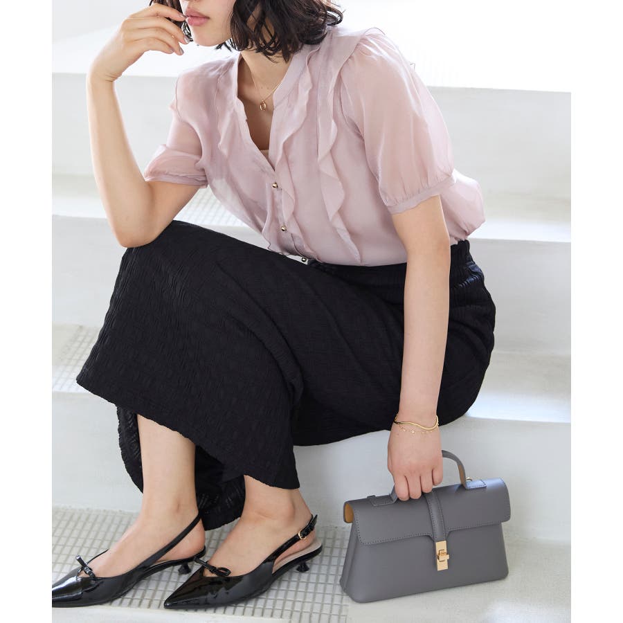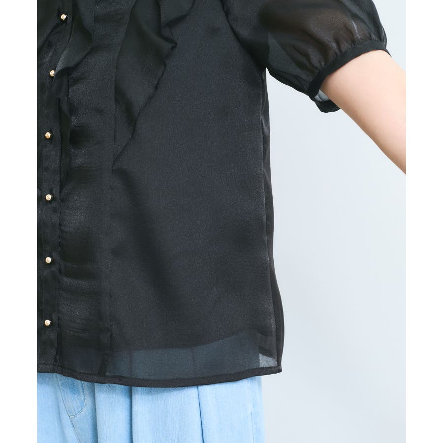 ・ひらりとしたシアーフリルがフェミニンな雰囲気を引き立たせるブラウス。