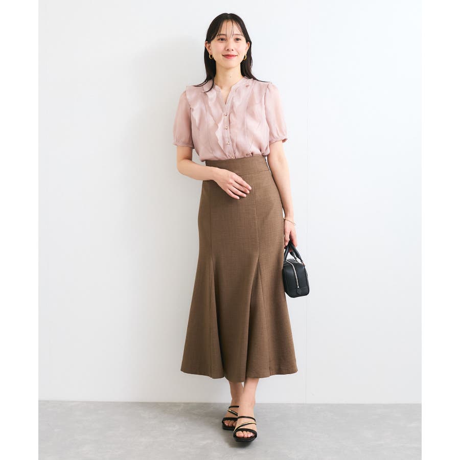 通勤やお仕事シーンにも最適なブラウス。パンツで甘さ抑えめに、マーメードスカートで甘さを加えより女性らしく着こなしを楽しんでいただけます。