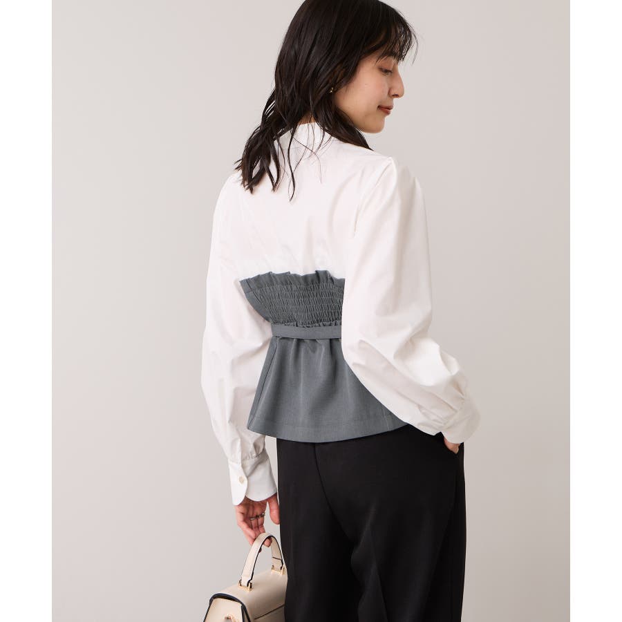 ウエストが少し絞られたペプラムシルエットですっきり着ていただけます。前がすべて開くので着用のしやすさもポイント。