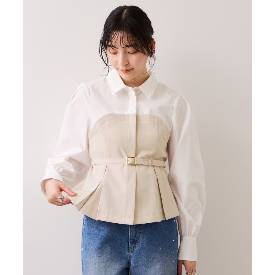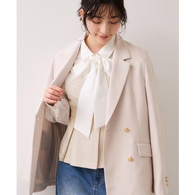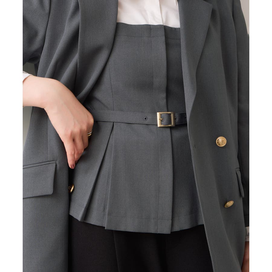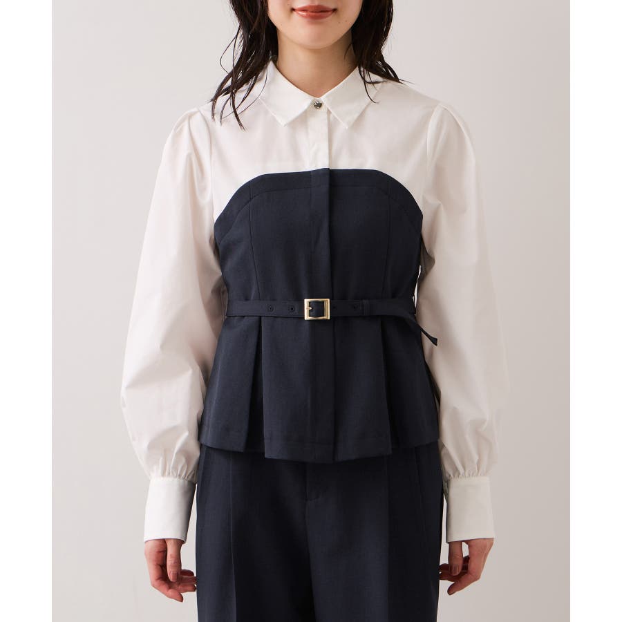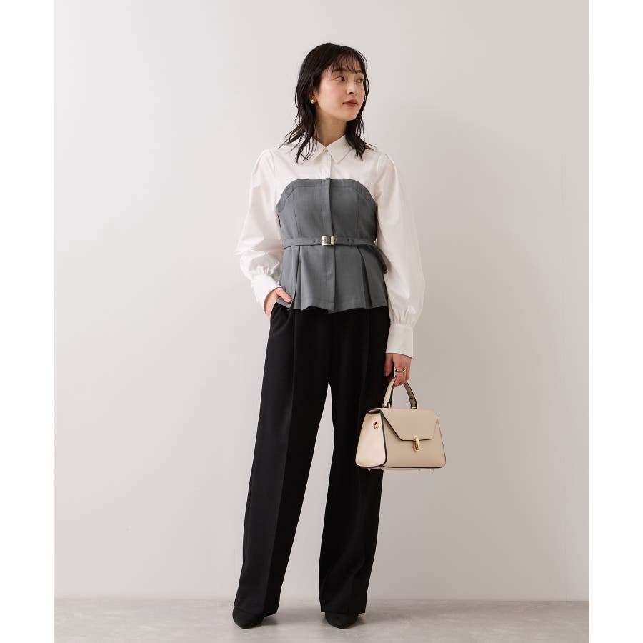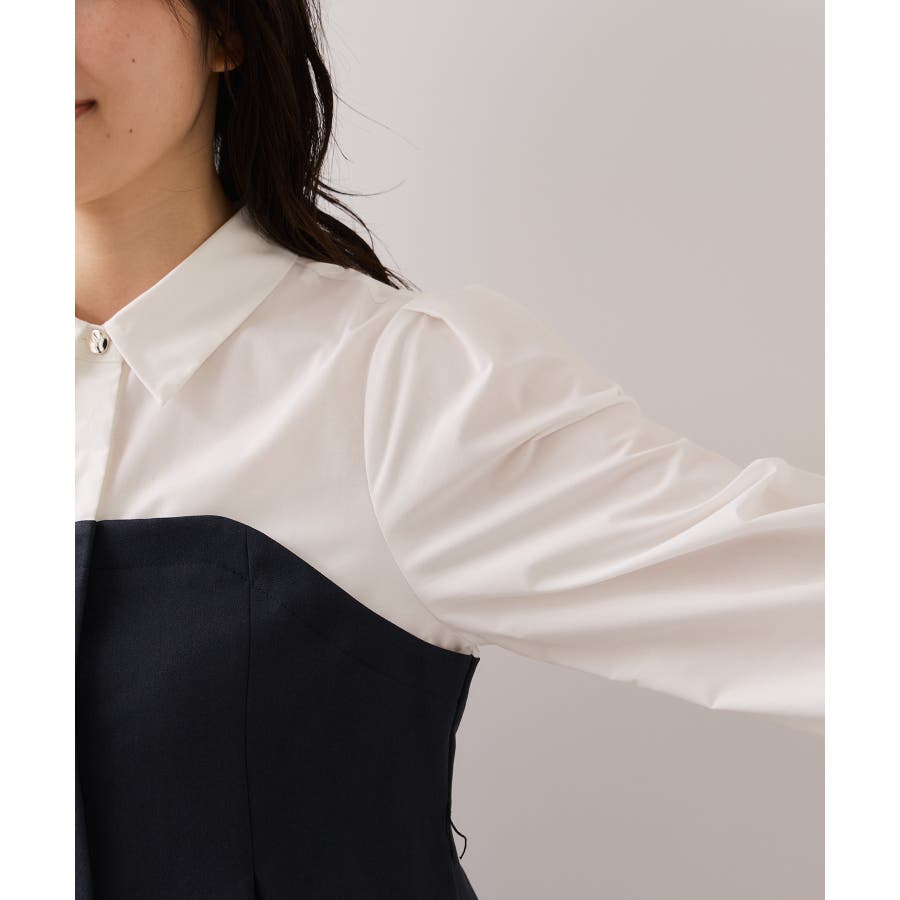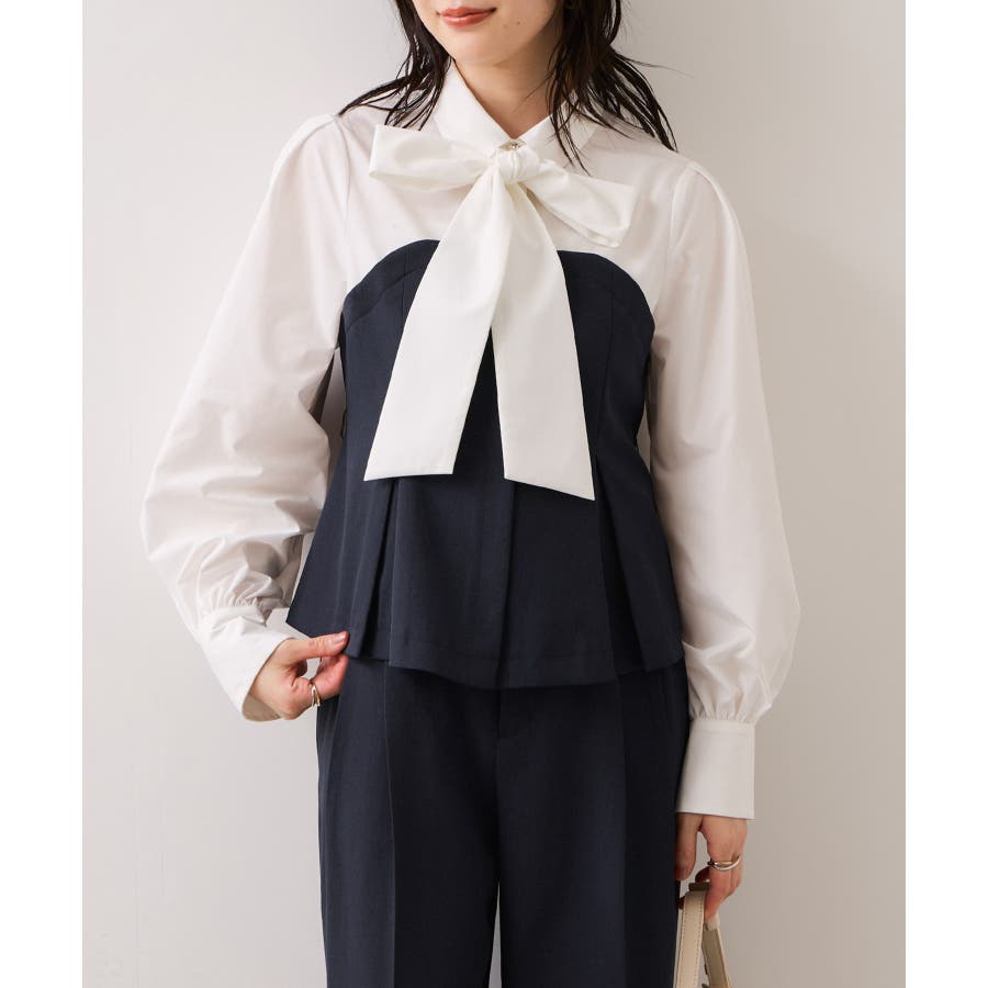 リボンボウタイと共布ベルトがついているので、シーンに合わせて違う見せ方が出来ます。着方としてはどちらか1つつけるのがおすすめです。