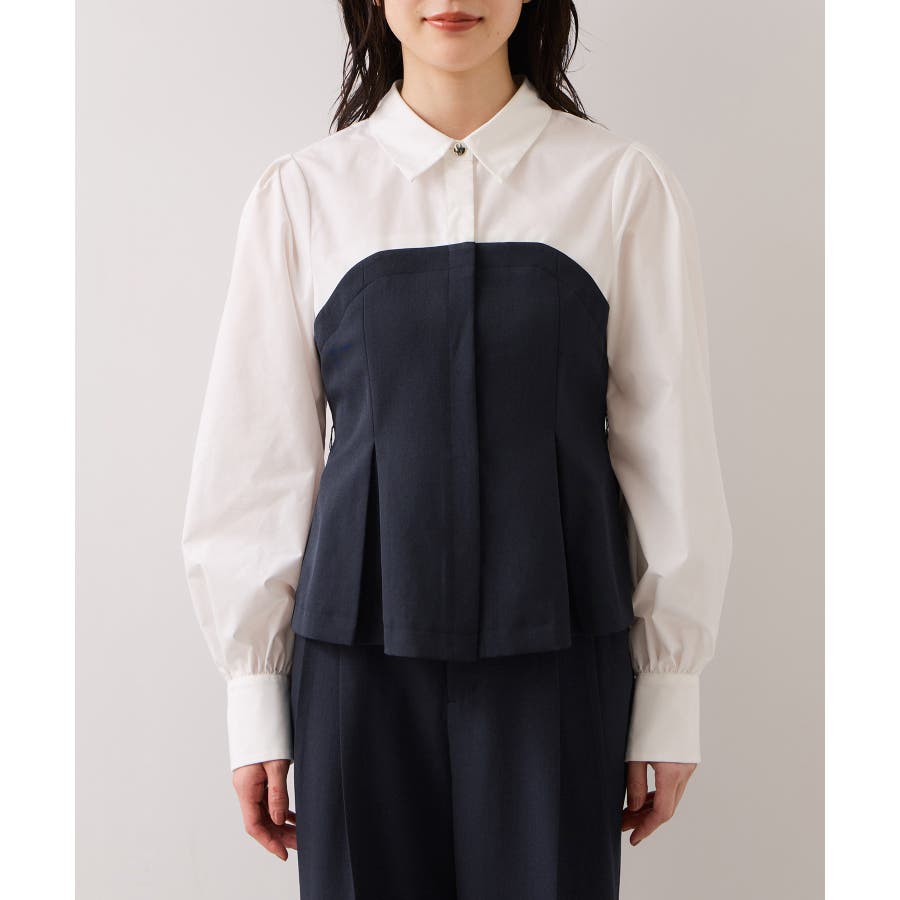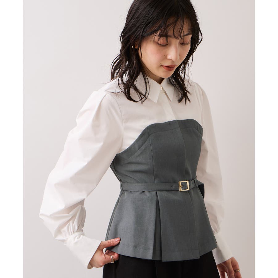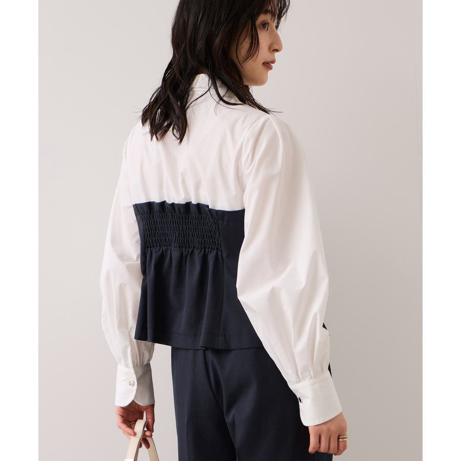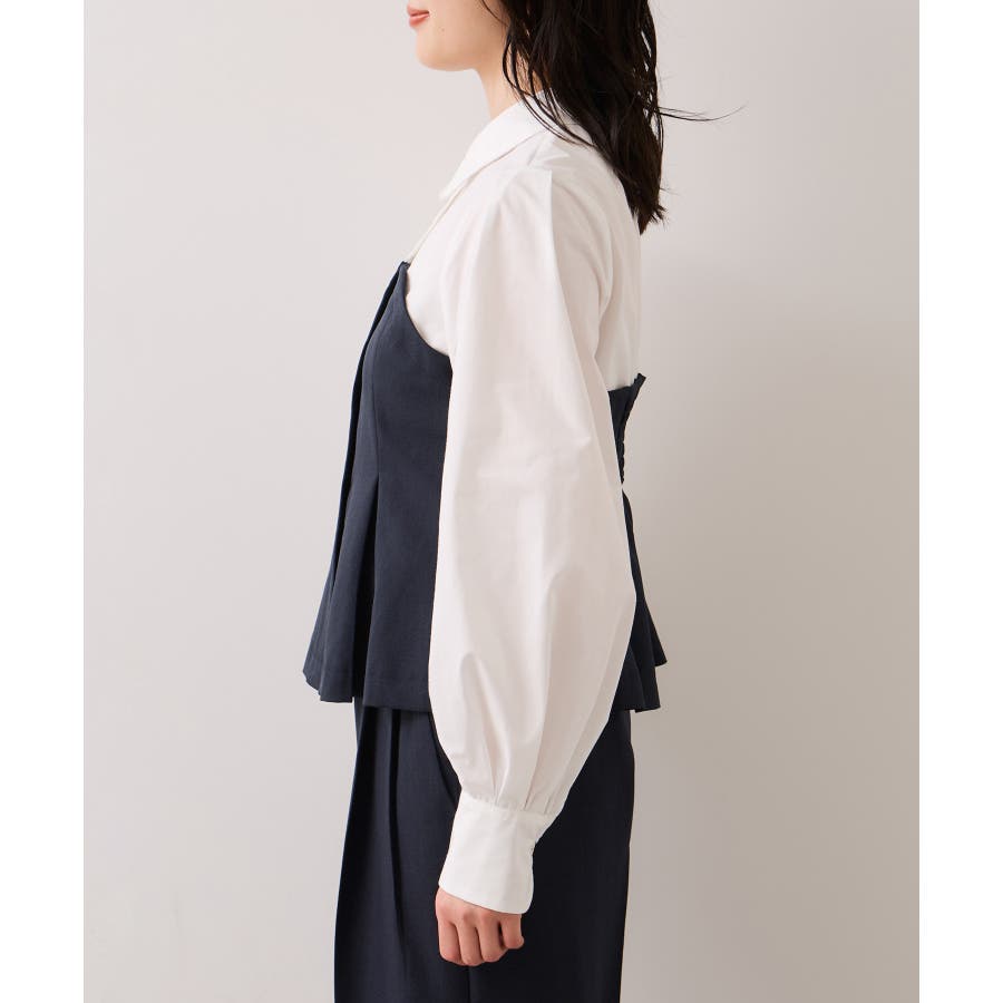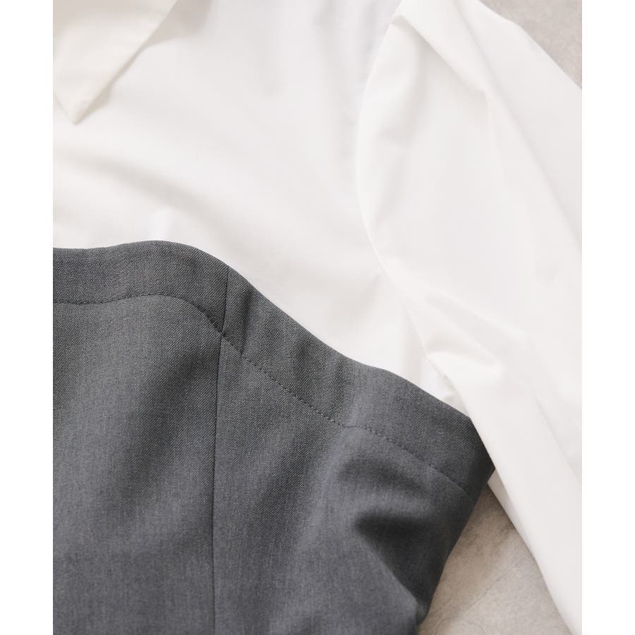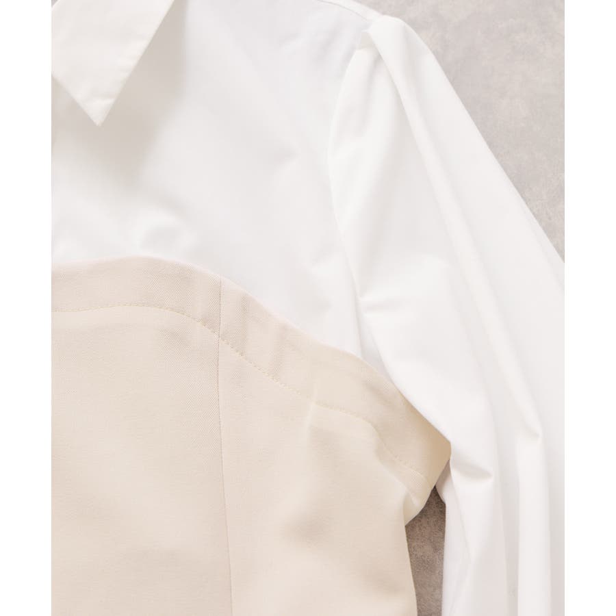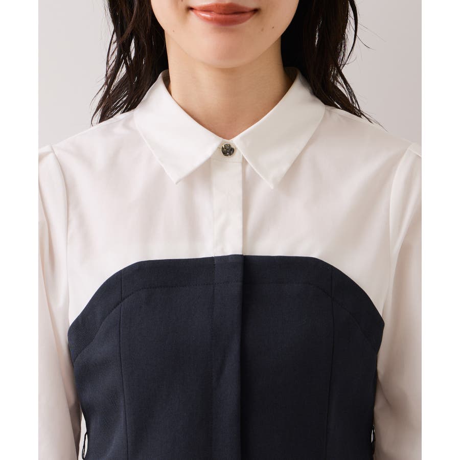 VISで人気の美EASYコンフォートシリーズにビスチェドッキングシャツが登場!きちんと感のある肩幅と着丈のバランス、第一ボタンはさりげないゴールド釦がポイントです。