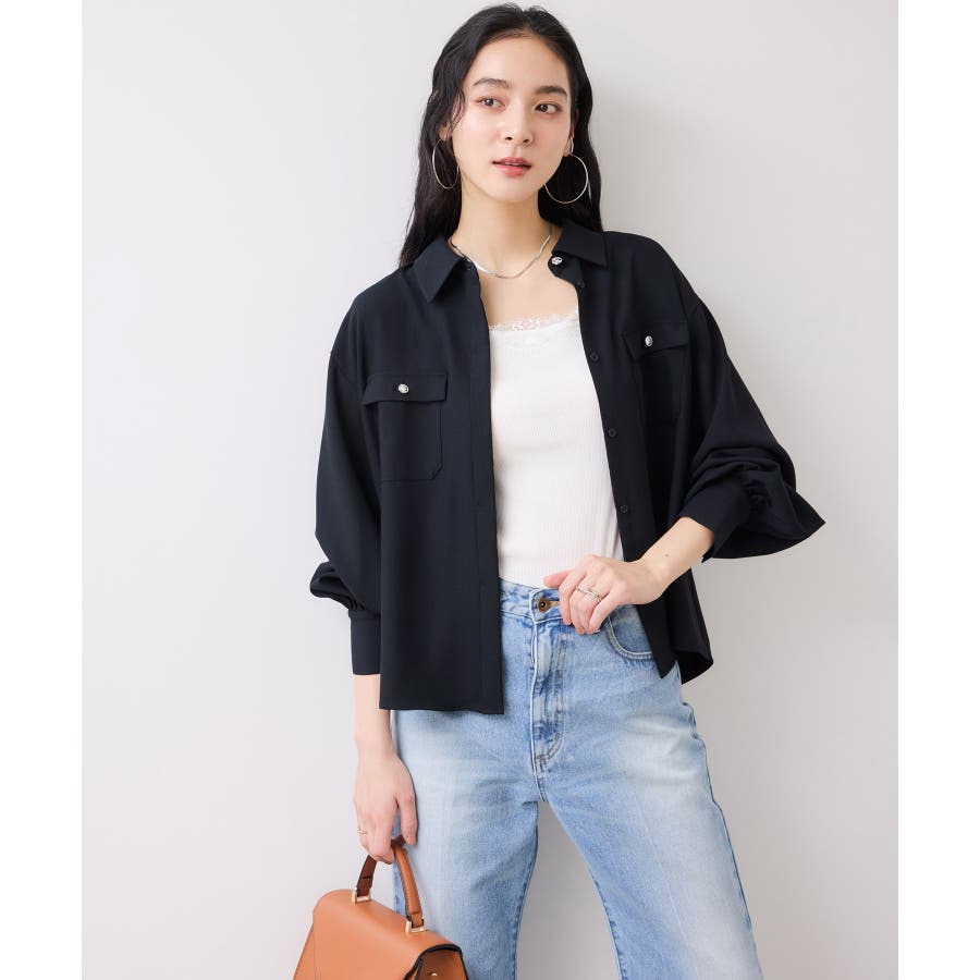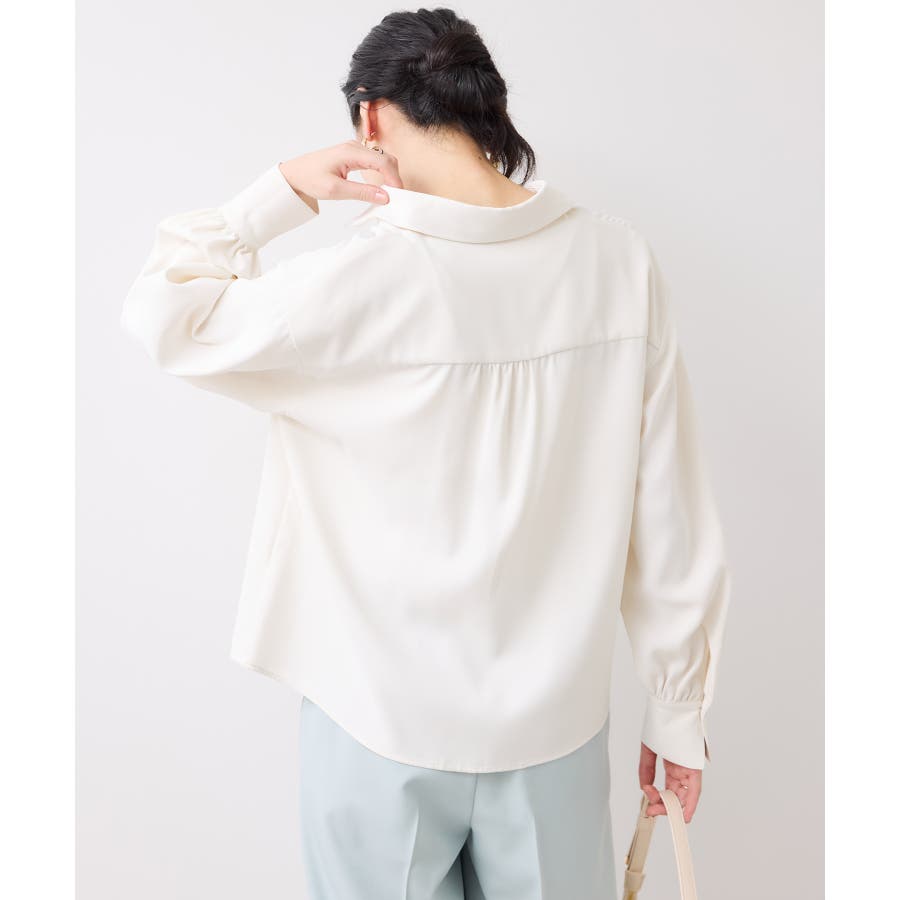 ・落ち感のある程よく厚手のブラウスで取り扱いがしやすい素材です。