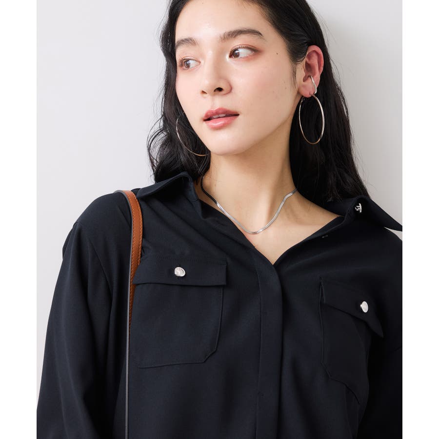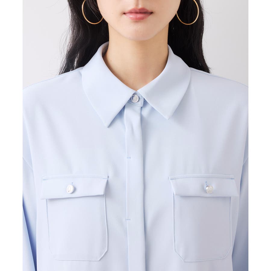 メタル釦シャツブラウス/イージーケア