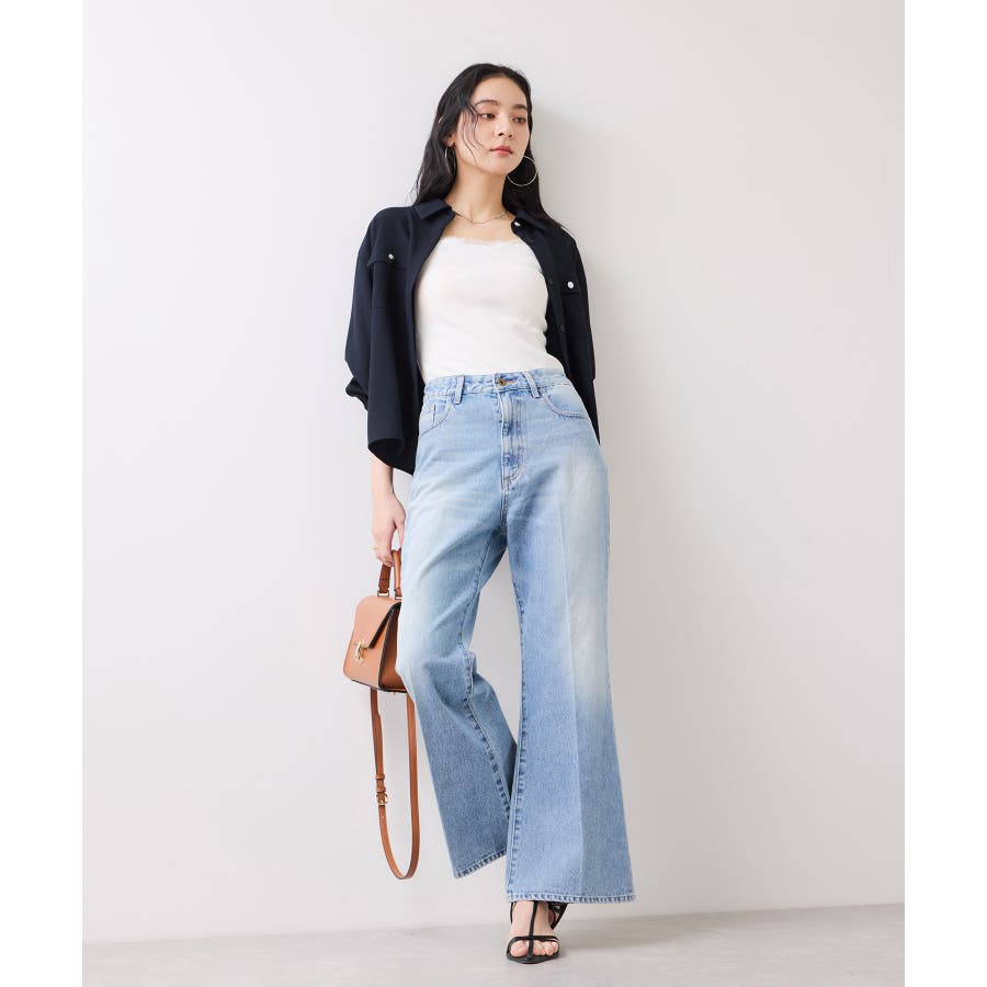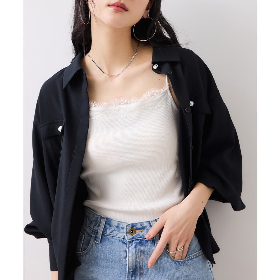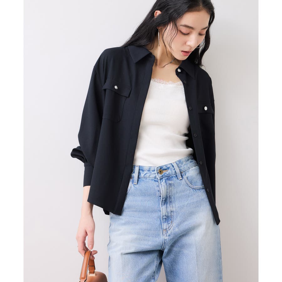 キレイ目パンツはもちろん、デニムにも合わせやすいアイテムです。第2釦まで開けてデコルテ周りを爽やかに抜け感を出すのがおすすめ!