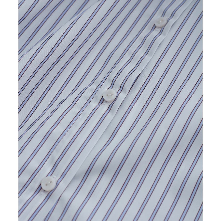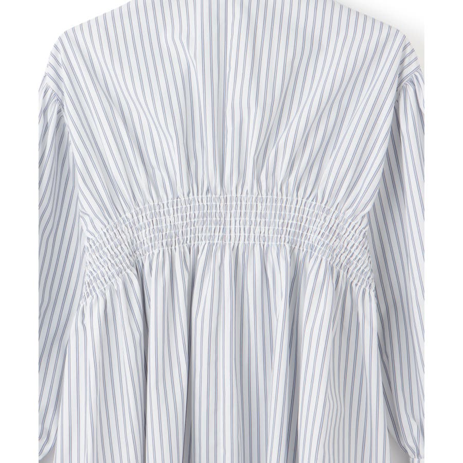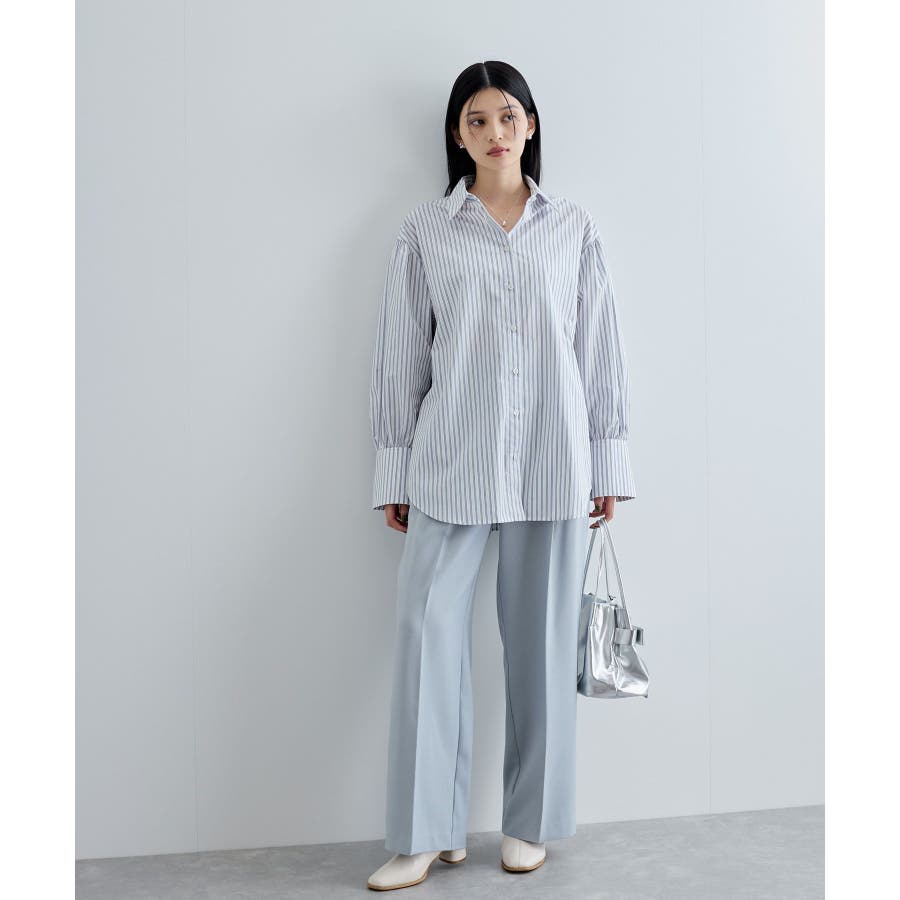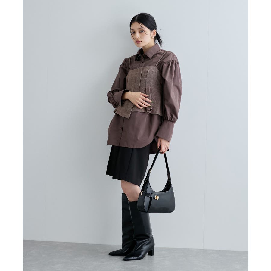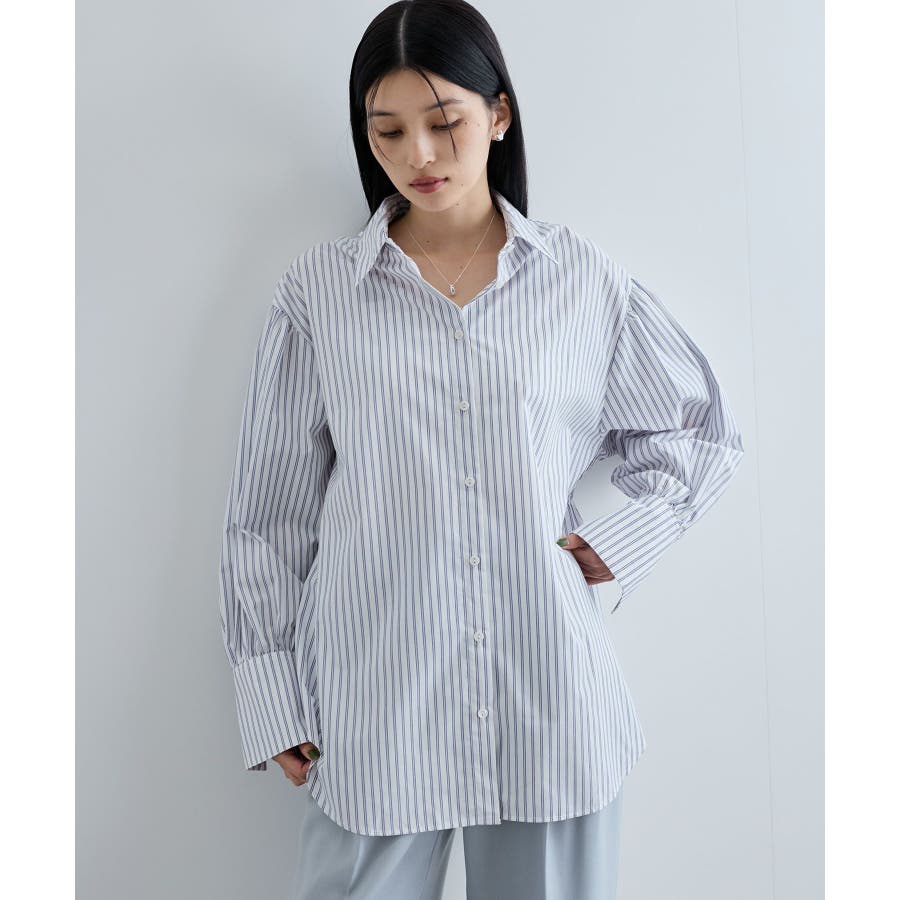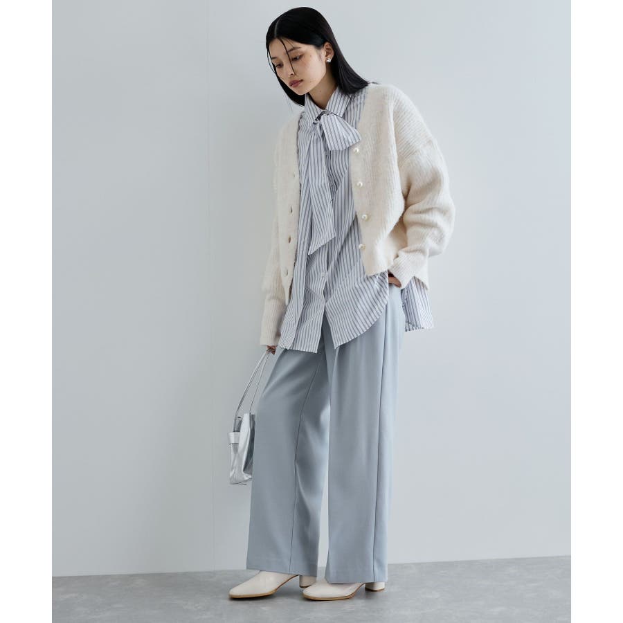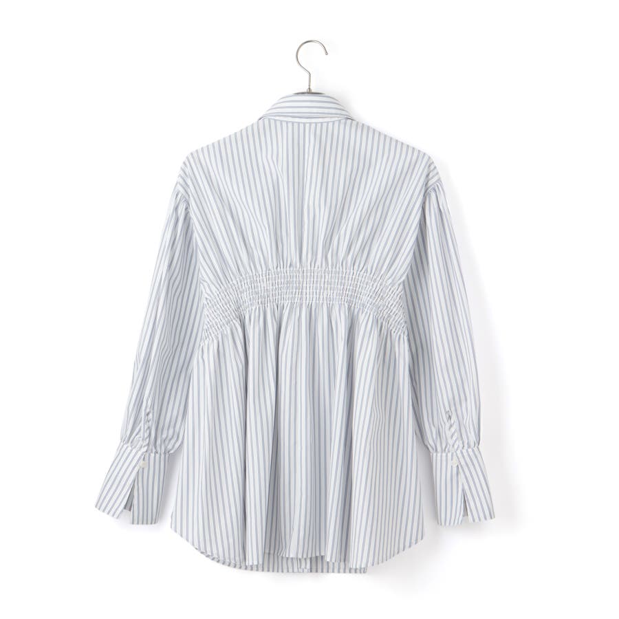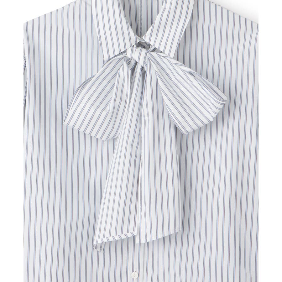 ◆2024-25秋冬◆ 【デザイン・シルエット】 ビッグリボンが目を引くシャツ。 バックにシャーリングを施すことでワイドな印象にならず、1枚ではもちろんニットなどのレイヤードでもすっきりと着用いただけます。