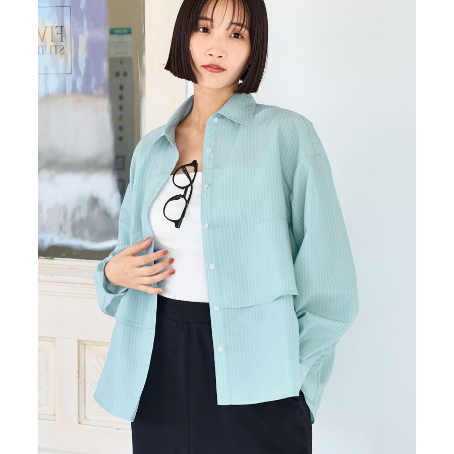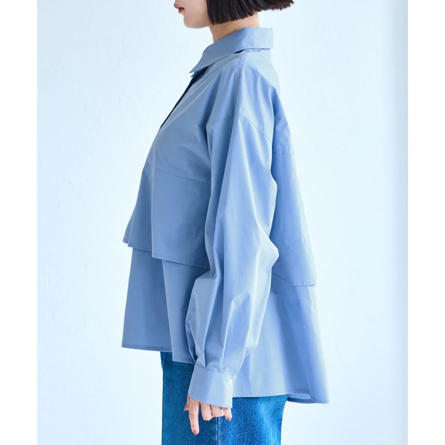 裾ティアードオーバーシャツ/UVケア・イージーケア