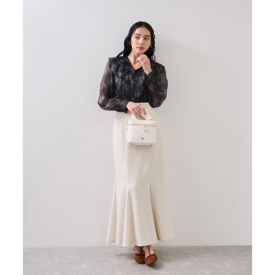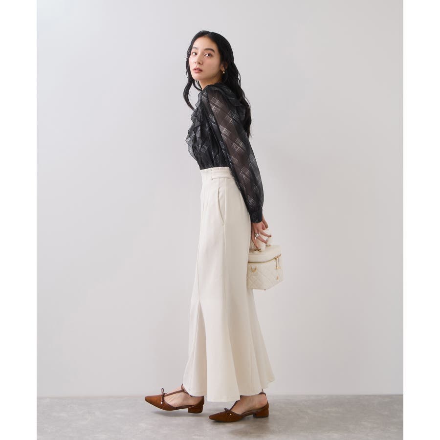 甘さのあるアイテムなのでワイドパンツなどでメリハリのあるスタイリングがぴったり!マーメイドスカートで王道レディコーデにも◎