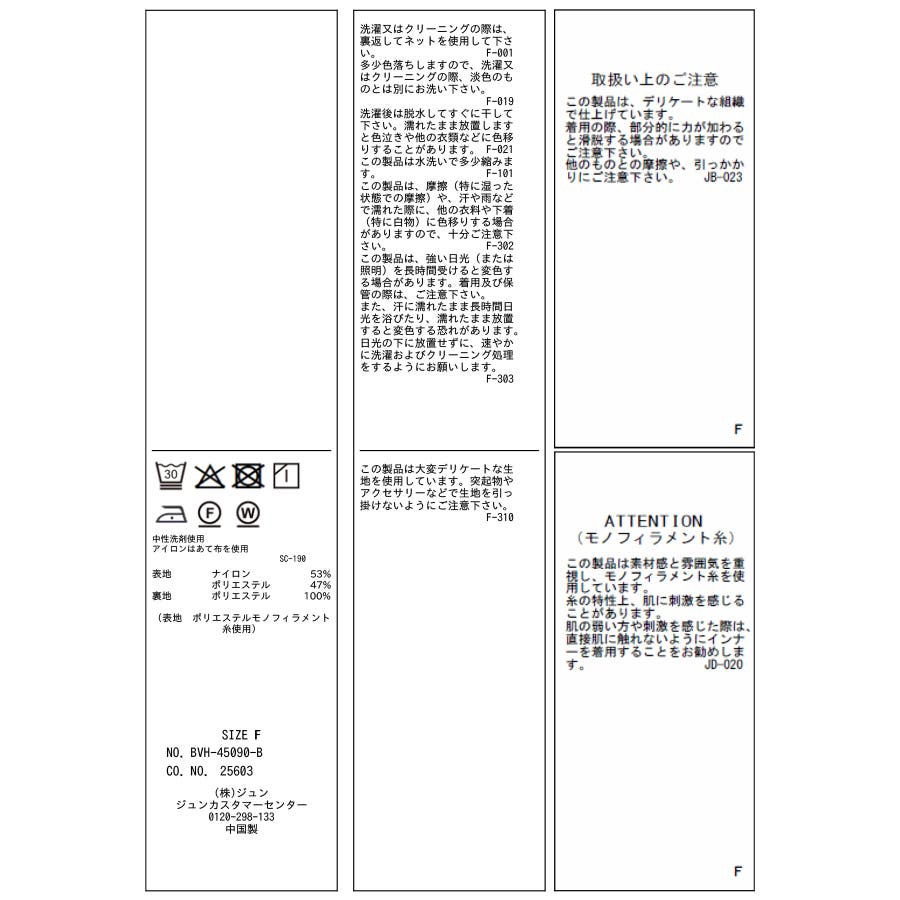 【洗濯表記】洗濯機|漂白不可|タンブル乾燥不可|自然乾燥|アイロン仕上げ可|ドライ可|ウエットクリーニング可