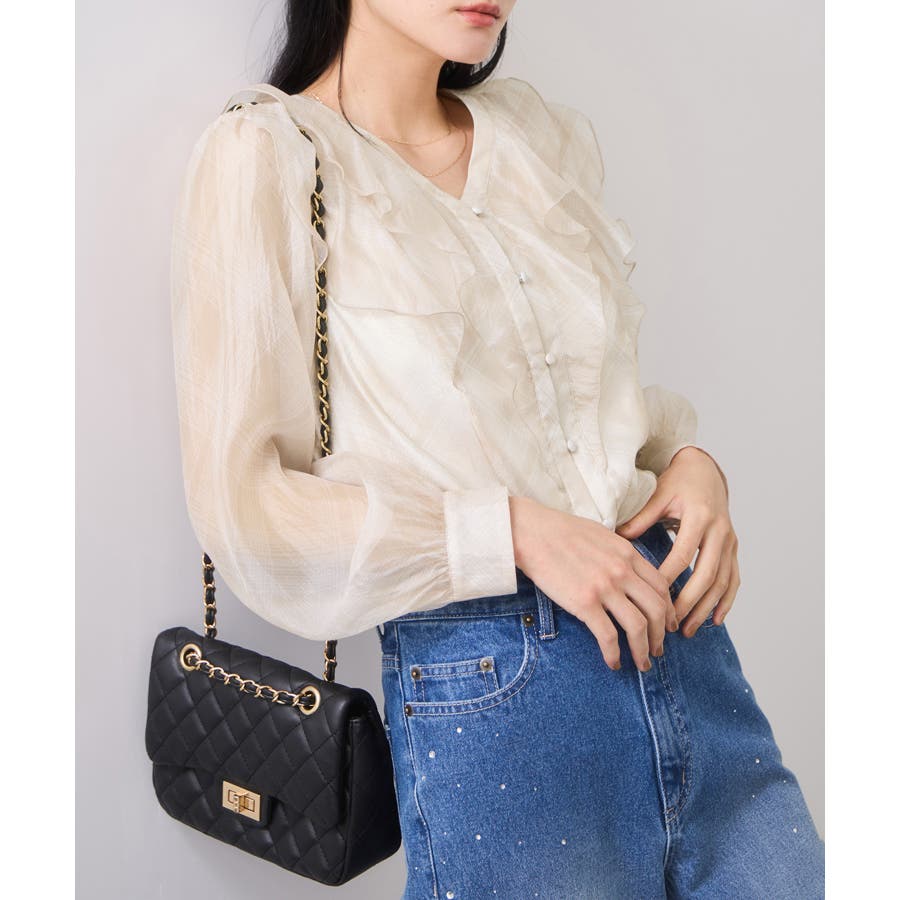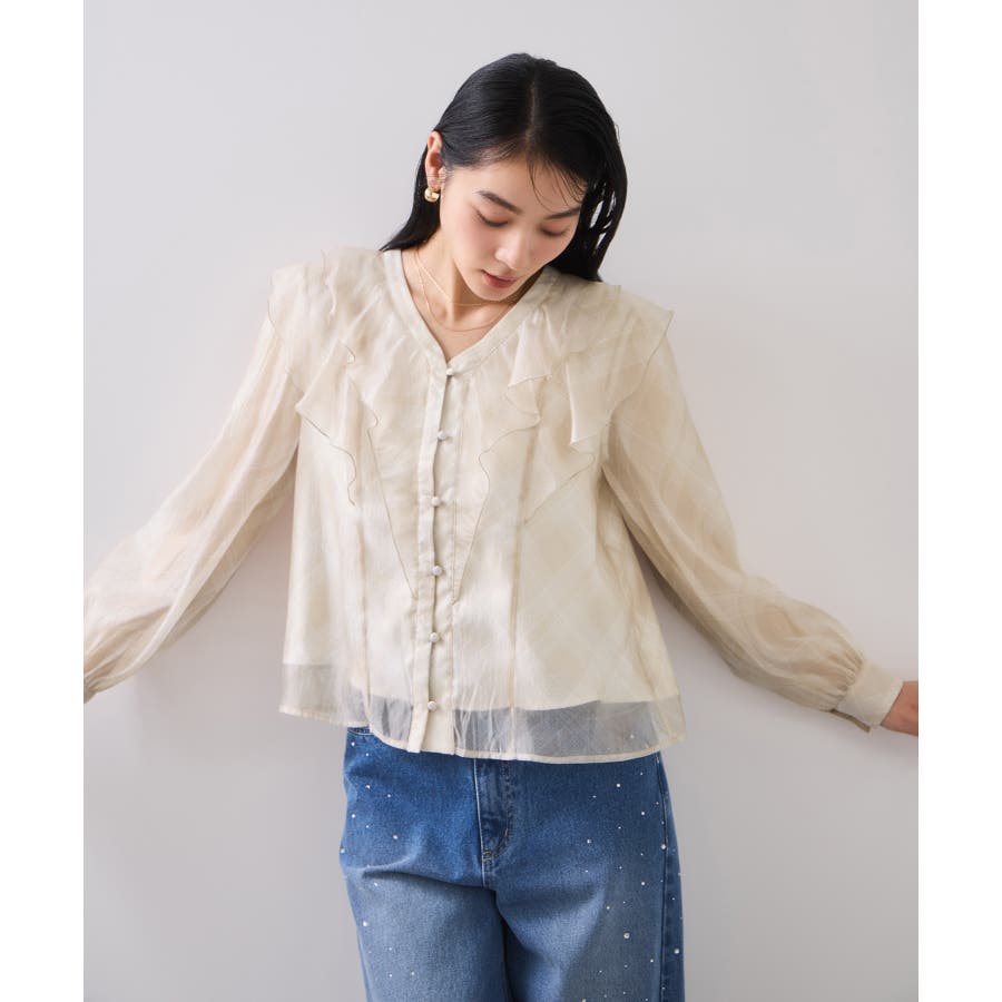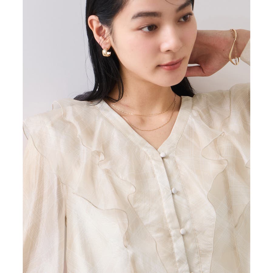 ・フロントのフリルが女性らしいブラウスです。