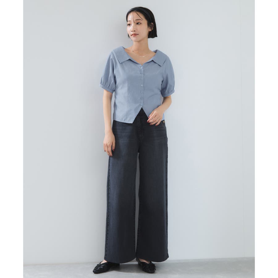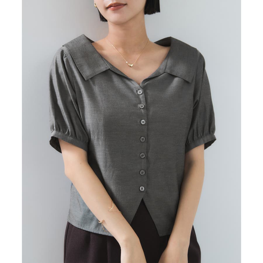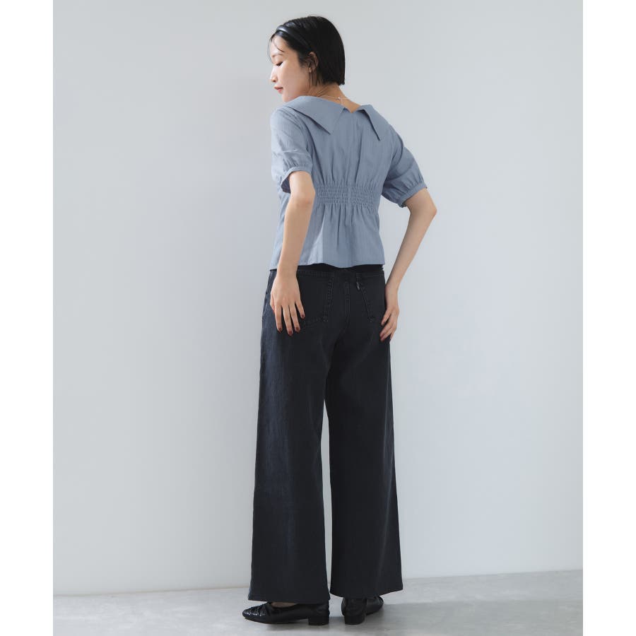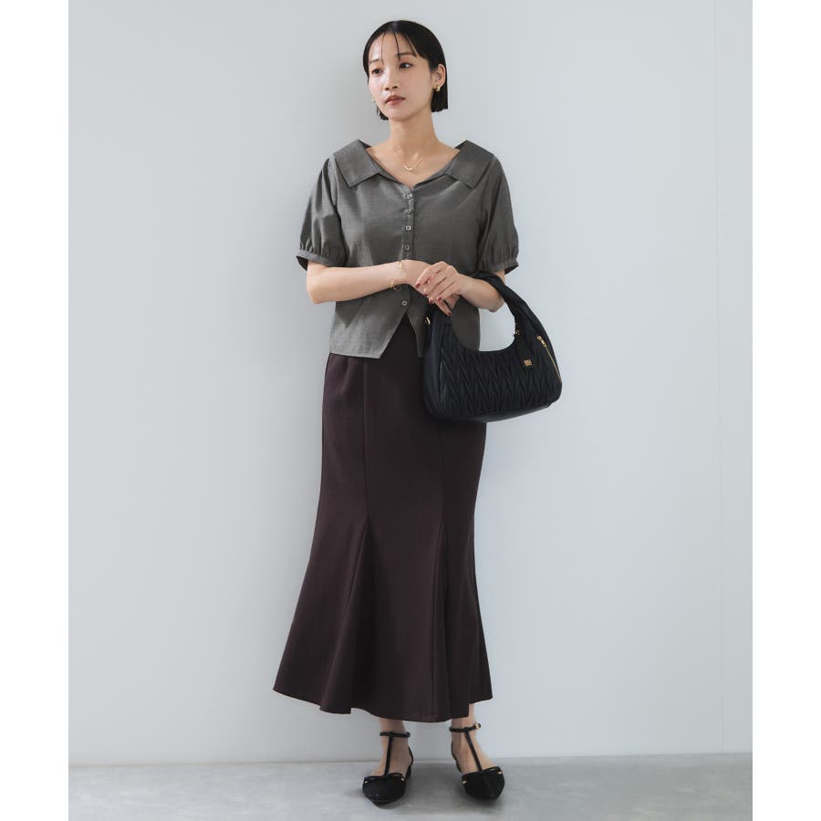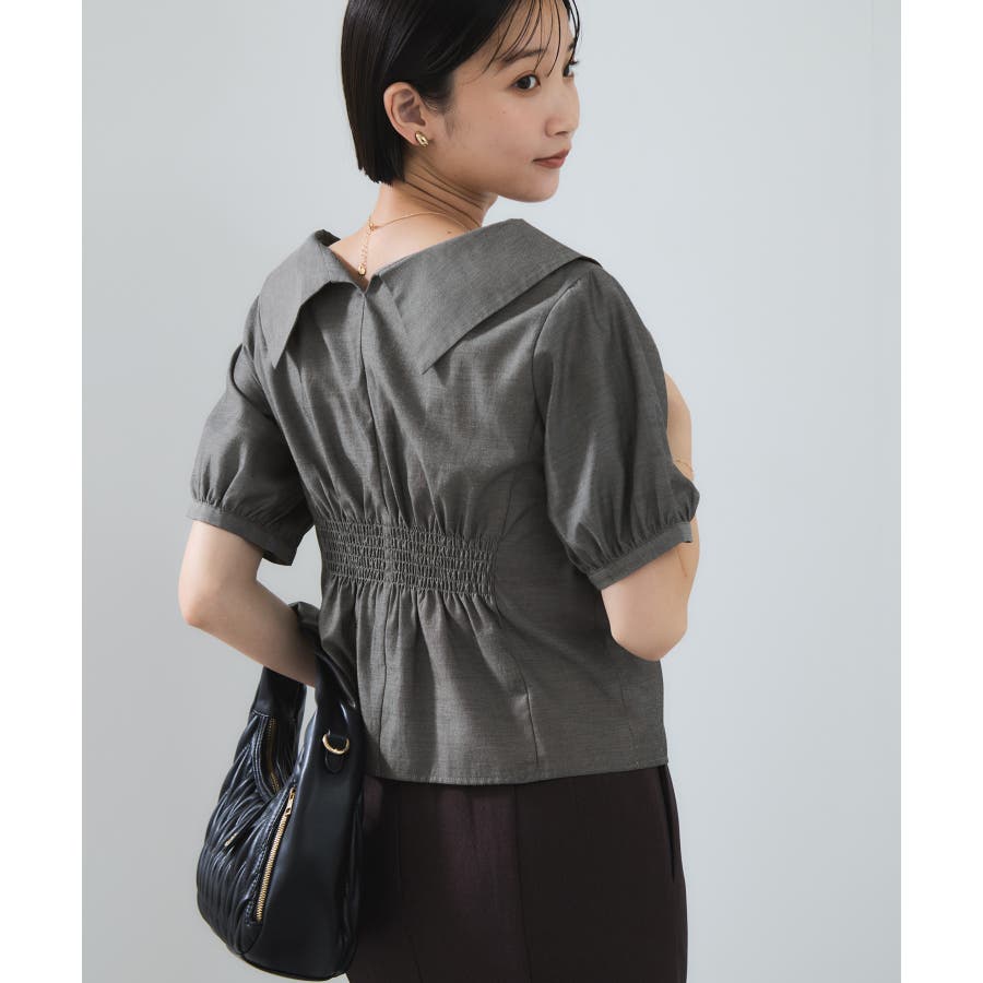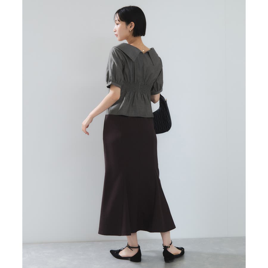 デコルテ魅せができるのに下着は見えないようにバランスを考えて作った1着。後ろゴムで着脱しやすく、フロント裾にスリットがあるのもボトムスと合わせた時のスタイルアップポイントになります。