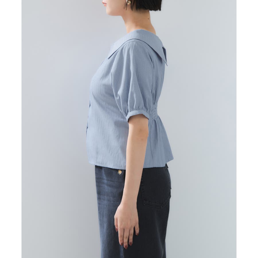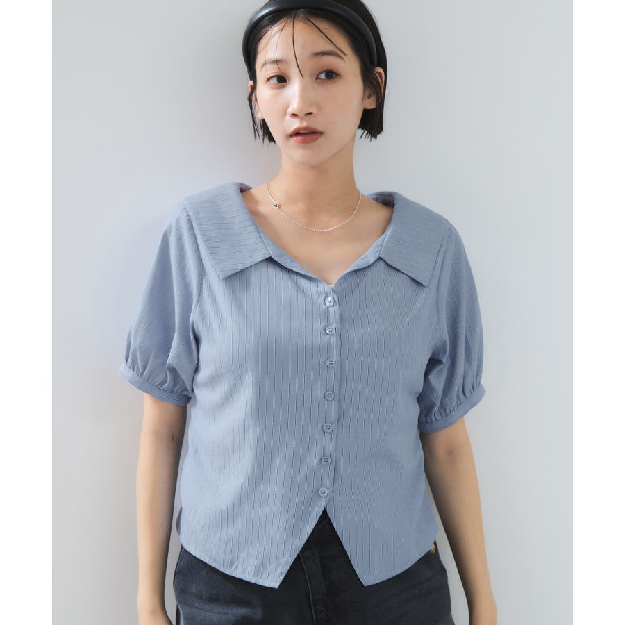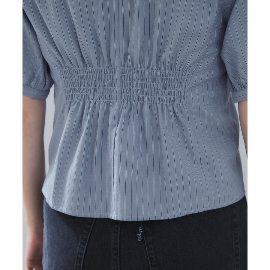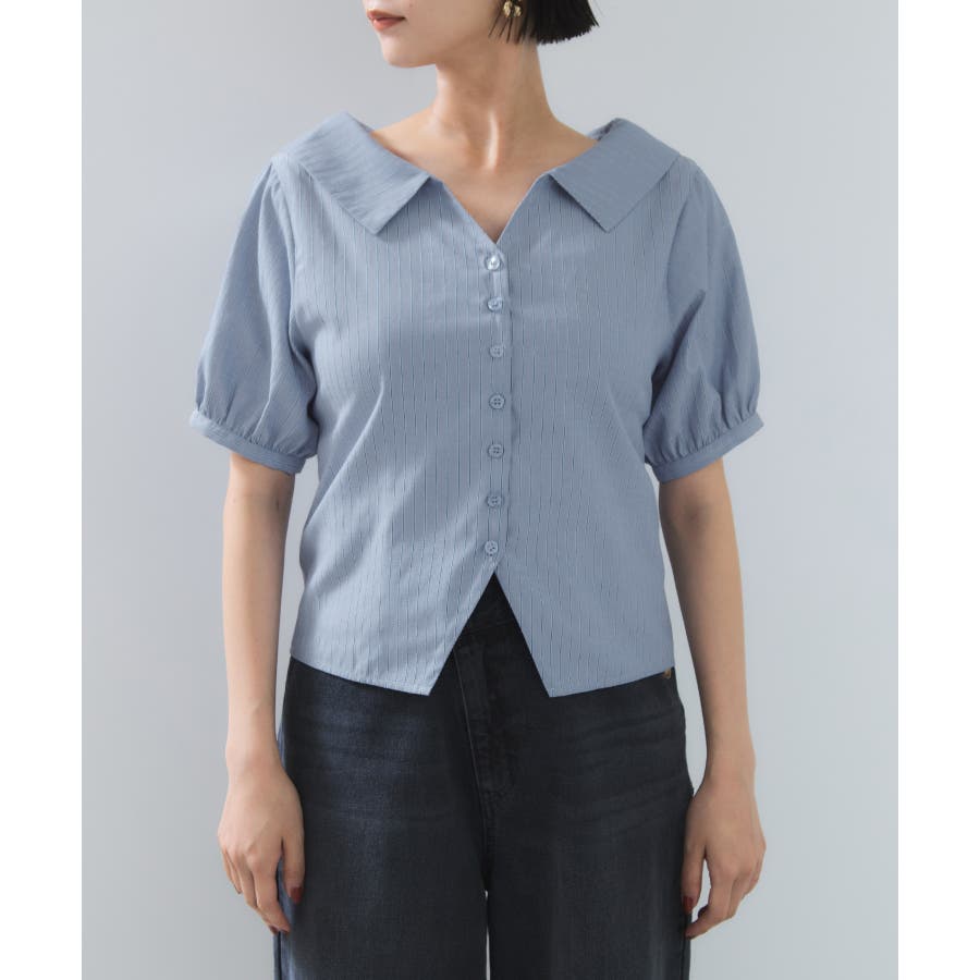 チャコールのシャンブレー、ブルーストライプの2色展開。