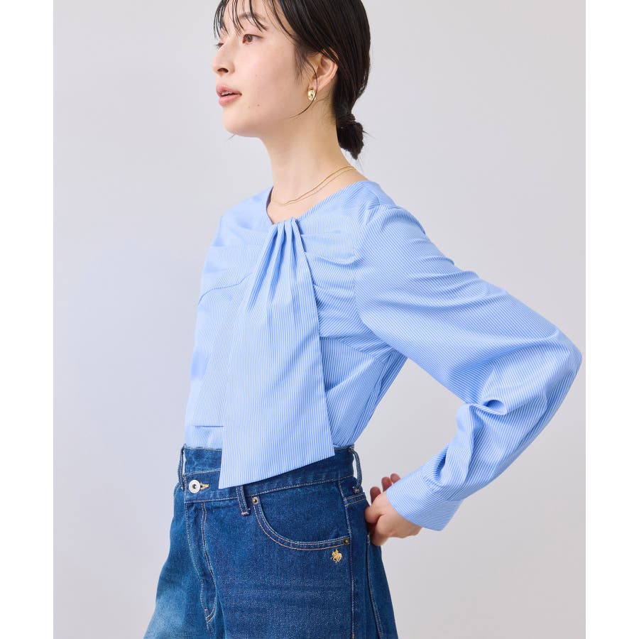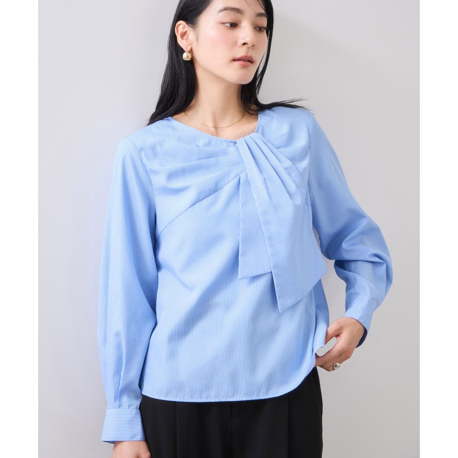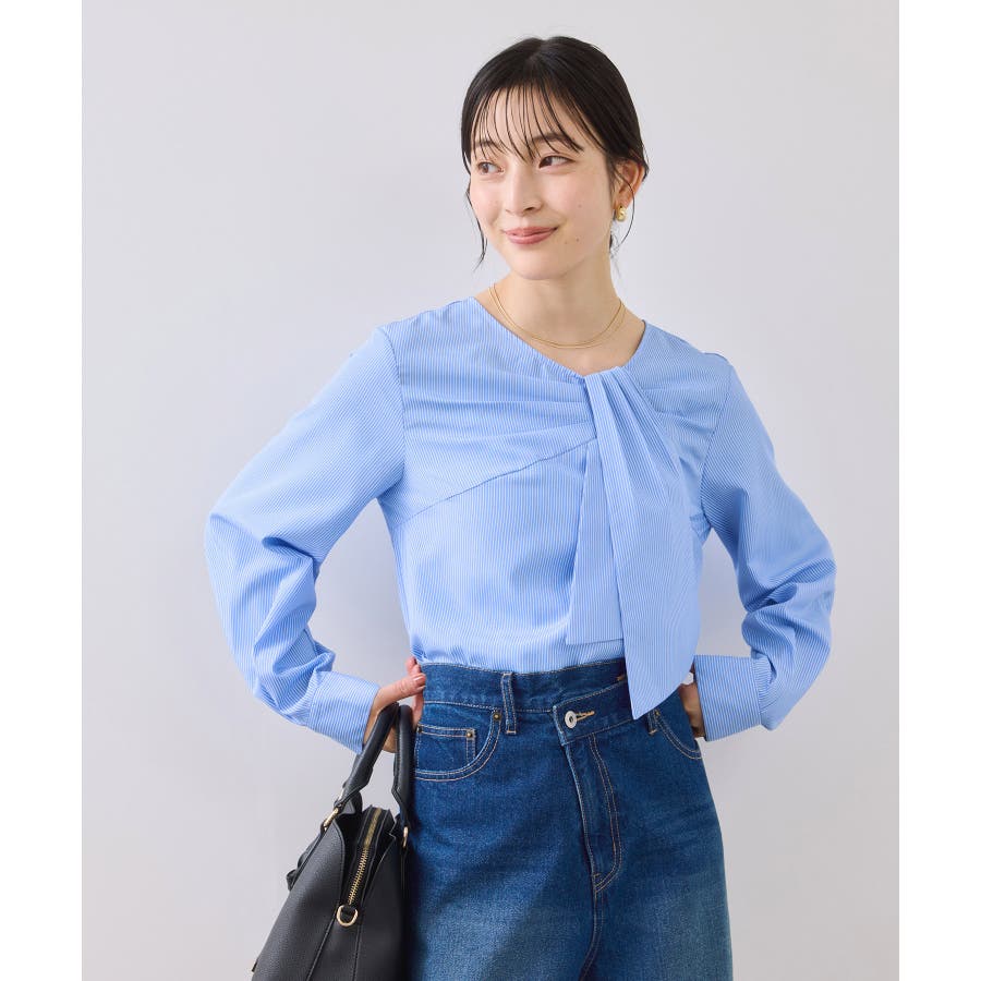 ブラック、ホワイト、ブルーストライプの2色展開。お仕事に着まわしやすいカラーをセレクトしました。