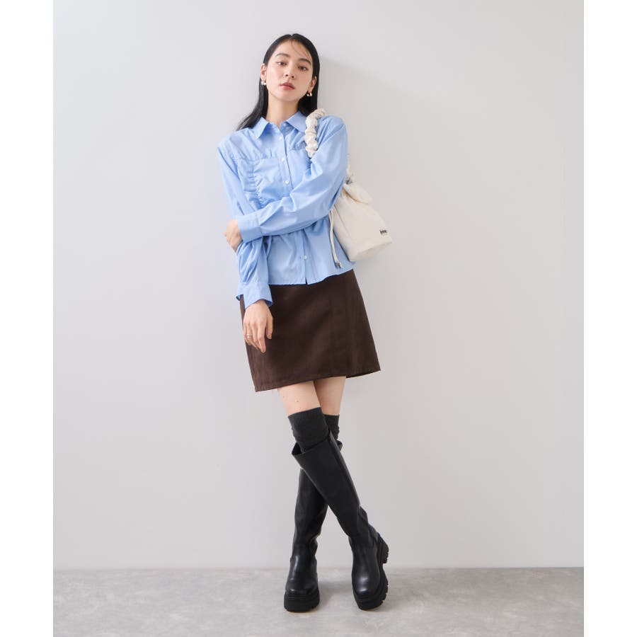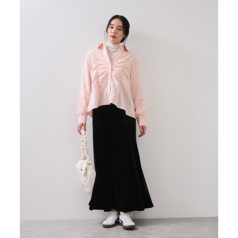 フロント、バックともにギャザー切替を入れを入れておりスタイルアップを叶えます。