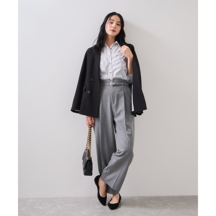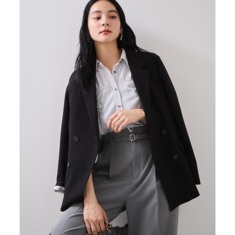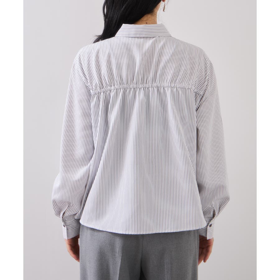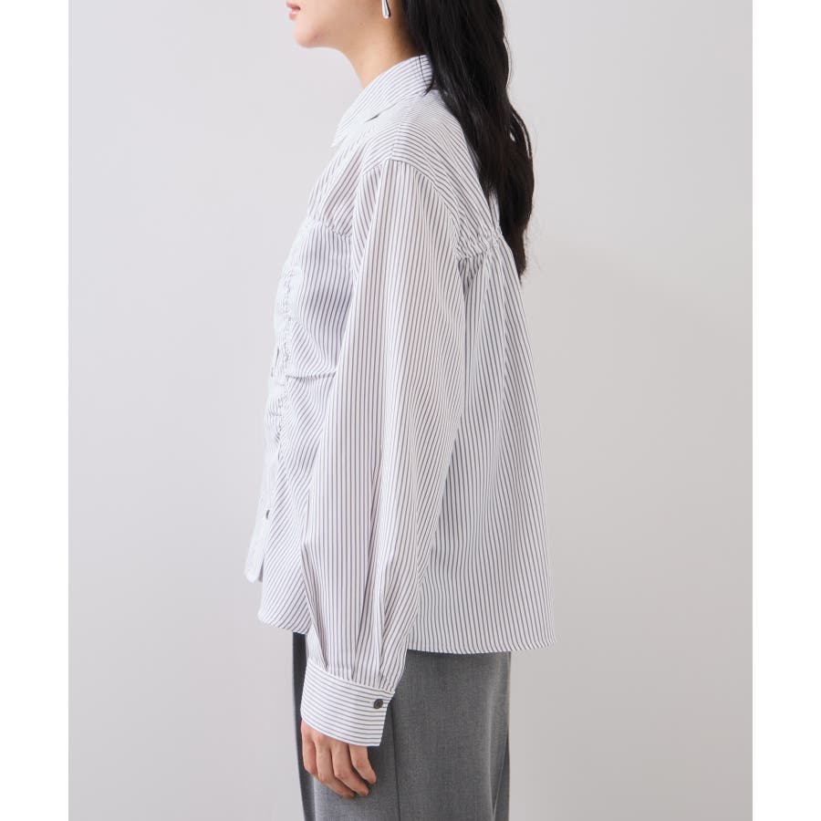 バックのゴムギャザーは程よくシェイプしながらもコンパクトめなシルエット。フロントを閉めて決まるデザインですが開けて羽織としても◎。