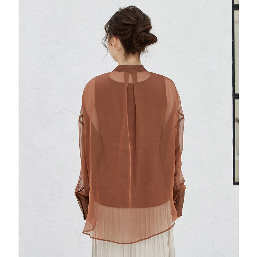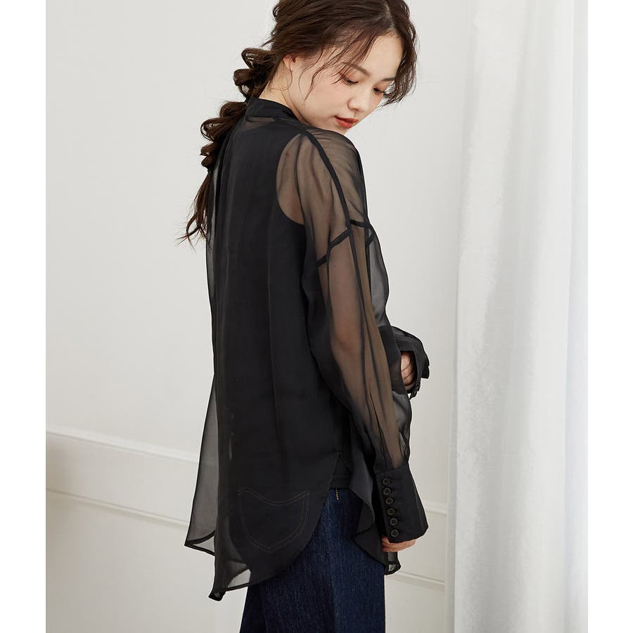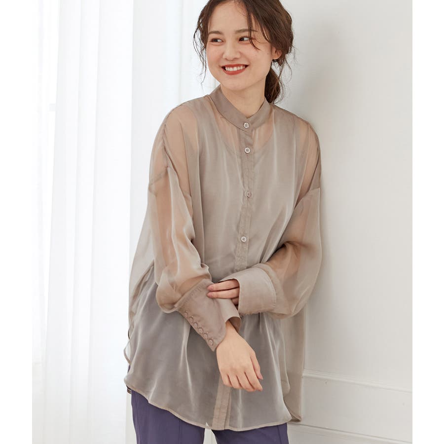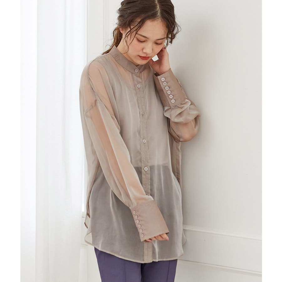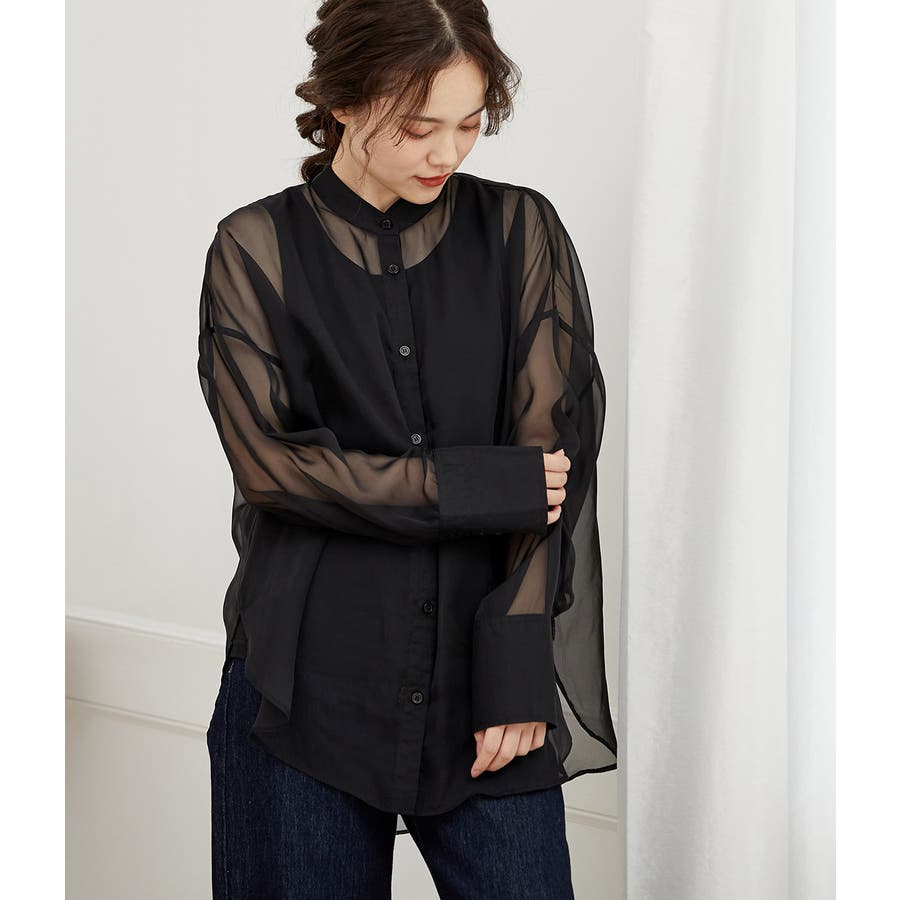 モードな雰囲気で着こなせる、シアーな素材を使ったバンドカラーシャツがお目見え。 インに重ねるタンクトップ付きで、それぞれ単品で着まわせるのもグッド。 身体を包み込むビッグシルエットで、モダンなルックを演出します。 ヒップを覆うレングスは、パンツ合わせにも最適。 今期のトレンドのシアーデザインは1枚は持っておきたいアイテムです。