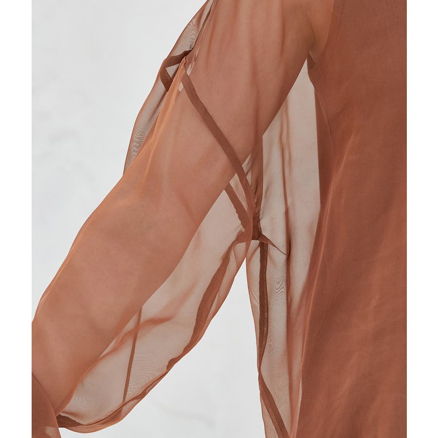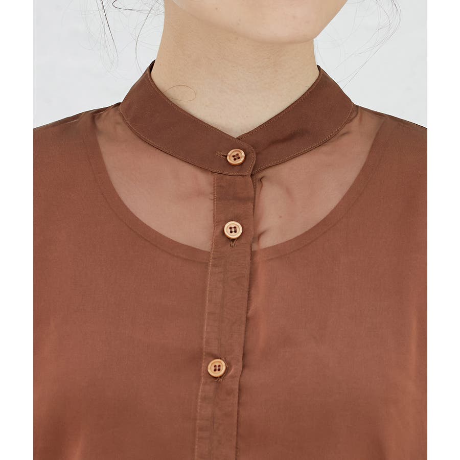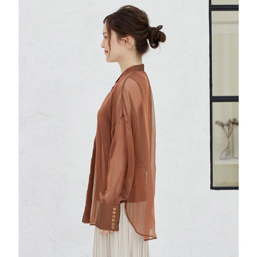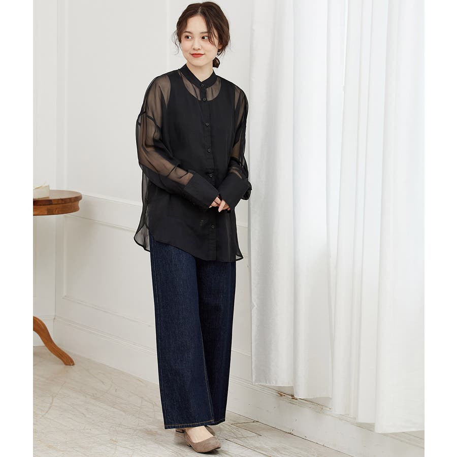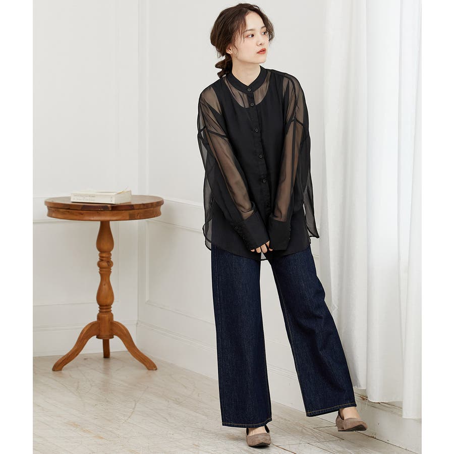 モードな雰囲気で着こなせる、シアーな素材を使ったバンドカラーシャツがお目見え。 インに重ねるタンクトップ付きで、それぞれ単品で着まわせるのもグッド。 身体を包み込むビッグシルエットで、モダンなルックを演出します。 ヒップを覆うレングスは、パンツ合わせにも最適。 今期のトレンドのシアーデザインは1枚は持っておきたいアイテムです。