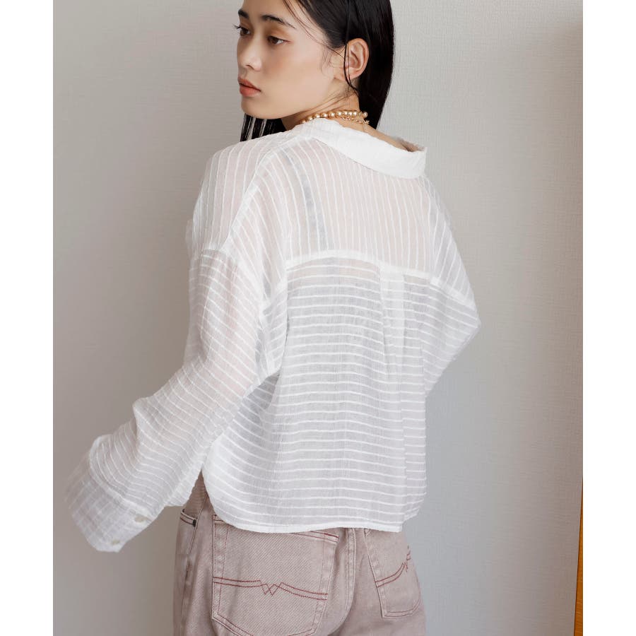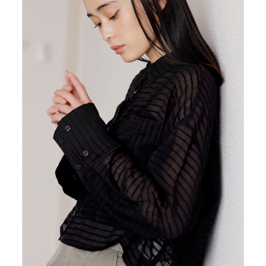 ◆2024-25 秋冬◆ 【デザイン・シルエット】 夏の暑さと秋感の共存を目指したこだわりのシアーシャツが登場。 程よく透けているので、暑い時期からも即戦力として使えるアイテムです。 袖も太目に作られているので肌にまとわりつかず快適に着用頂ける一枚です。