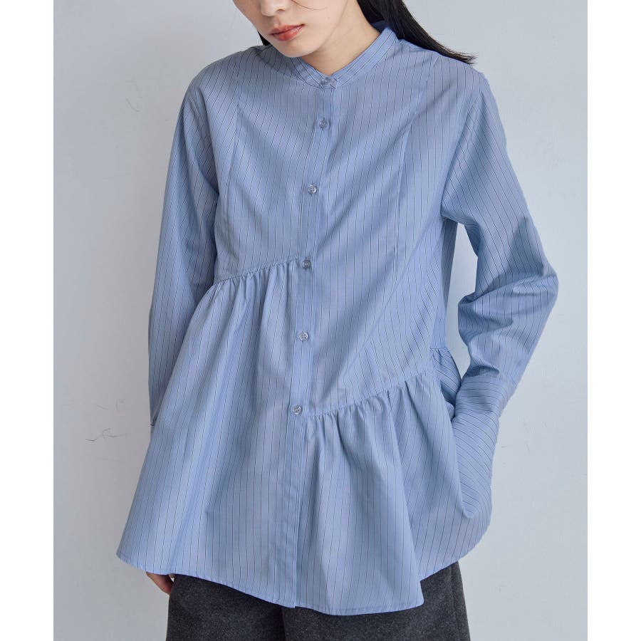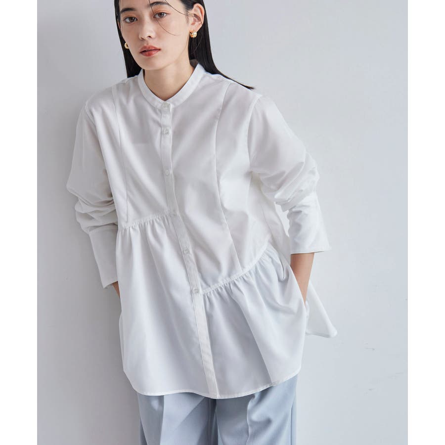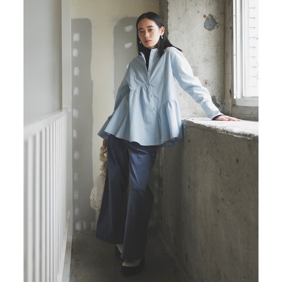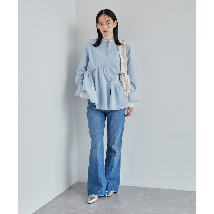 ◆2024-25秋冬◆ 【デザイン・シルエット】 アシンメトリーの切り替えデザインが華やかに見せてくれるフレアシルエットシャツ
