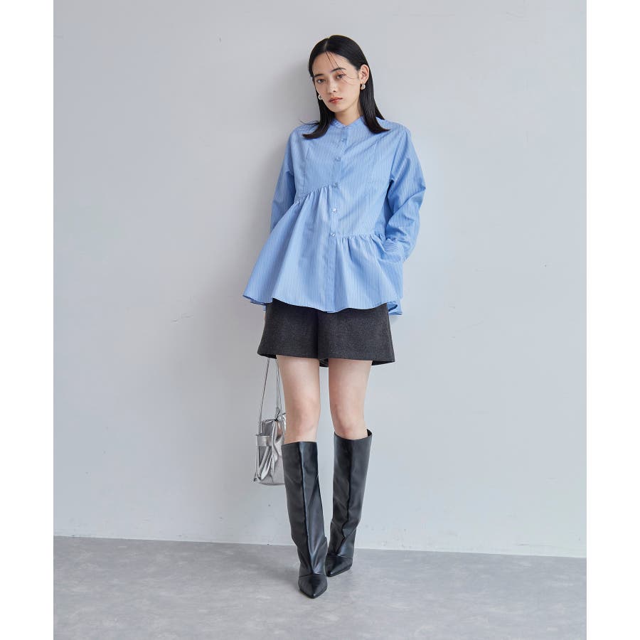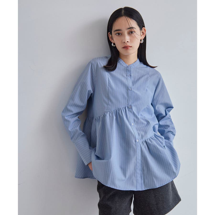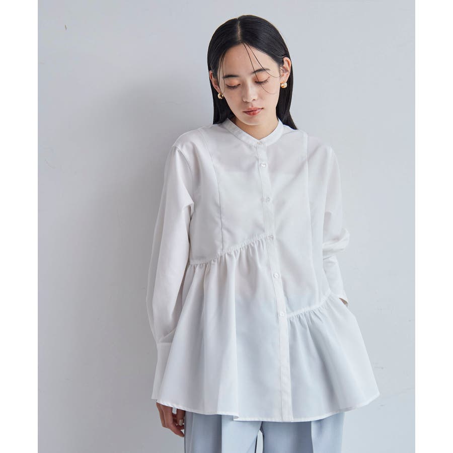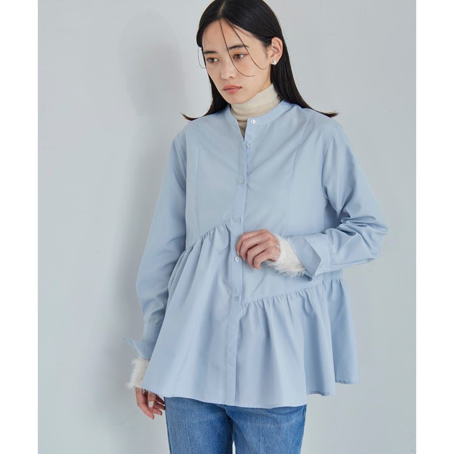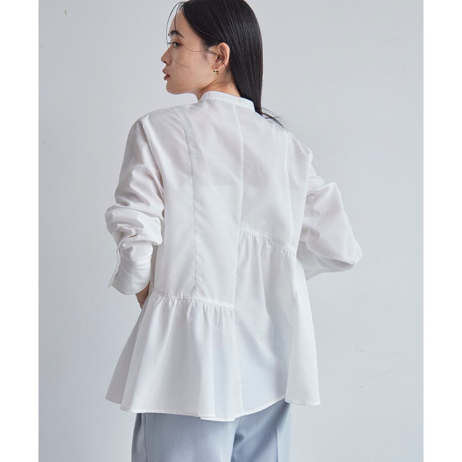 ◆2024-25秋冬◆ 【デザイン・シルエット】 アシンメトリーの切り替えデザインが華やかに見せてくれるフレアシルエットシャツ