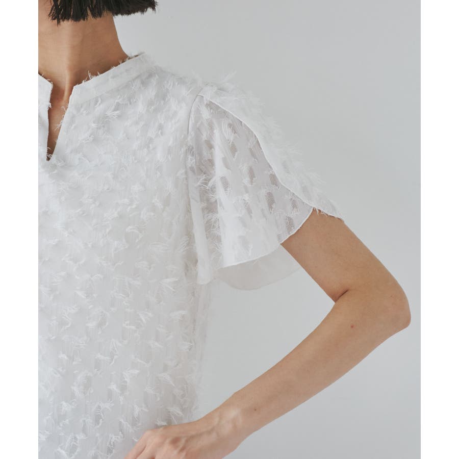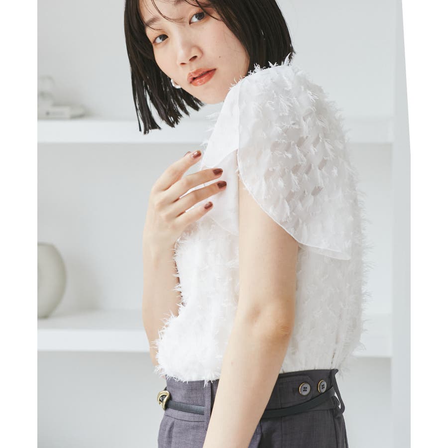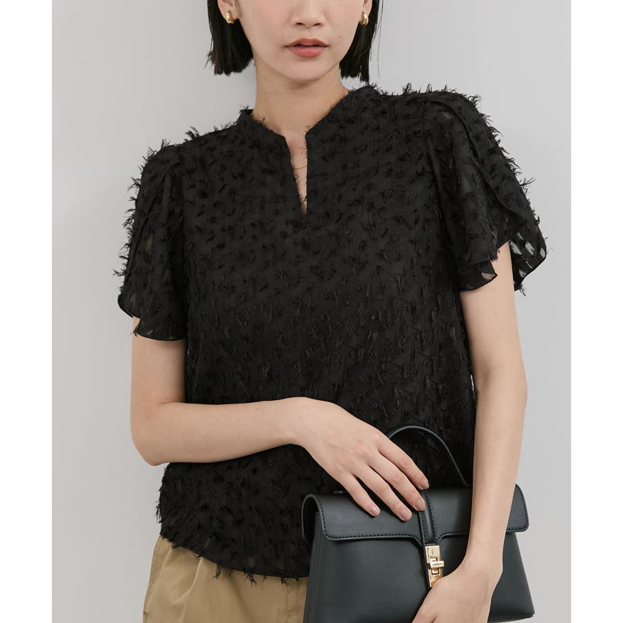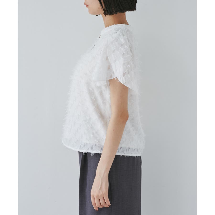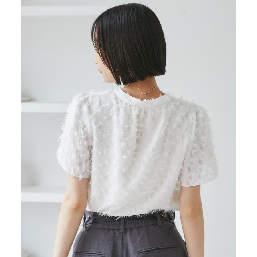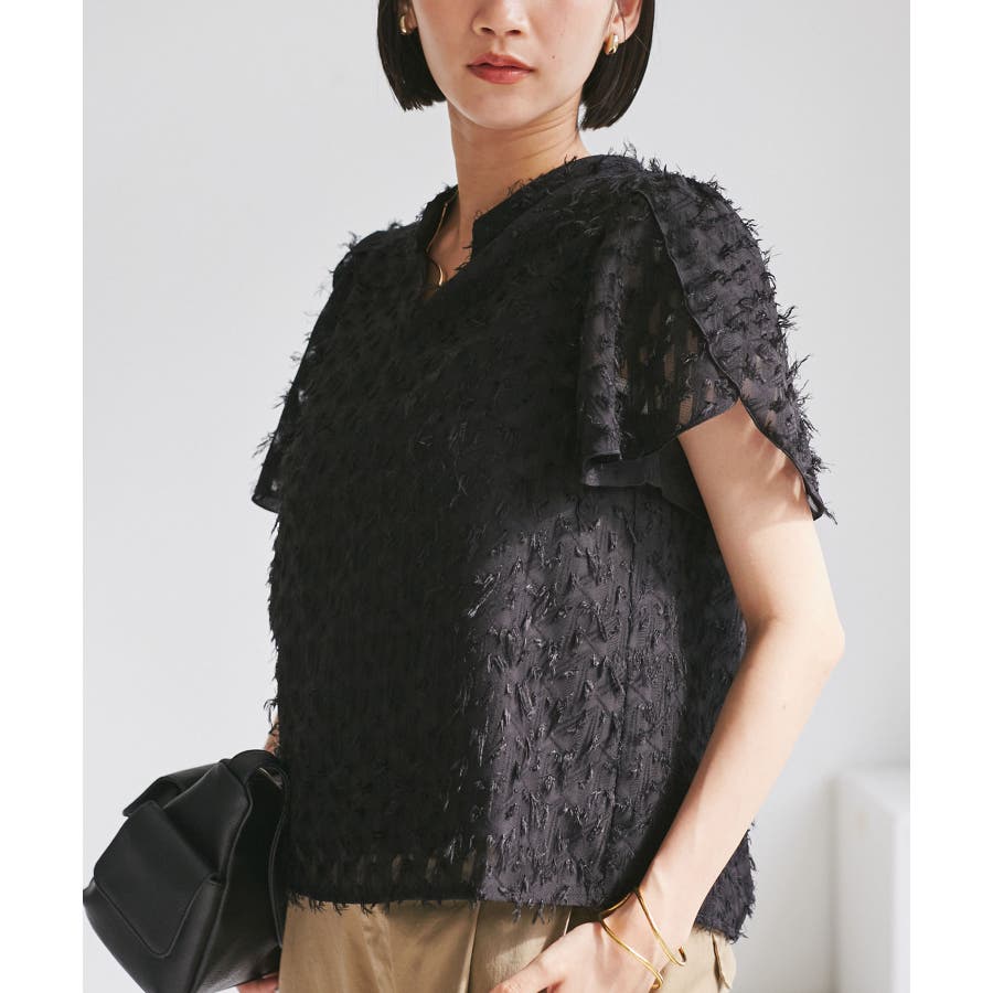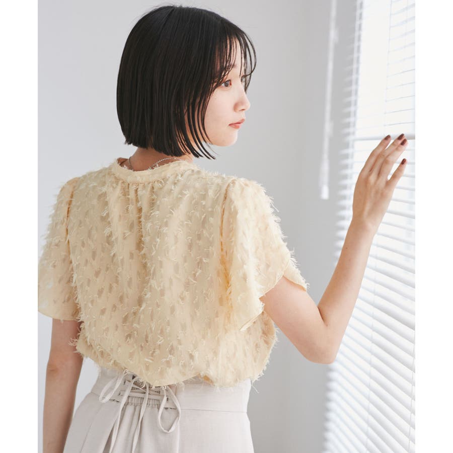 ・フリンジカットジャカード素材がポイントのプルオーバータイプのブラウス