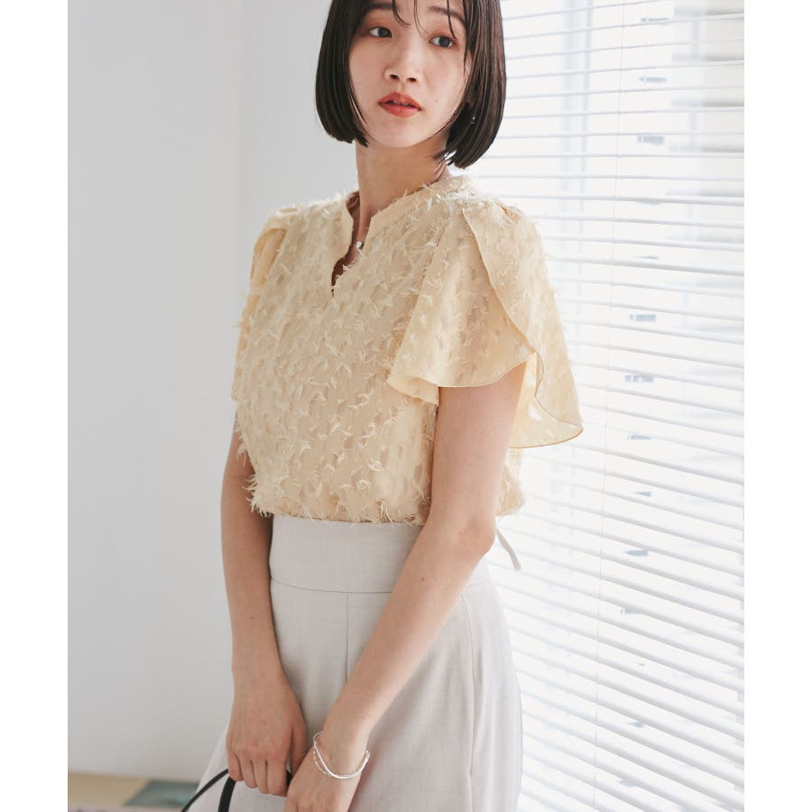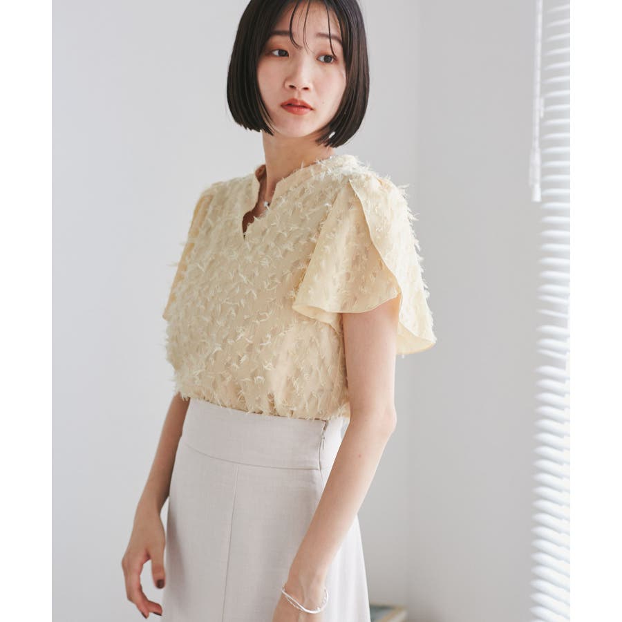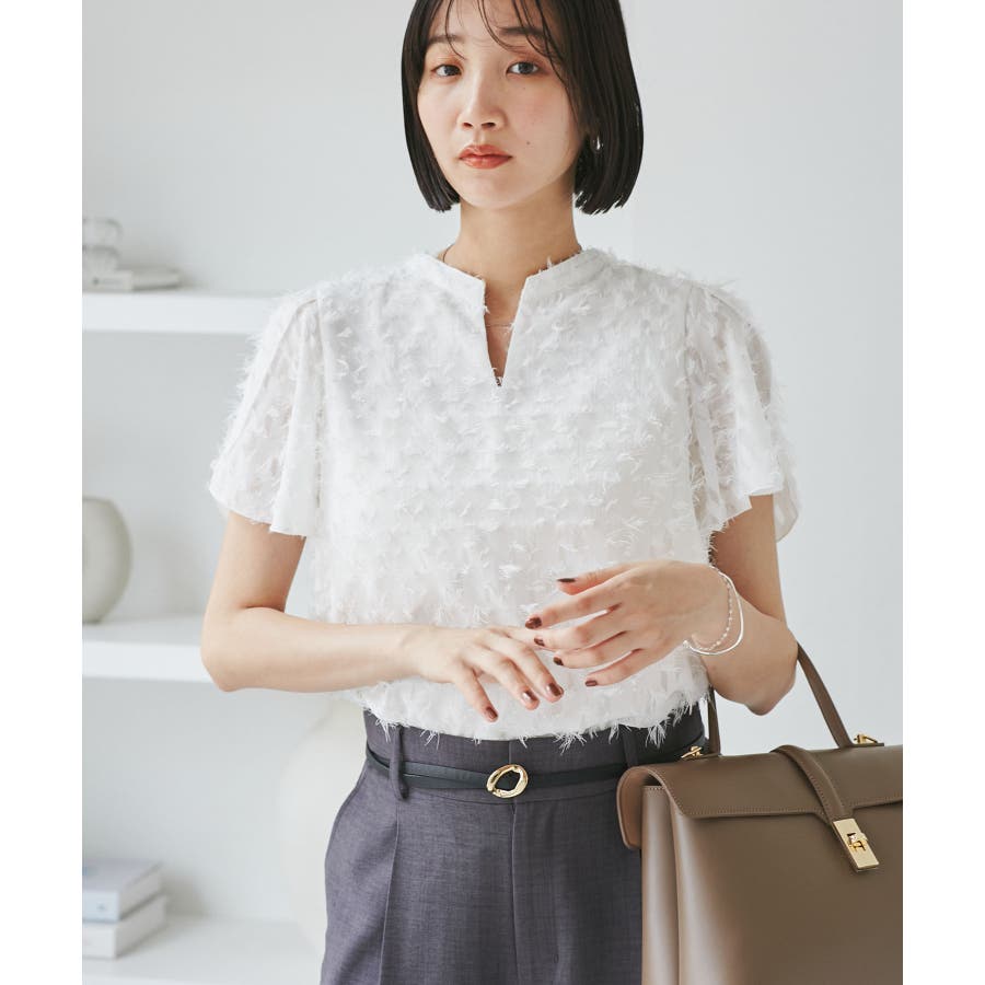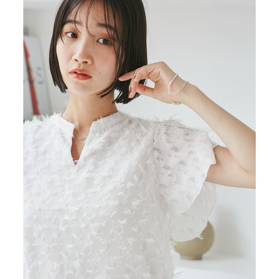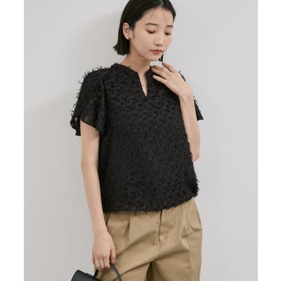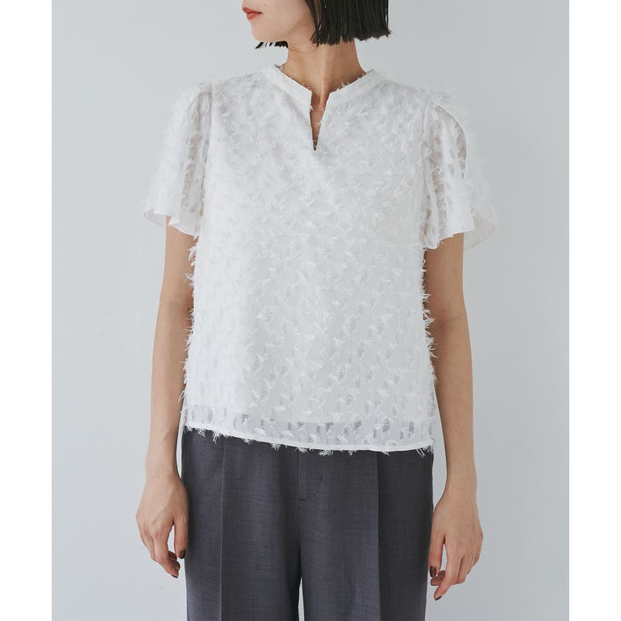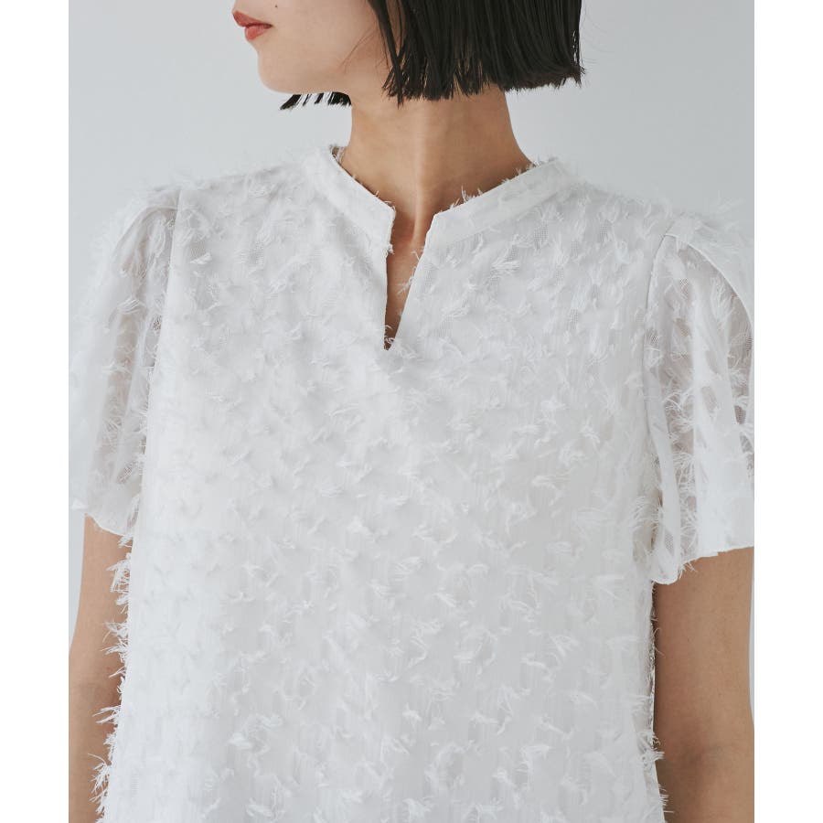 ・フリンジカットジャカード素材がポイントのプルオーバータイプのブラウス