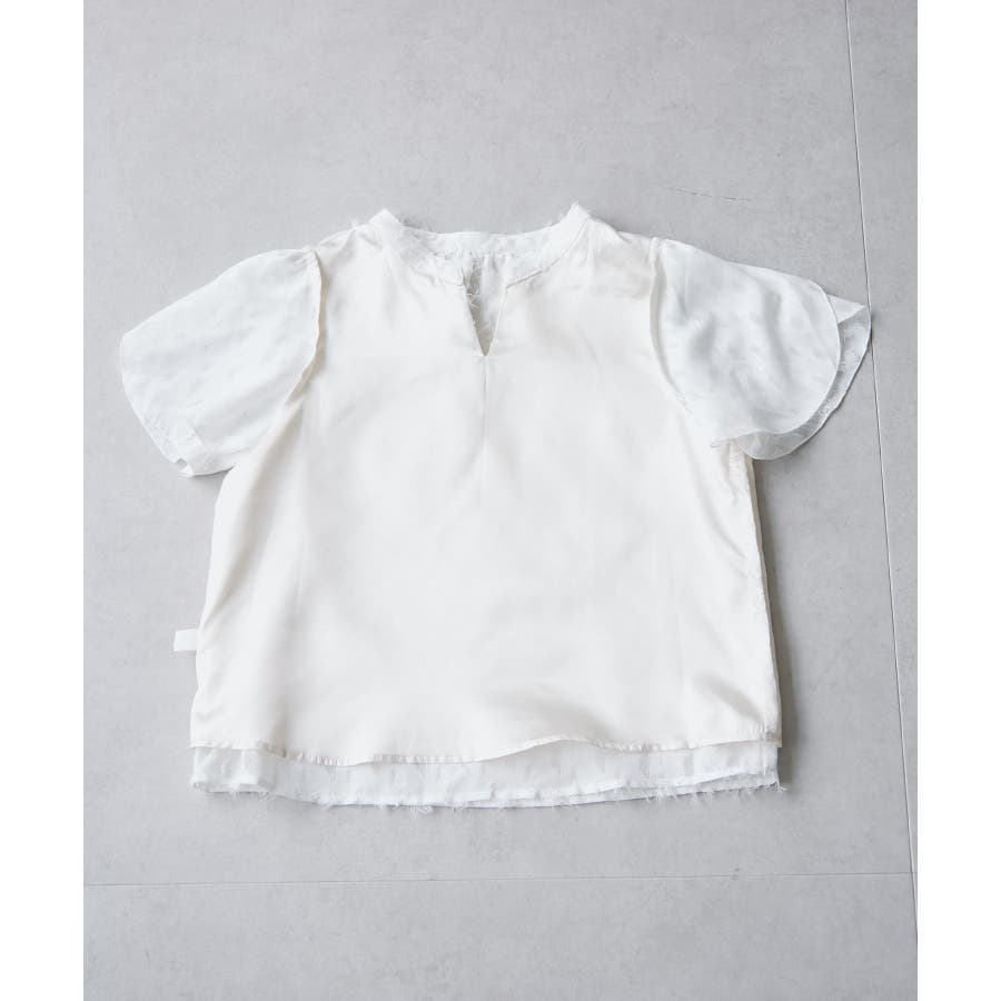 袖は花びらのように重なったチューリップスリーブで女性らしいデザイン。気になる肩や二の腕をさりげなくカバー◎