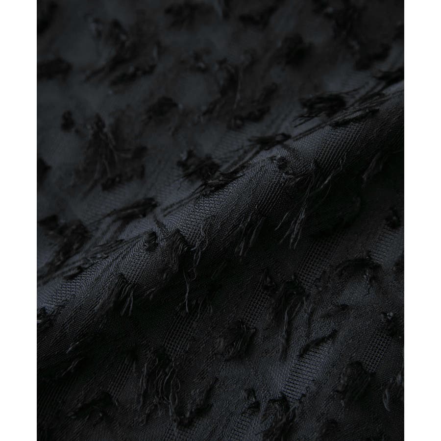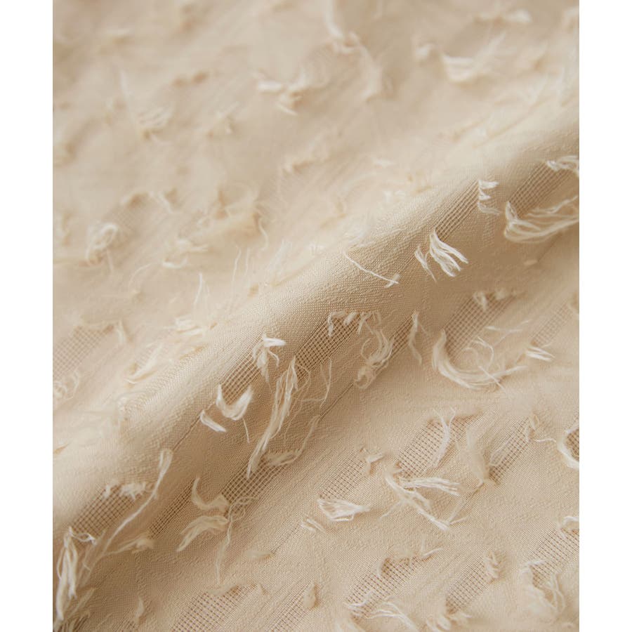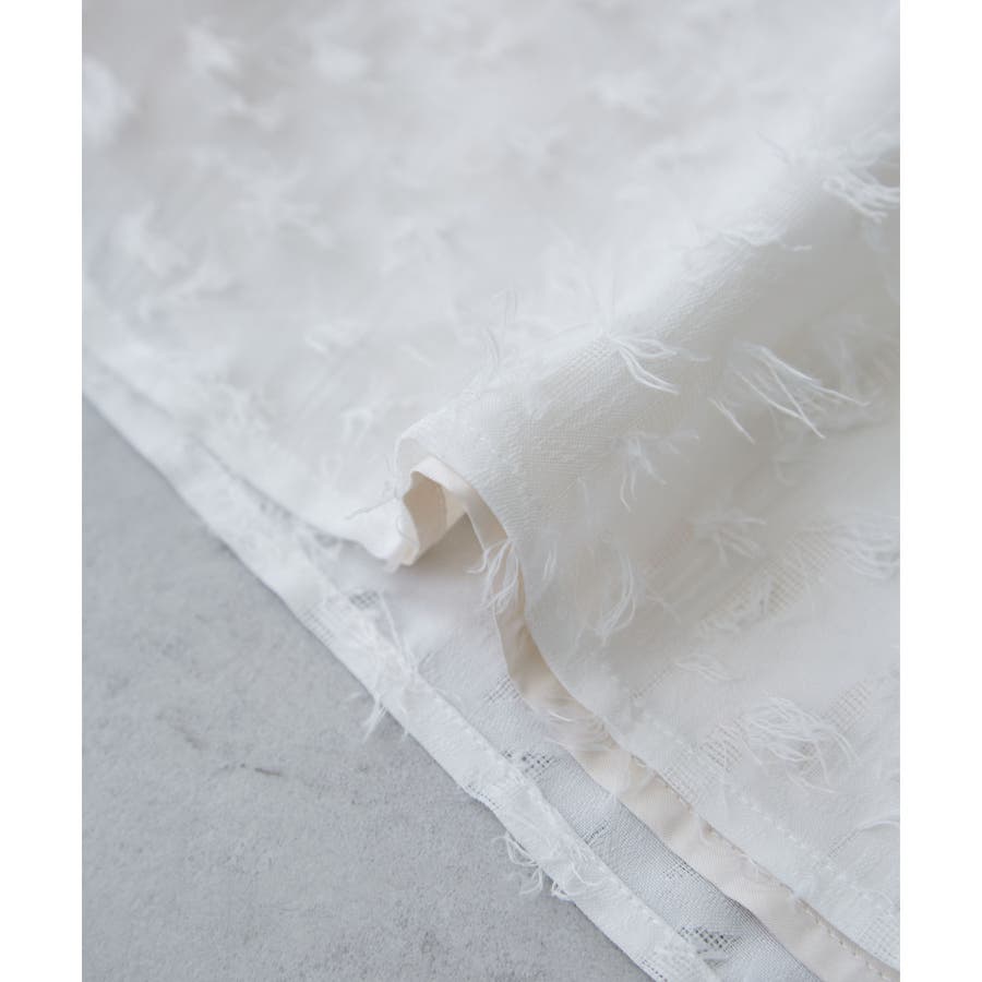 毛足のある薄手のカットジャカード素材。裏地付きでインナーの透け感を気にせずご着用いただけます。しつこい残暑にフリンジで秋の予感を感じられるアイテムです。