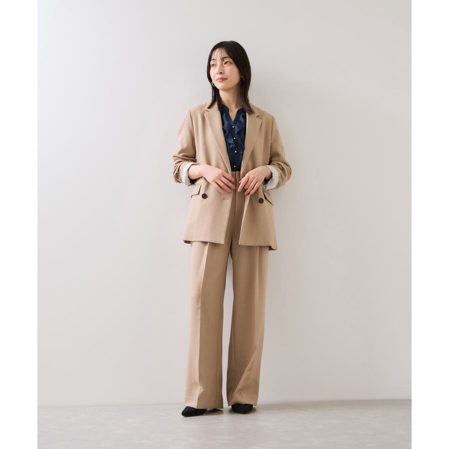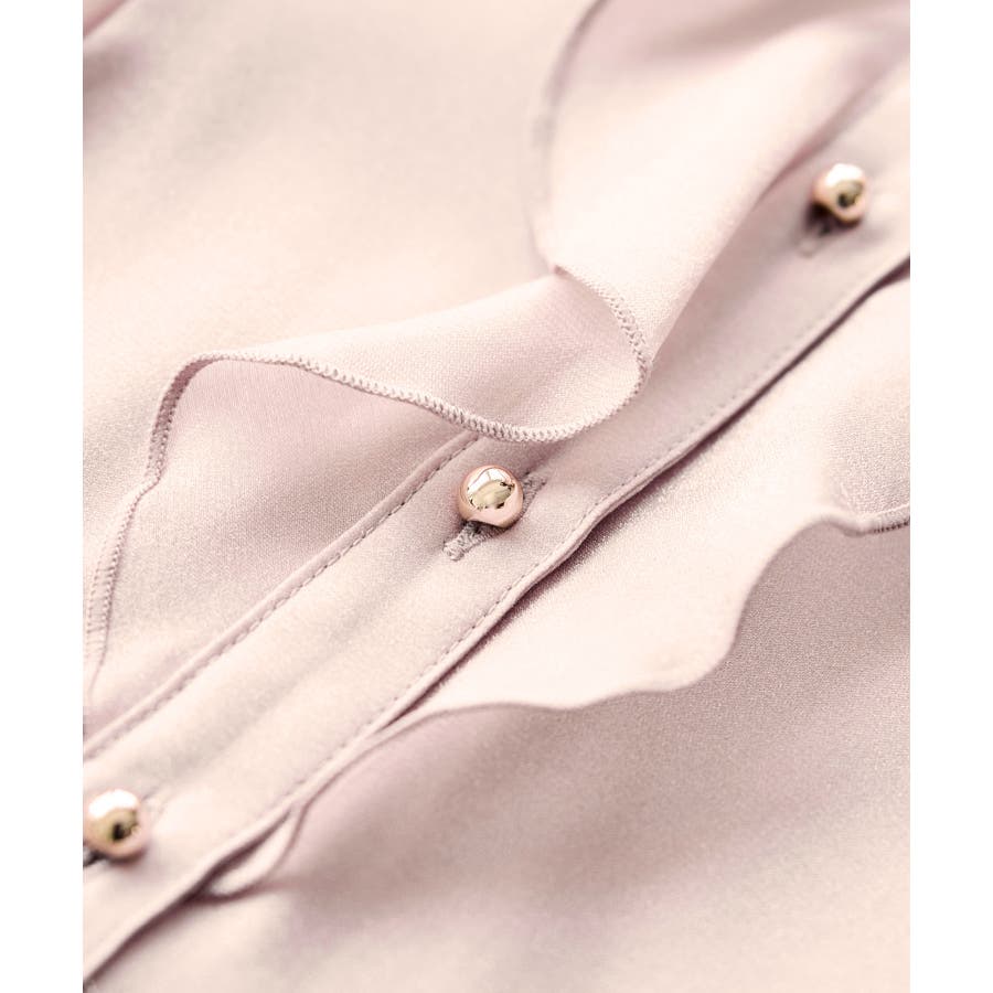 ・顔回りを華やかに演出してくれるラッフルディティール。ウエストはすっきりとしたシルエットにすることで、フロントラッフルの華やかさに視線が集中し、スタイルアップして見せてくれます。