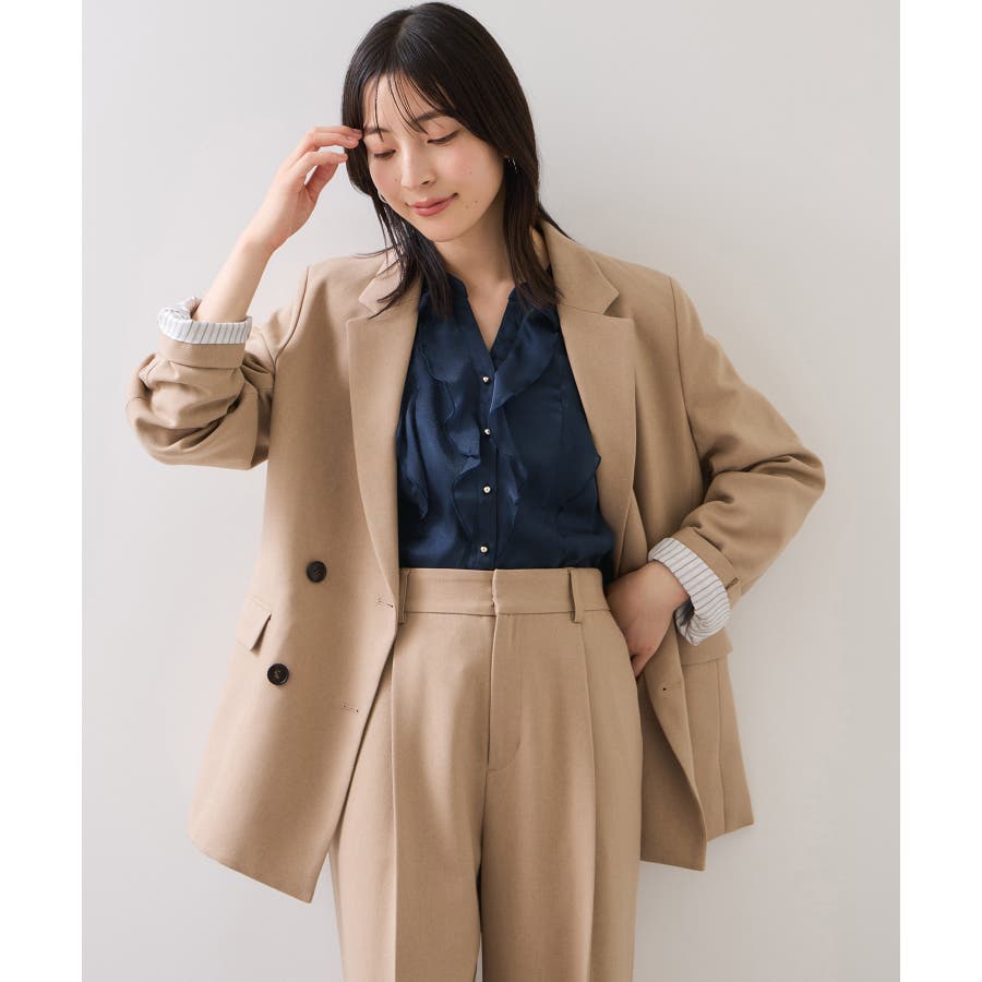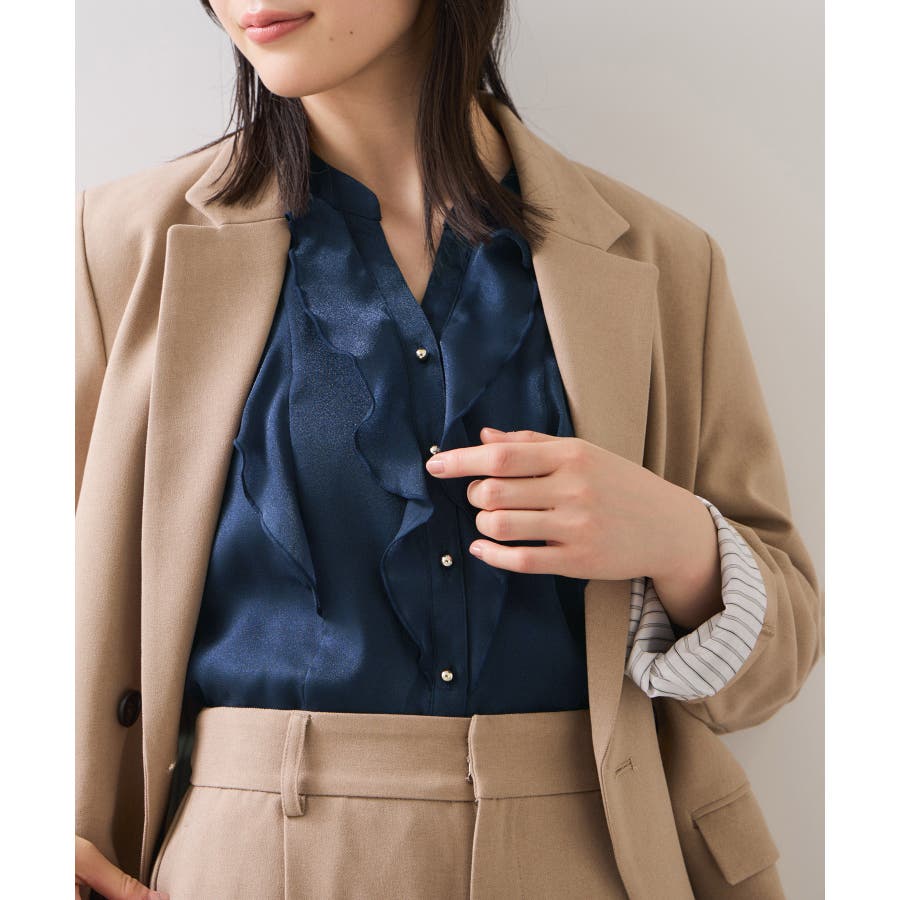 ※前回好評だったアシアーラッフルブラウス(品番:BVH35060)と同型。新色でネイビー(40)が登場。