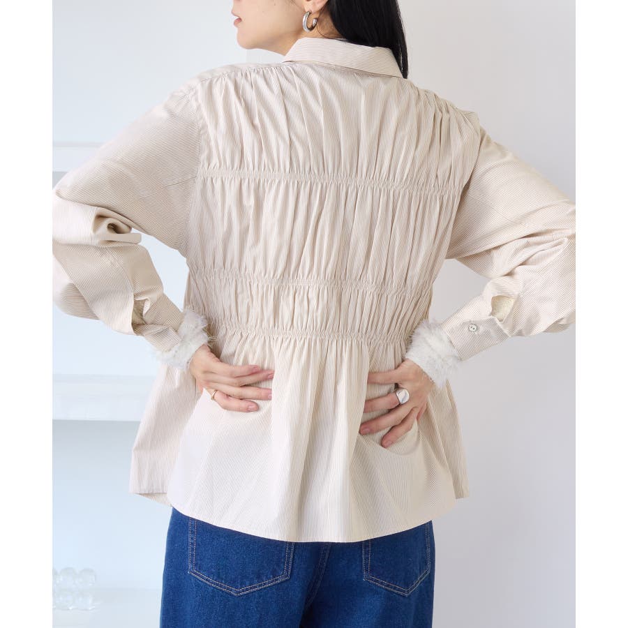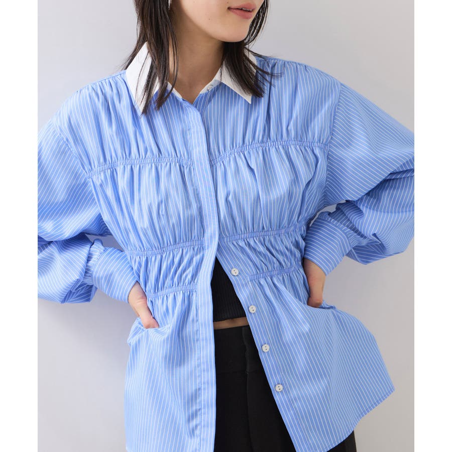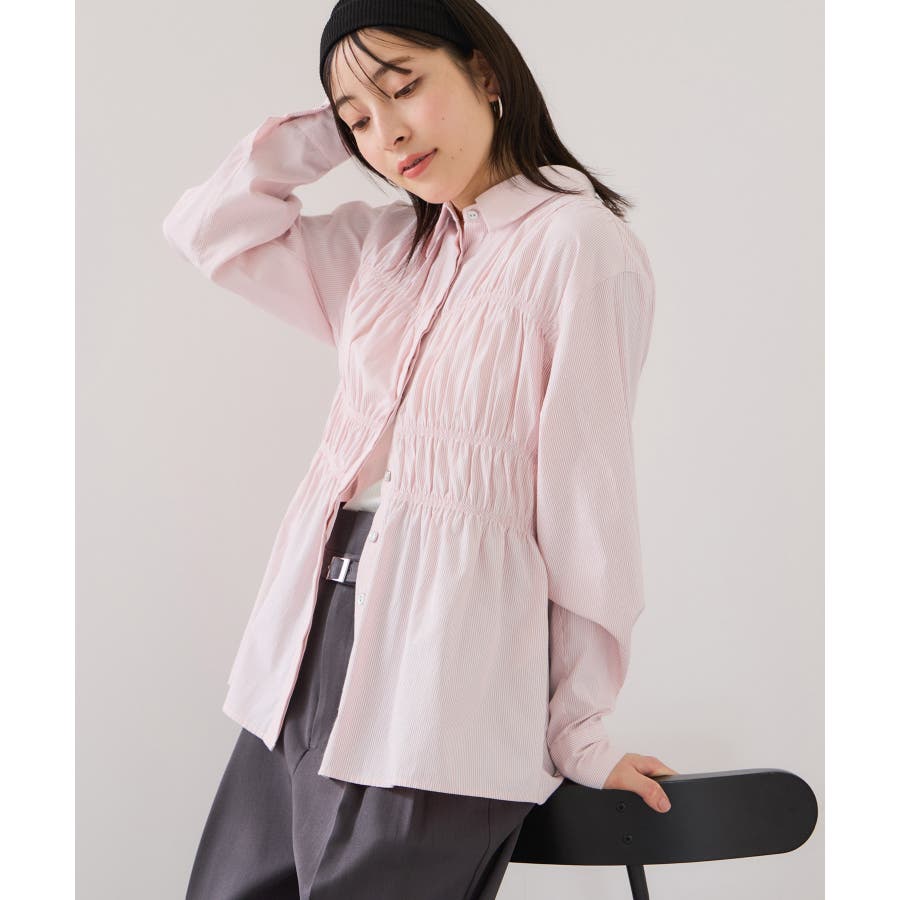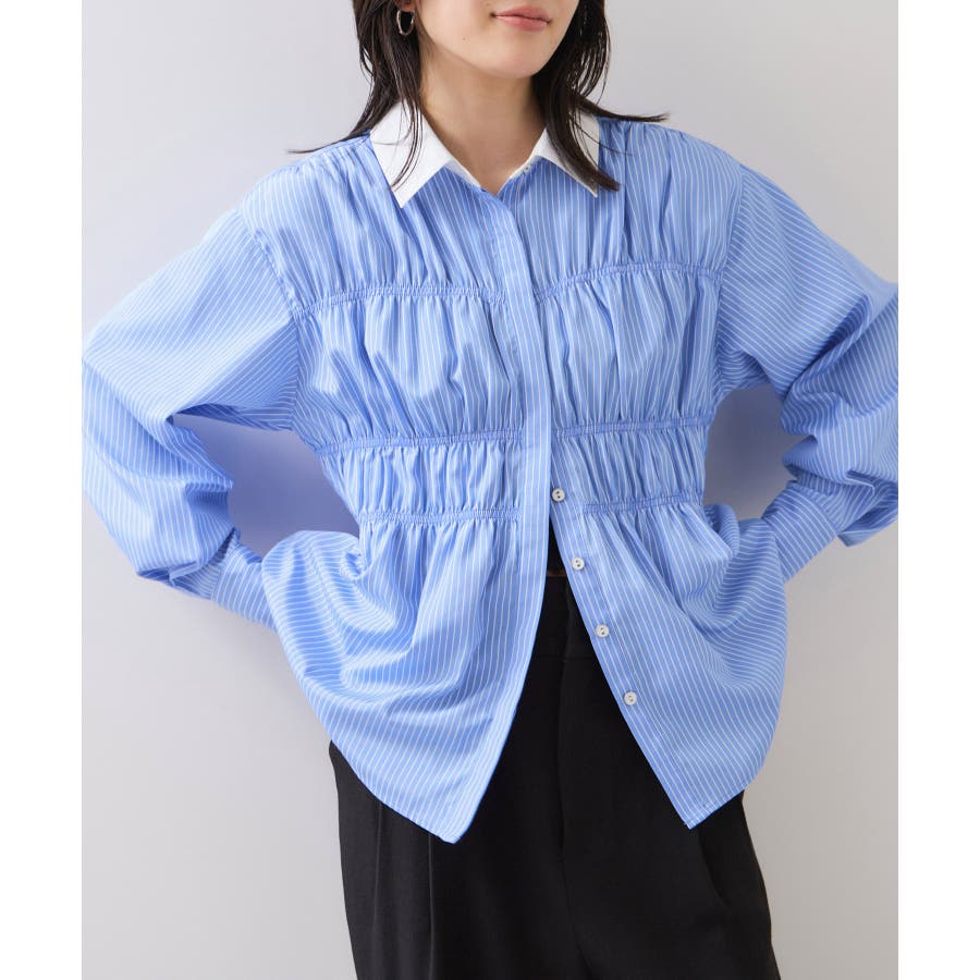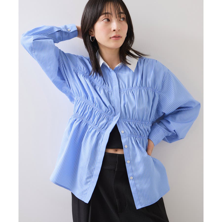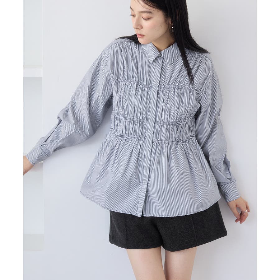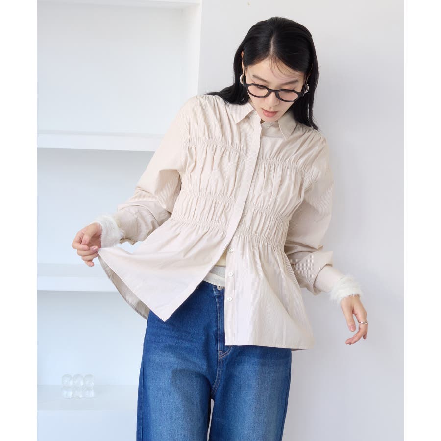 シャーリングデザインシャツ