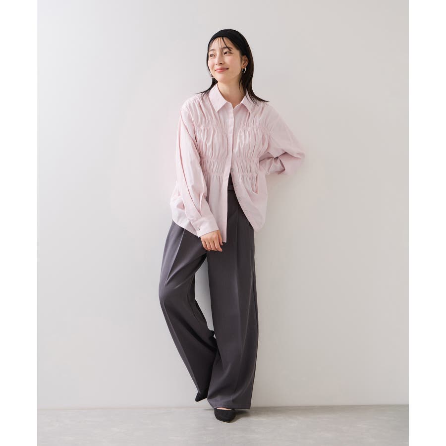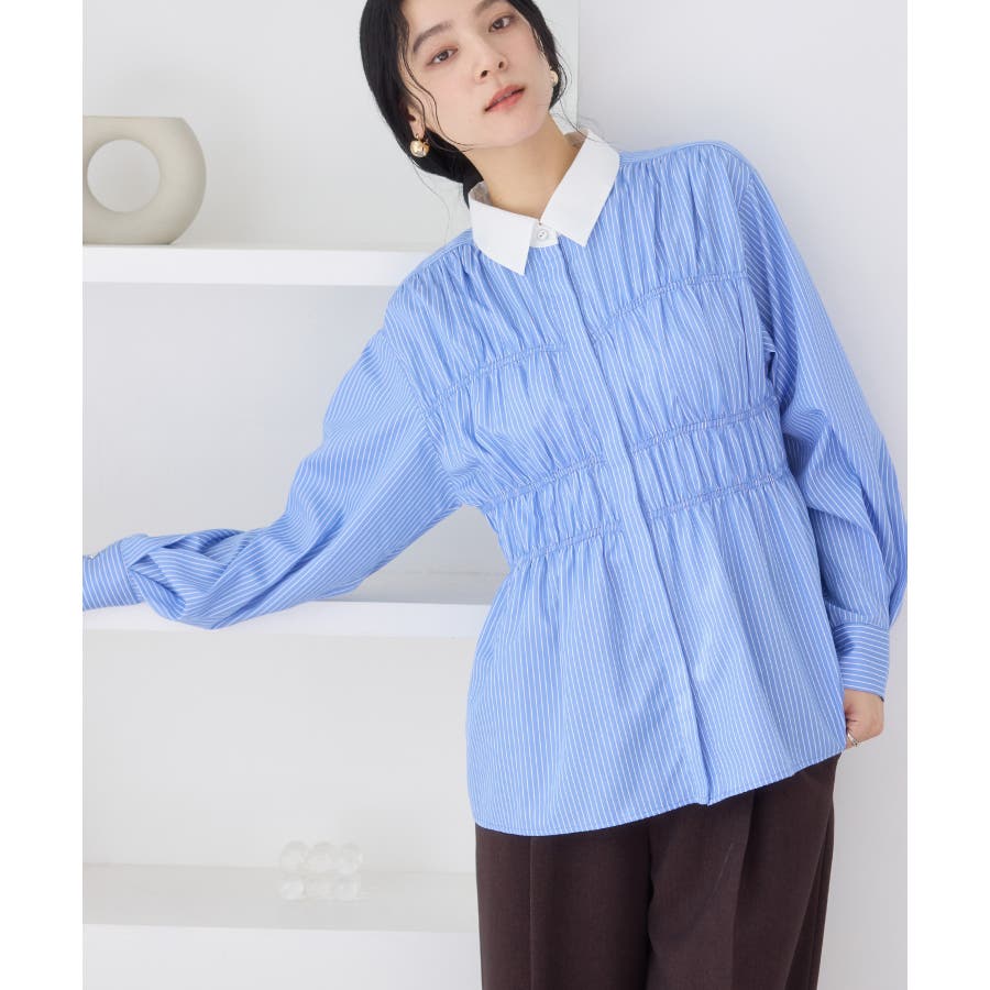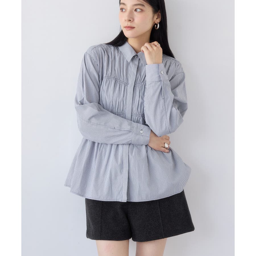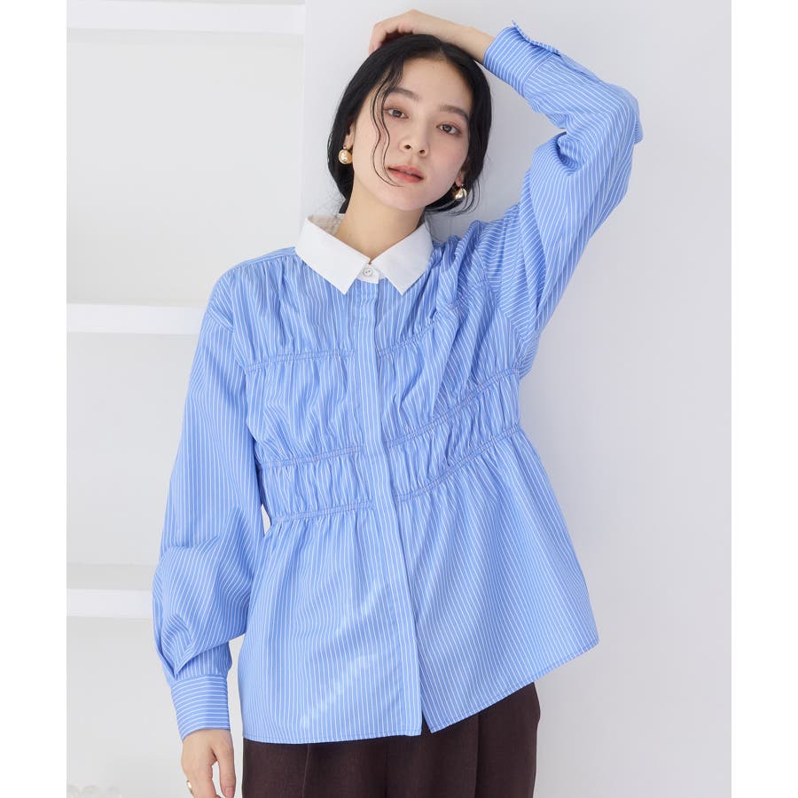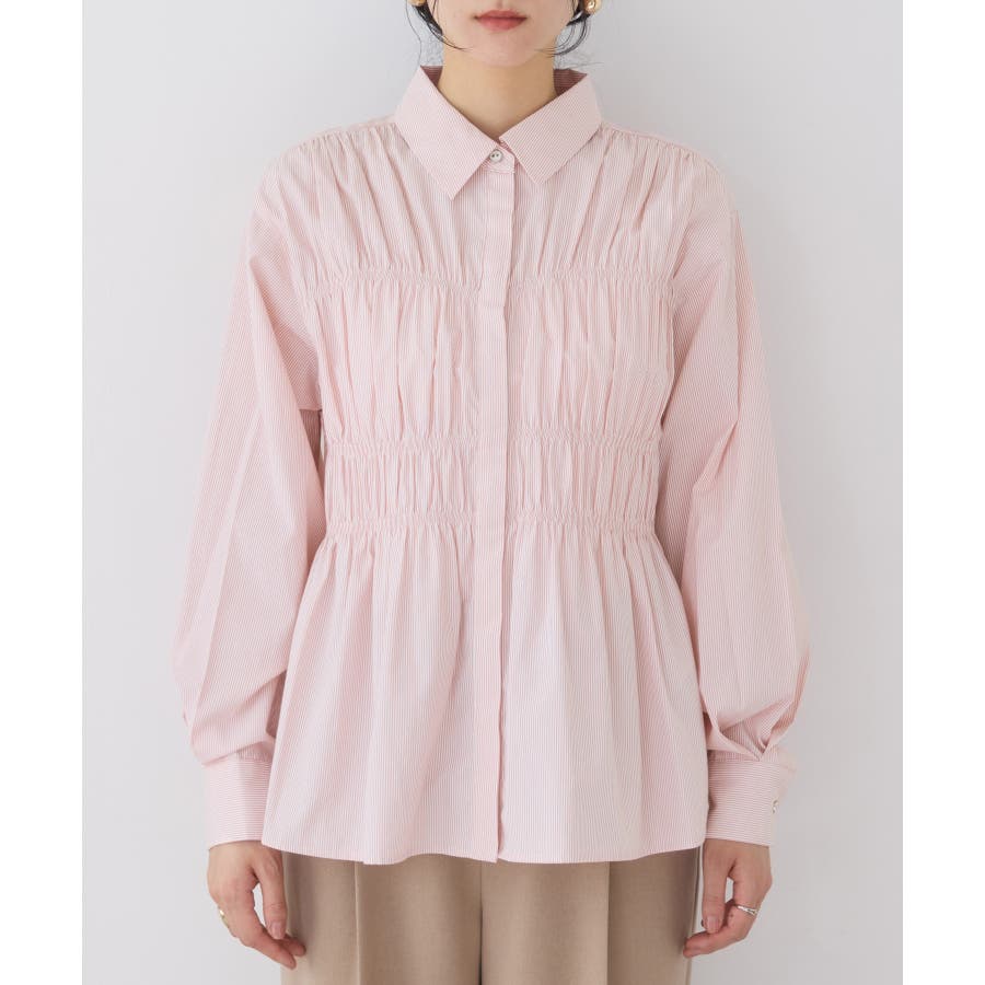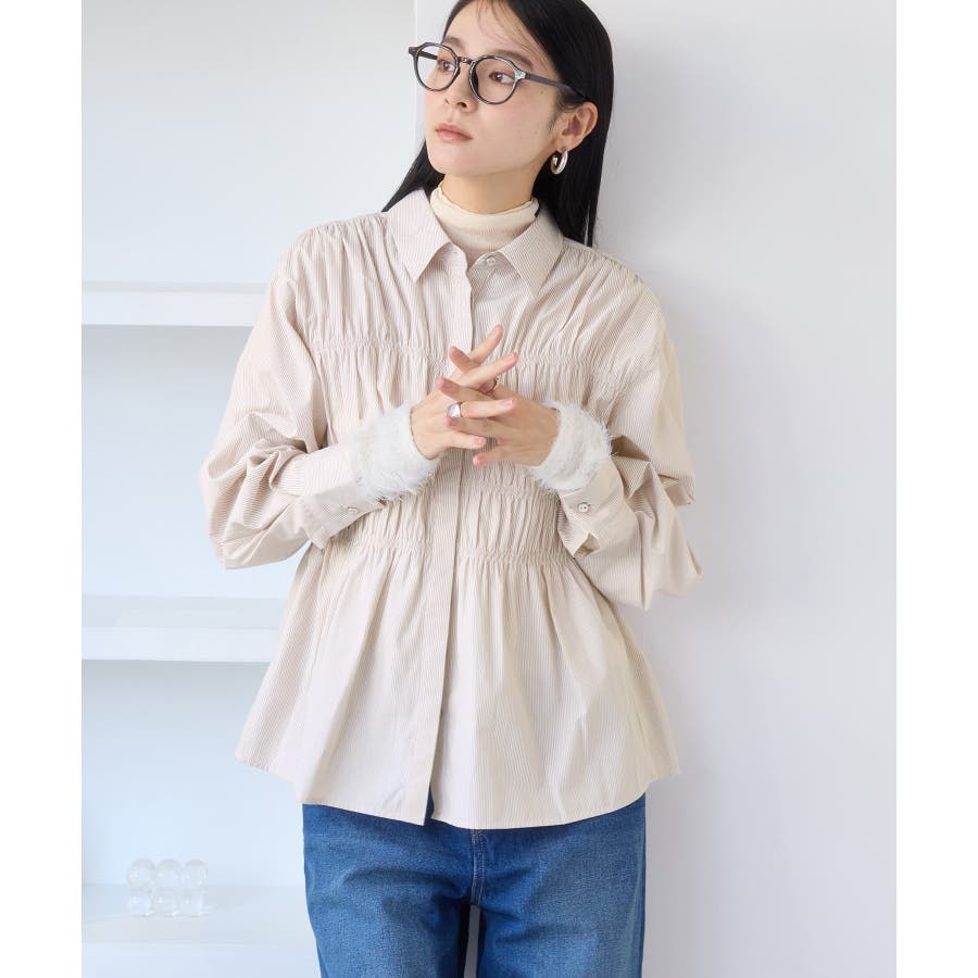 シャーリングデザインシャツ
