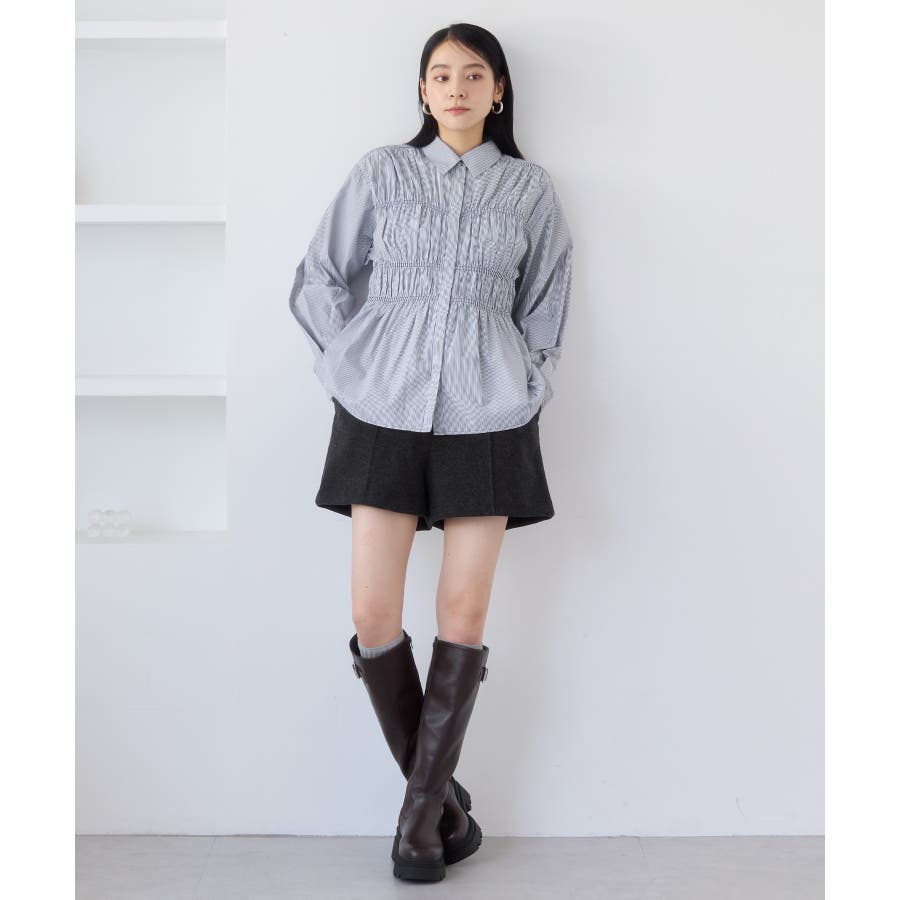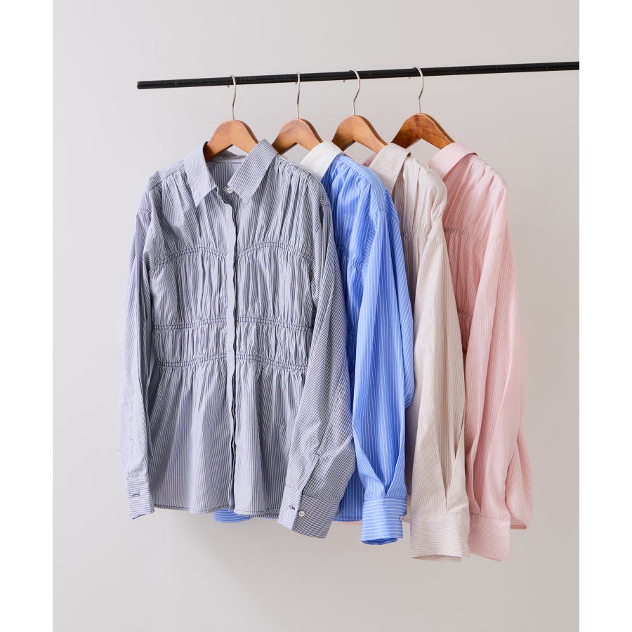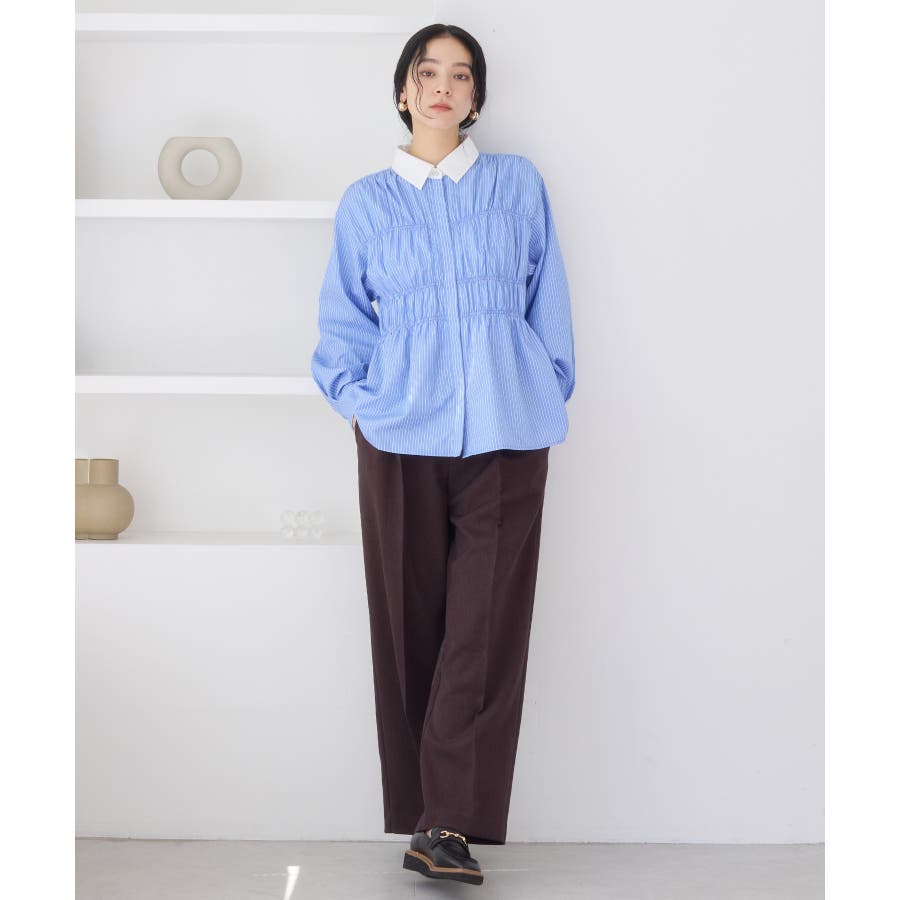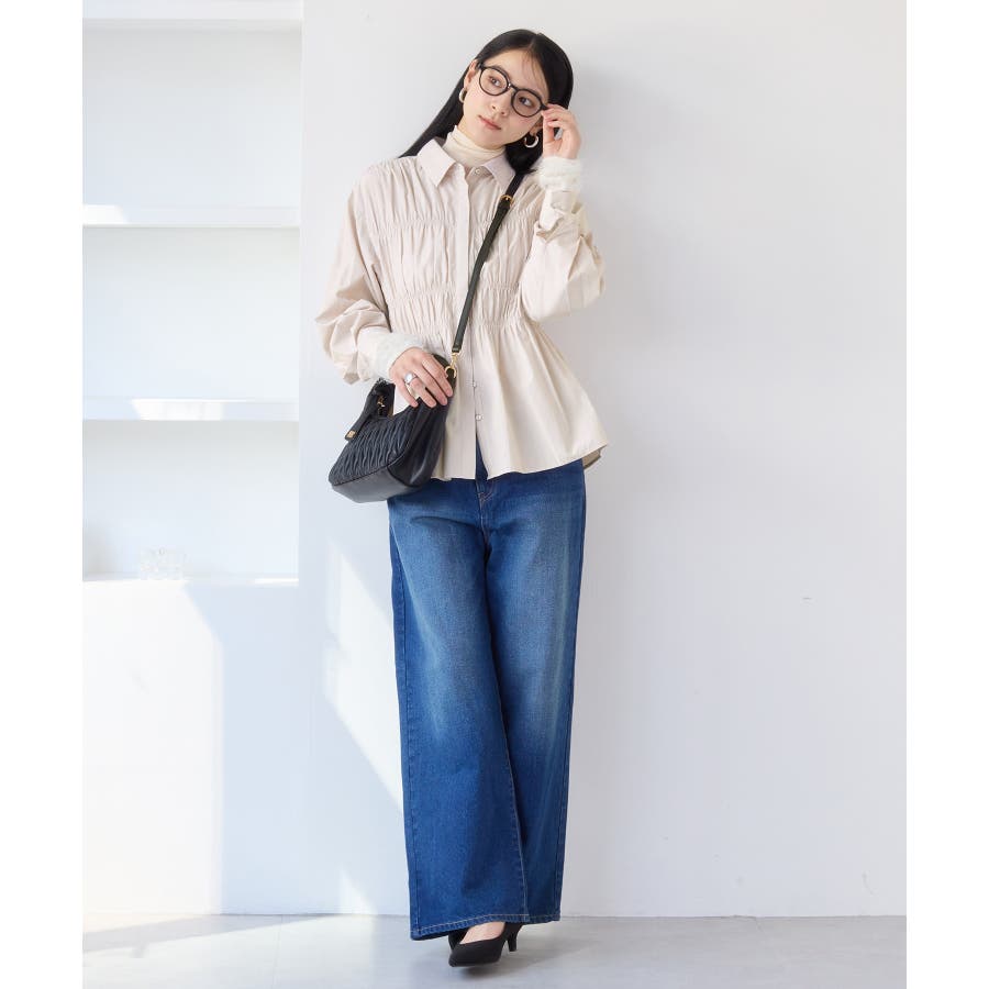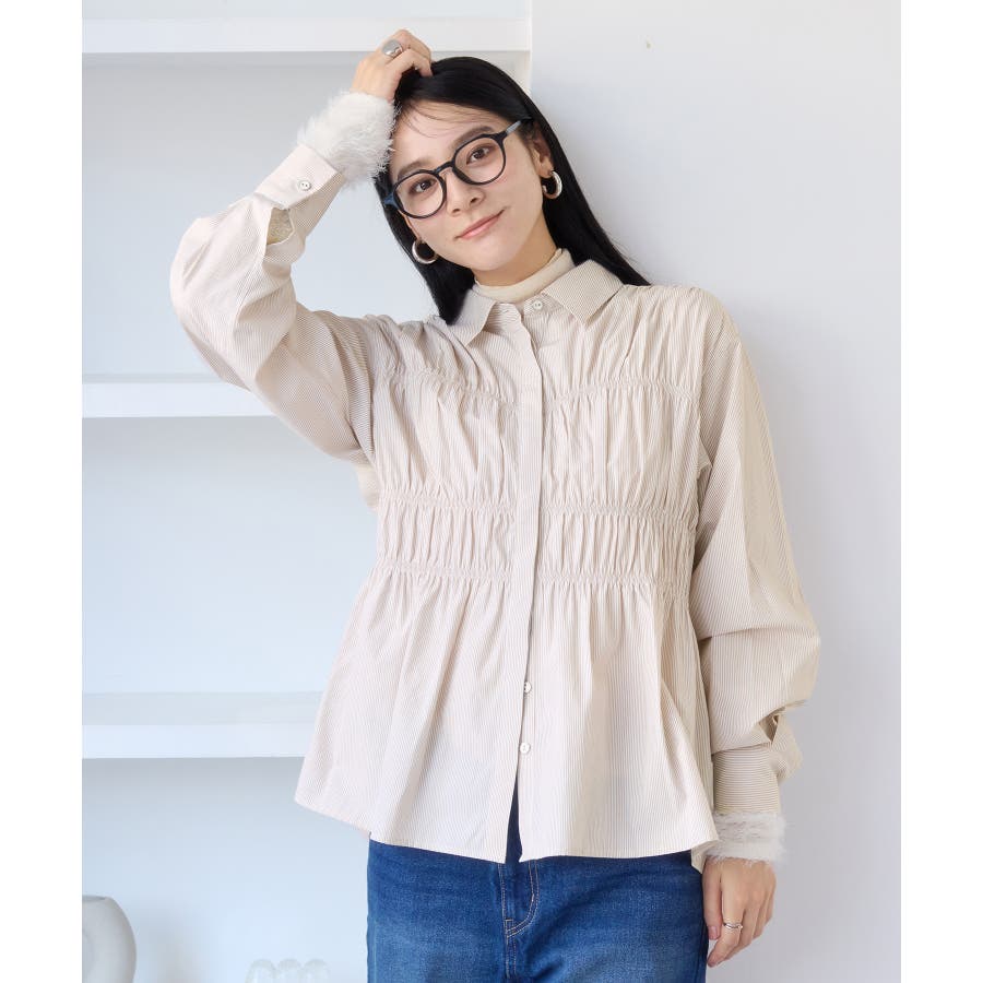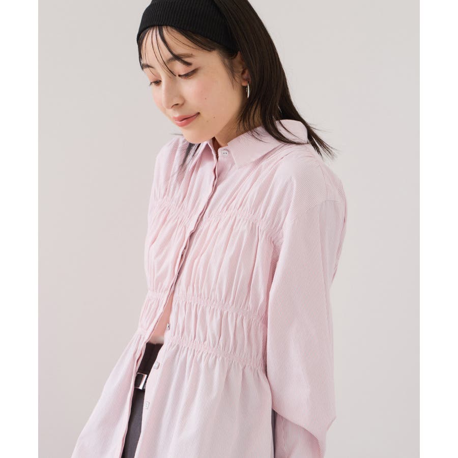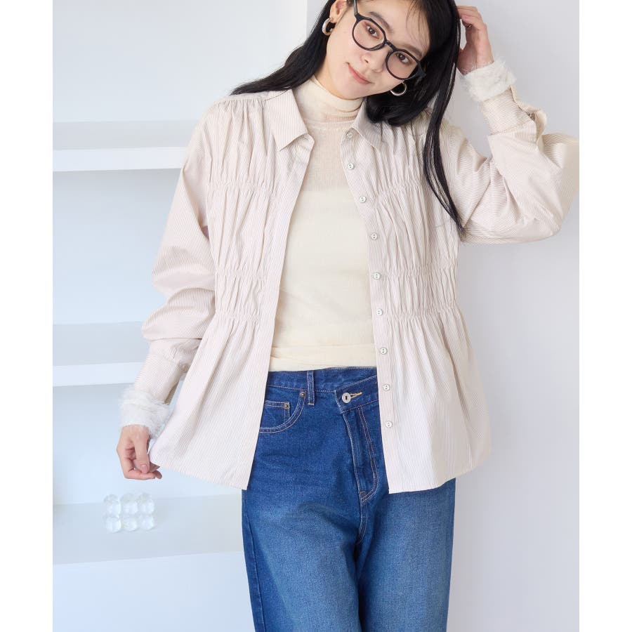 シャーリングデザインシャツ