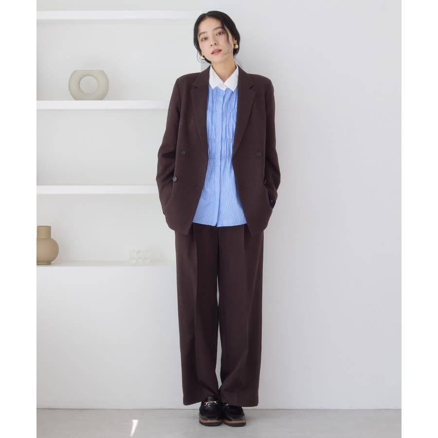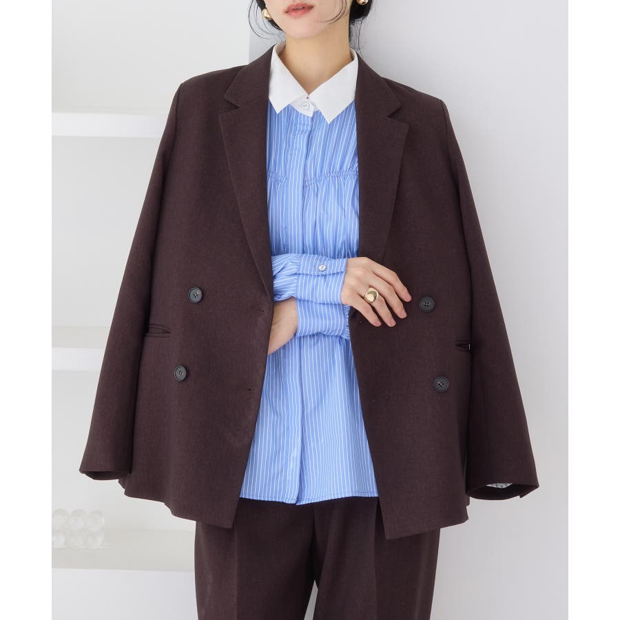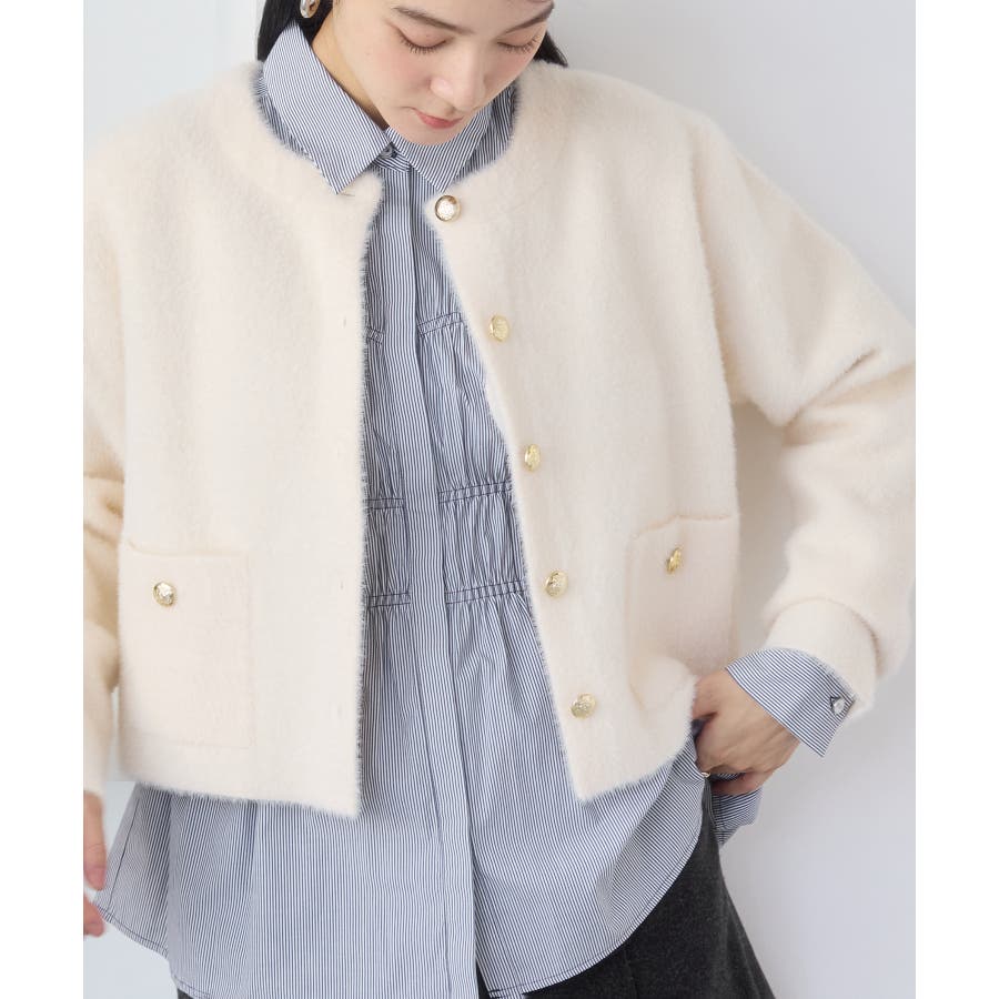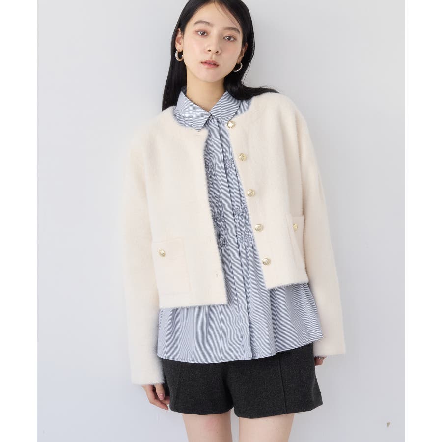 その他の色は衿もすべて同じ生地の展開で、シャープに着こなせるネイビーと柔らかく女性らしさを演出してくれるベージュとピンクの4色展開。