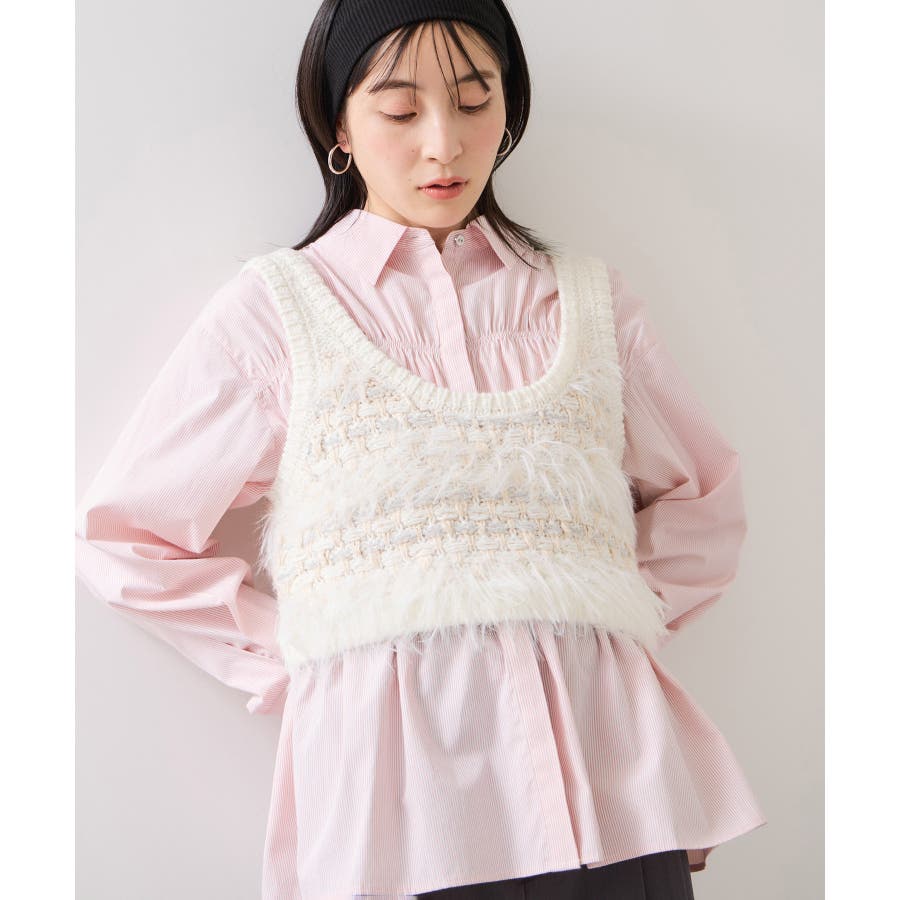・シャツを土台にビスチェ風のシャーリングを施した人気シリーズのデザインシャツです