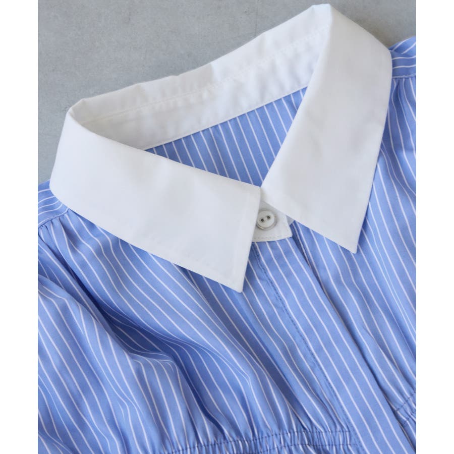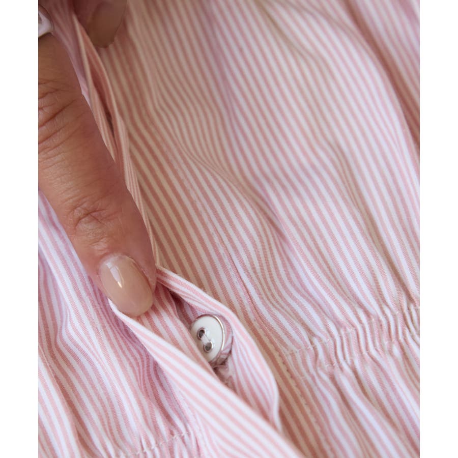 生地はシャーリングと相性が良いように、固すぎず、柔らかすぎないコシのあるシャツ生地です。