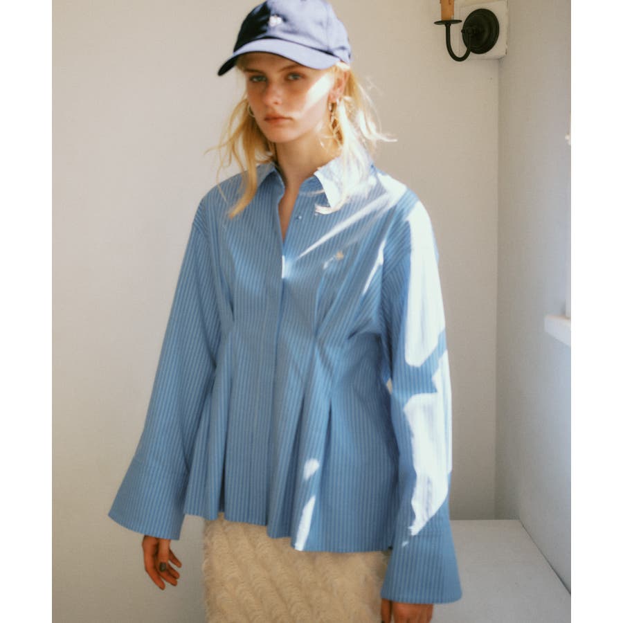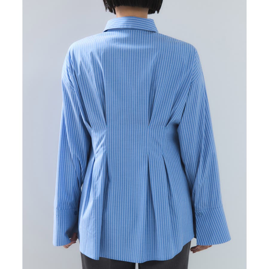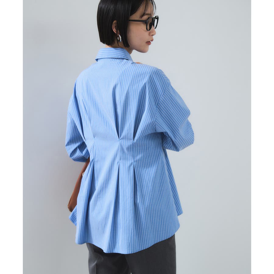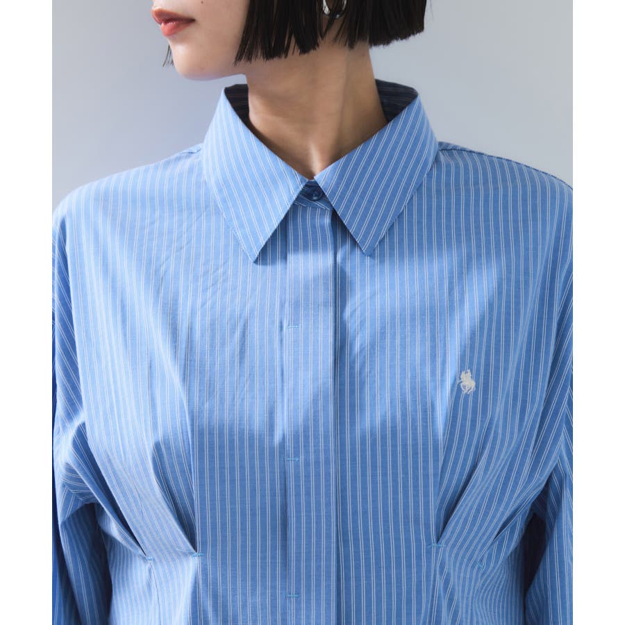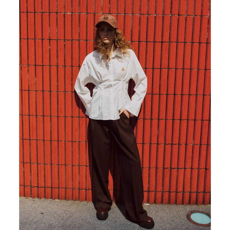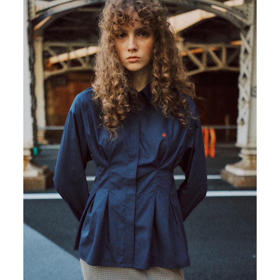 王道のシャツを着るだけで決まるものに仕上げるために、メンズライクなサイズ感のシャツにウエストタックをいれ体のラインを綺麗にみせてくれるデザインにしました。