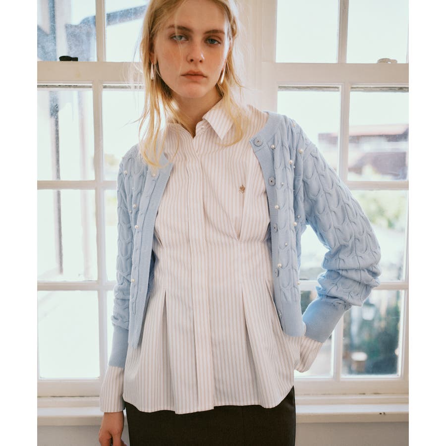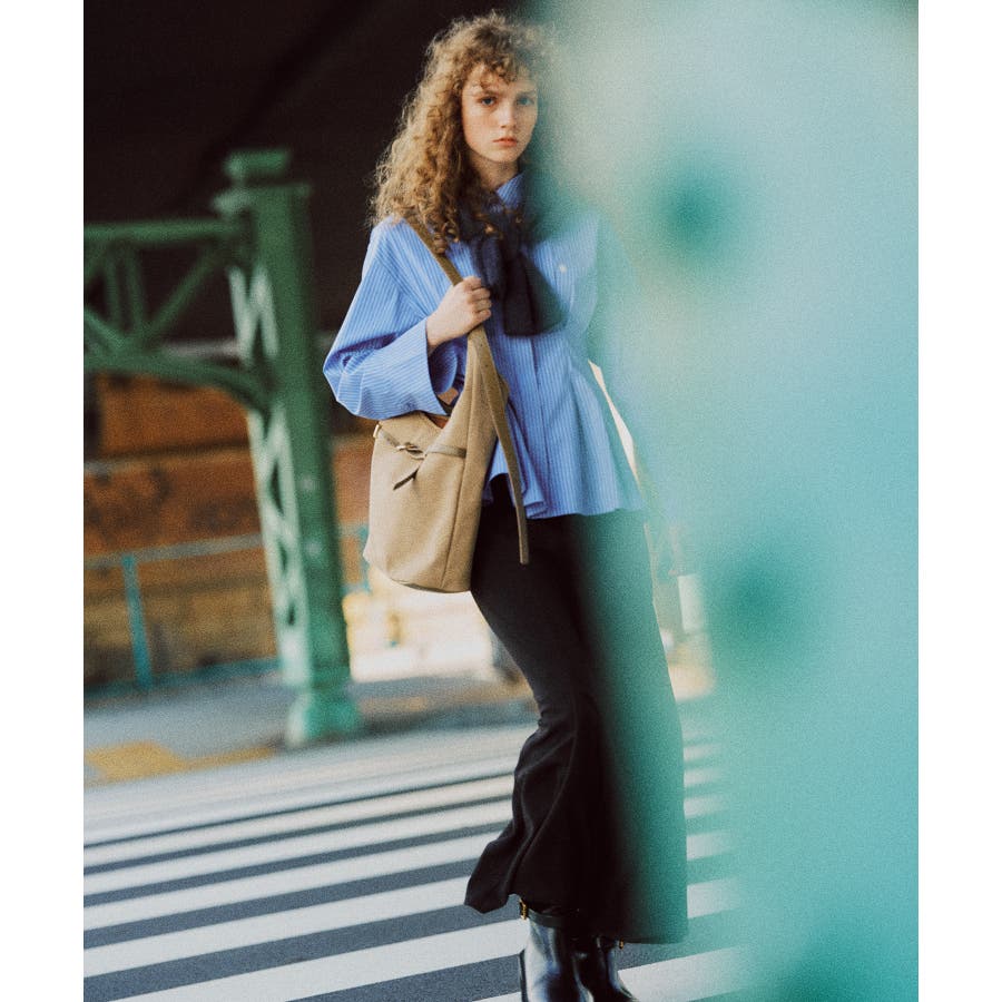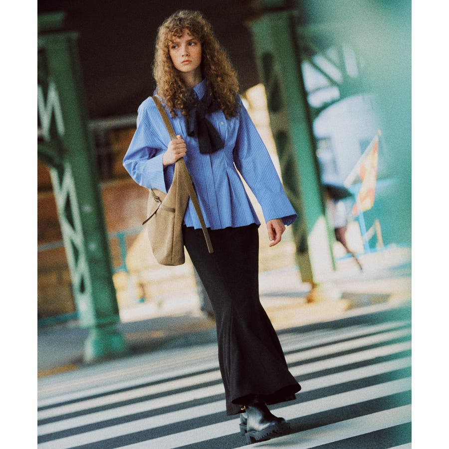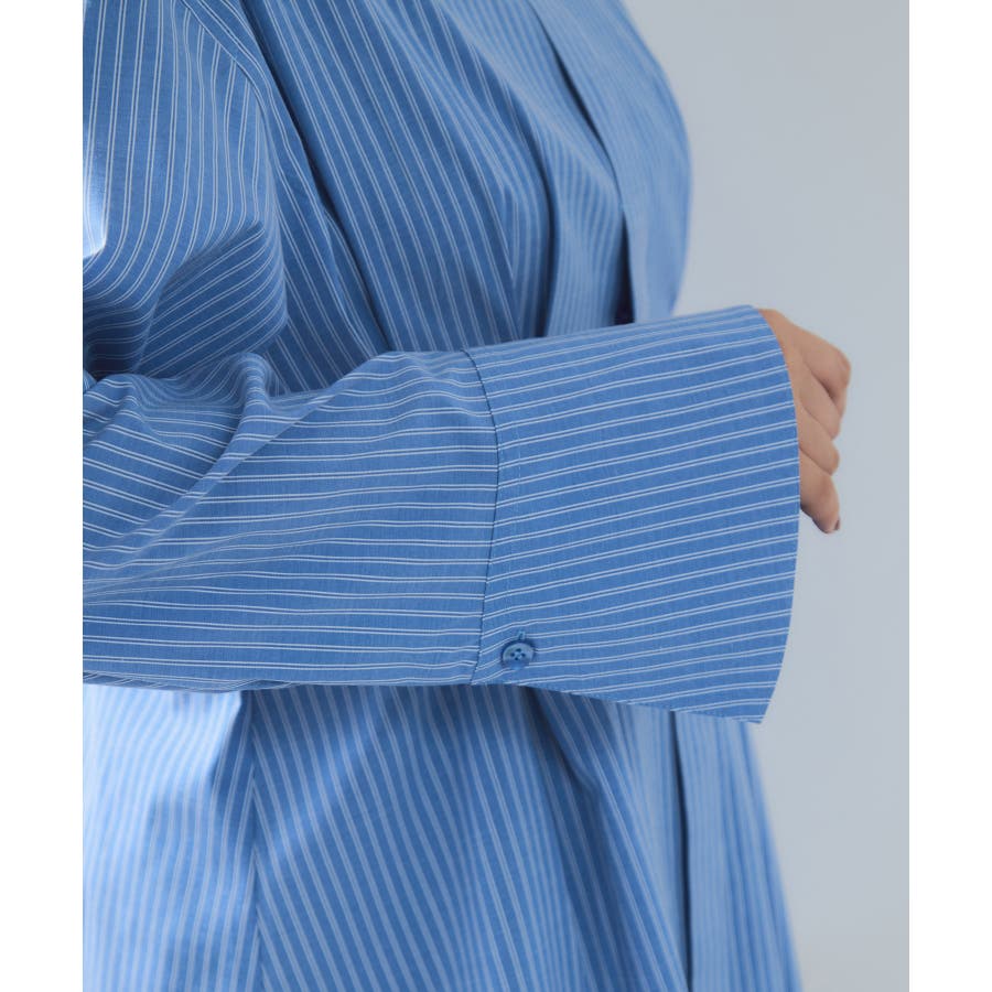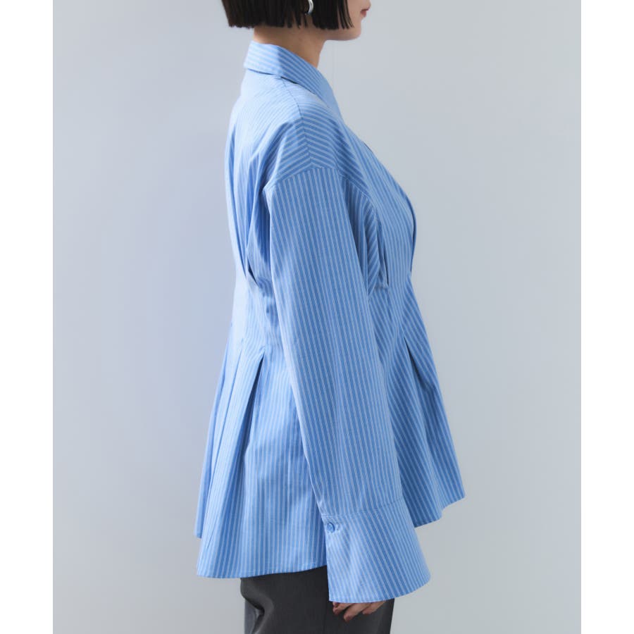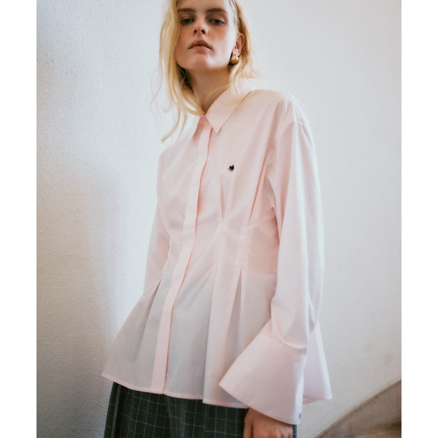 王道のシャツを着るだけで決まるものに仕上げるために、メンズライクなサイズ感のシャツにウエストタックをいれ体のラインを綺麗にみせてくれるデザインにしました。