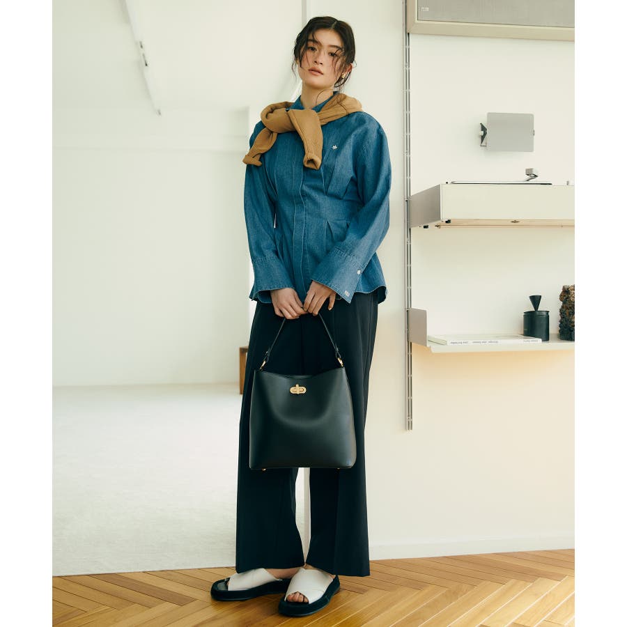 ・ハリのある素材でオンオフで使えるデザインです。