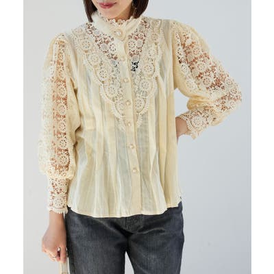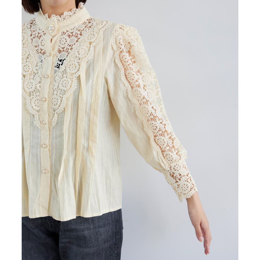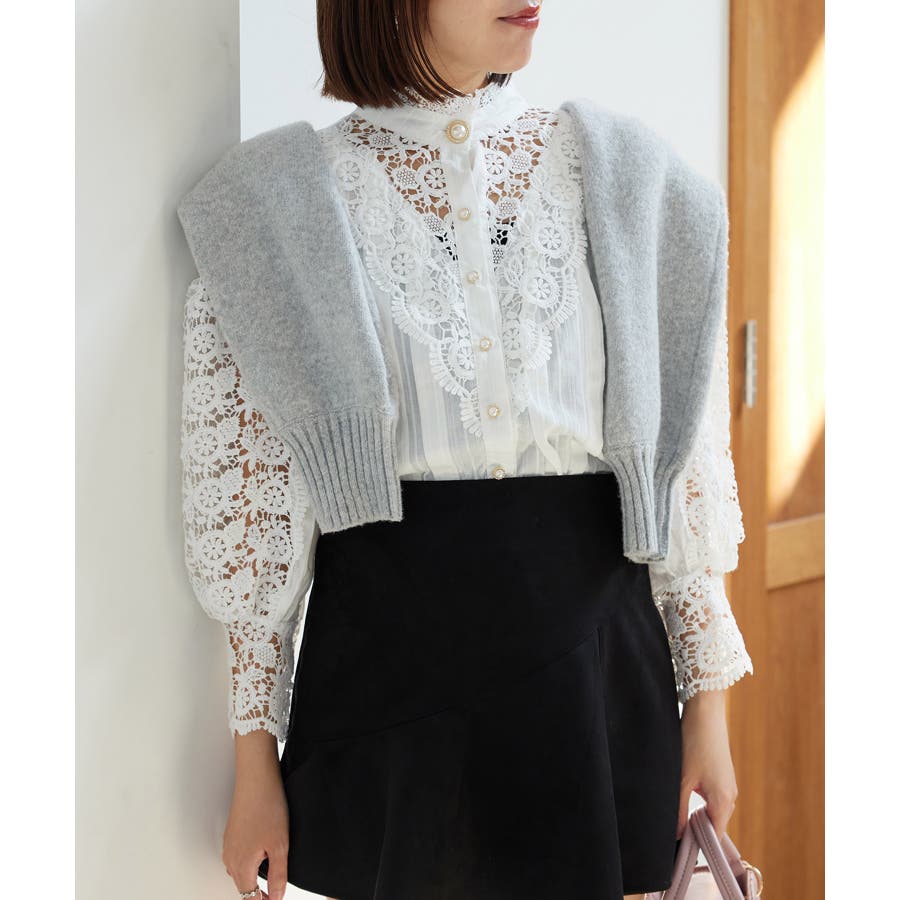 【デザイン・シルエット】 大胆なレース使いが大人可愛いブラウスです。